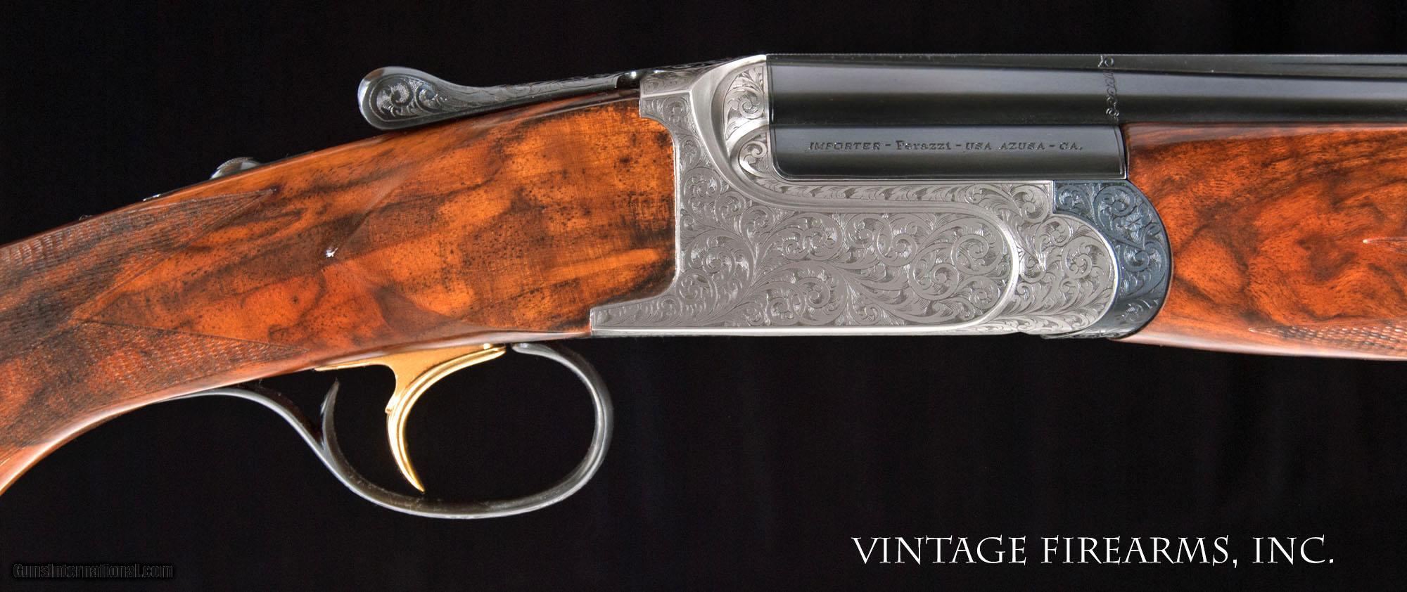 Description: Perazzi MX28 SC3 28 Gauge Over/Under Shotgun 30", BABY FRAME, UPGRADED WOOD, AS NEW, CASED General Specs: Perazzi, Year 2006, 28 Gauge, 6lbs 2oz, O/U Serial Number: 136669 The Perazzi over under has earned its place in history as one of the most respected, competition built shotguns in modern times. Seen at the top competitions world wide, there are few that can hold a candle to the Perazzi over/under design. Perazzi has won more international tournaments than all of the other makers combined. This delightful little bird gun was made for hunting game with its 6lb. 2oz. weight, long 30” barrels, petite field style forend, and dynamic fast handling characteristics. Perazzi is known for its receiver being very shallow making the gun sleek and easy on the eye. Perazzi has built this over/under on a “scaled frame” built to 28ga. standards. Most Perazzi made 28ga. over/under guns you see are built on a 20ga. frame. Same goes for most other makers. This petite frame is brutishly strong and built on the same design as their massive 12ga. competition guns. The gun was ordered with upgraded wood, a $2500 option, in 2006 and has seen less than a box of shells run through it. It shows as absolutely new, with 100% factory finish on all metal and wood…not a mark on the gun. The hand engraved receiver is signed by Patilli. This is a gorgeous little gun! The case is like new and all papers and accessories are intact. Retail value of the gun is $33,000 but you can own this one for a fraction of that cost. Finding a MX28 SC3 with 30” barrels is a rare thing. They only brought a few into this country so don’t miss out on this great little gun. Thanks for looking. Barrels Barrel Length: 30" Chokes: M/F .016/.032 Bores: perfect mirror Bore Diameter: .548 both % Blue: 100% factory new Chambers: 2 3/4" Ribs: tight Sights: single Action Action: tight, way right of center Ejectors or Extractors: ejectors, strong, timed Case Color: coin finish 100% Engraving: bank note 100% by Patilli Trigger Type: Single Selective Trigger Trigger Guard Color: 100% factory blue Stock Type: full pistol grip/field forend; upgraded wood LOP: 14 3/8" LOP To End Of Wood: same DAH: 2" DAC: 1 7/16" Cast: 1/4" off Checkering Condition: perfect 26 lines per inch Butt Treatment: checkered butt There are more photos upon request. We offer a 30 day mechanical warranty on this fine shotgun. Call us for full details. PLEASE SEE MY OTHER FINE VINTAGE FIREARMS. Just open one of my ads and click on the line that says “see all items from this seller” and a very nice list of fine sporting and collectible arms will appear. I have many more fine sxs shotguns not yet listed. Thanks for looking! We employ a full time gunsmith on premises and can perform alterations to suit your needs within a few weeks of purchase. Payment Methods: Money Order, Certified Check, Personal Check, Wire Transfer Inspection Period / Return Policy: Three Days from the date the item was received. Sales Tax: 6% Michigan Only Shipping & Insurance: Ground $140.00 We ship internationally! Item Condition: Used Requires FFL?: Yes If you have any questions about this item or payment, please email me or call us directly, at #616-292-6240. Thanks! Jay Shachter, Vintage Firearms, Inc We employ a full time gunsmith on premises and can perform alterations to suit your needs within a few weeks of purchase. Common requests are: -stock bending to suit your particular requirements -addition of any specified butt pad to increase length of pull -alteration of chokes to suit your shooting preferences -lengthening of chambers and forcing cones -darkening stock color with penetrating stains -restoring any part of the gun including rust blue, charcoal blue, bone and charcoal case color, wood restoration and checkering recuts. If you like one our guns but it needs "tweaked", let us know and we can quote you a time and price. Some enthusiasts like the guns "as found" and others want them "just so". We often list guns as found and let the particular buyer choose how they want their gun to fit or look. SOLD |