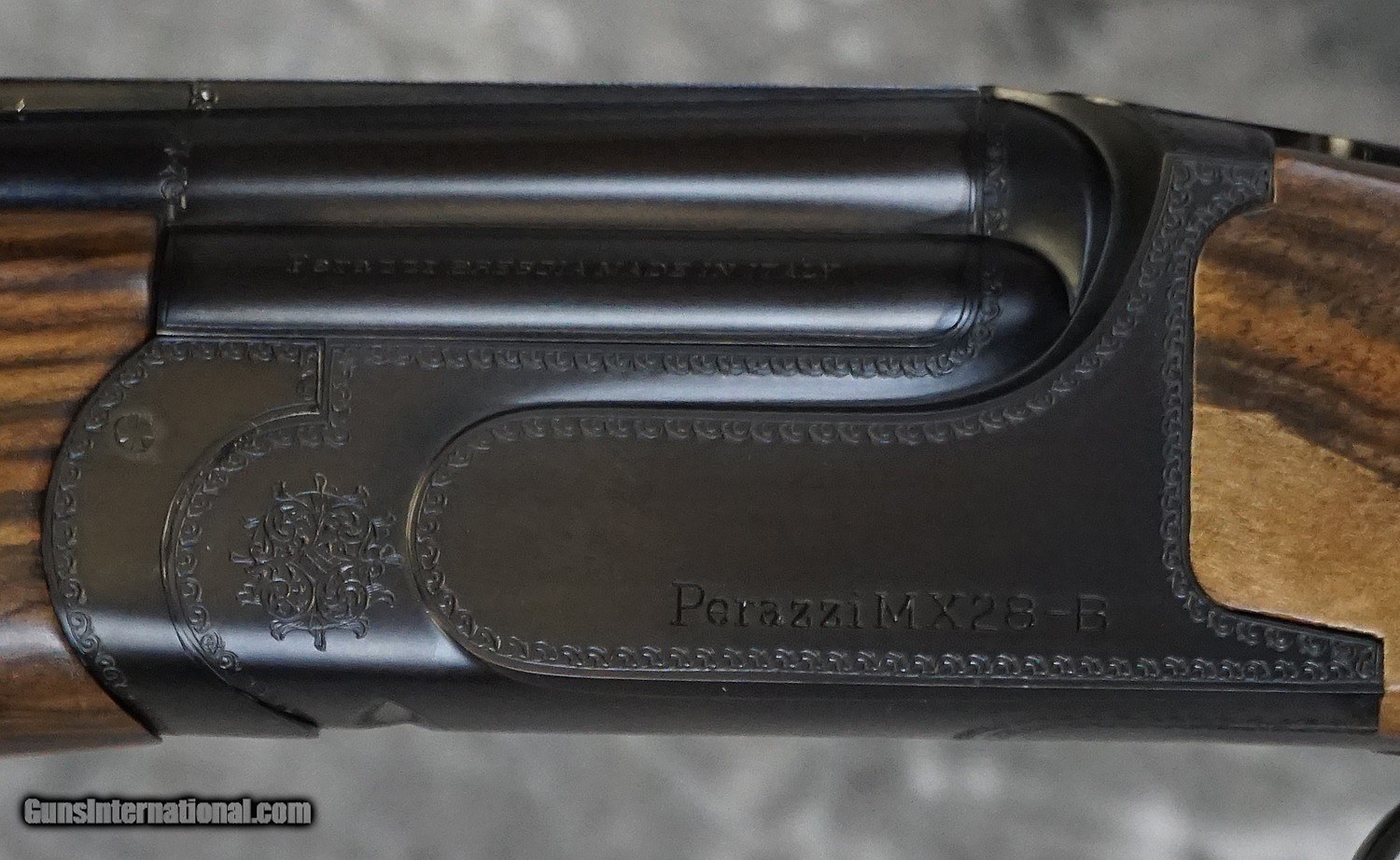 Description: New Perazzi MX28 B Game 28GA with 29" factory choke tubed barrels (7 Included), 7x7 parallel game rib with solid side-ribs. Blued, scaled 28GA action with hand-engraved borders, single selective coil spring trigger. Factory SC2 grade English straight-hand stock to factory recoil pad and game forearm. Includes factory case, chokes and tools. Call 626-633-1002 for pricing. SOLD Shotgun Gauge: 28 Gauge |