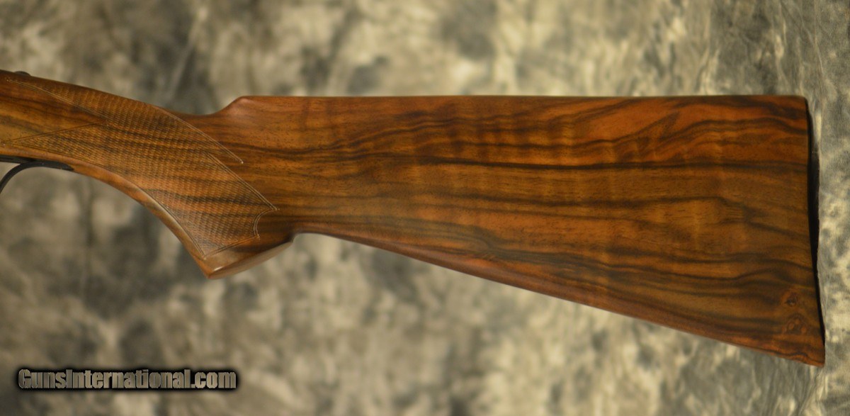 Description: New Perazzi MX28B Sporting or Field 28GA with 32" fixed choke (M/IM) barrels, 7x7 parallel game rib, solid side-ribs. Factory scaled 28GA receiver, blued with fully hand-engraved borders and fixed selective coil spring trigger. Factory SC2 grade Purdey style pistol grip stock to checkered butt, slim game style forearm. Includes factory case, papers and tools. Call 626-633-1002 for pricing. SOLD |