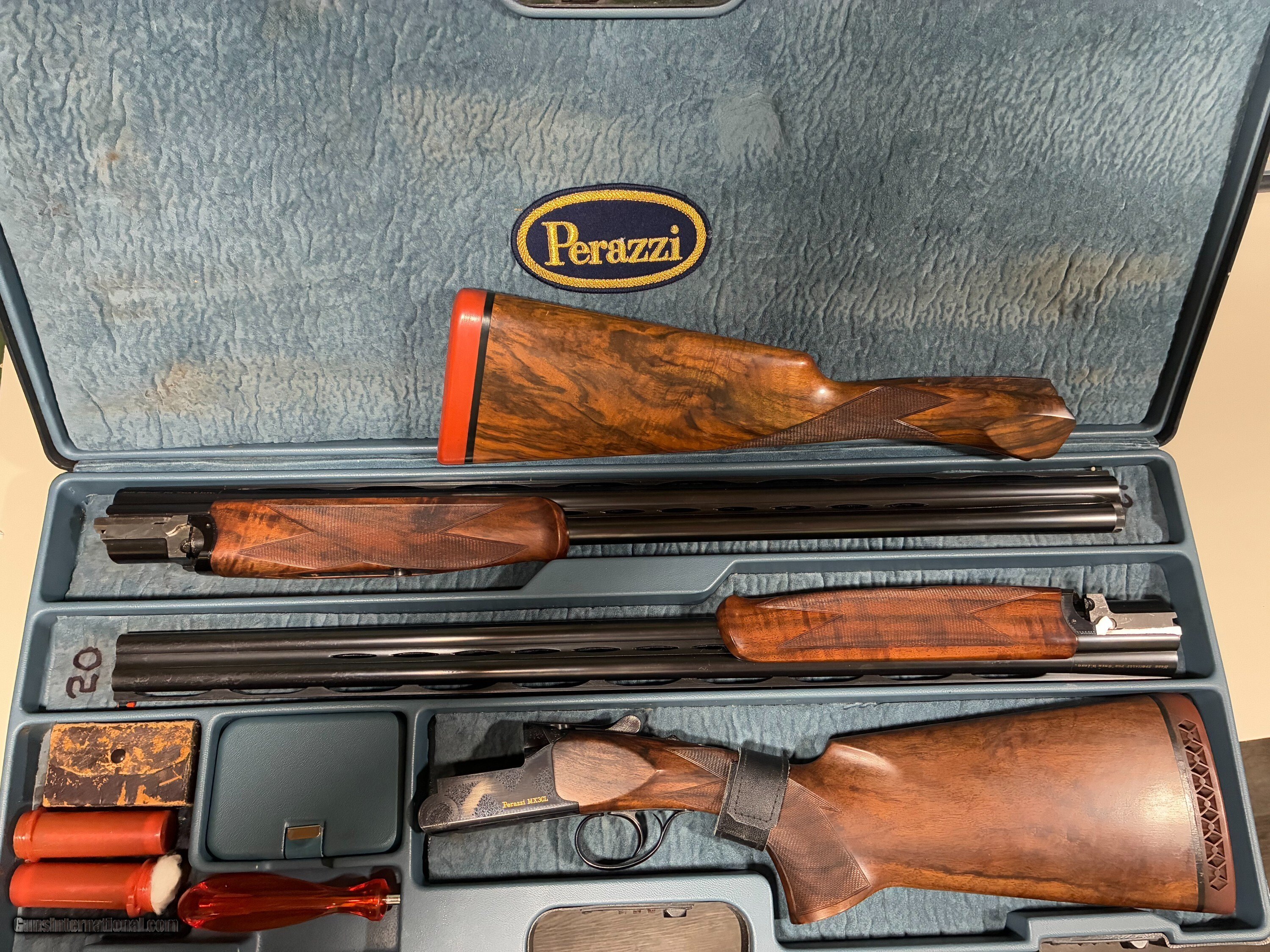 Description: Perazzi mx3CL 12/20 gauge combo $7200OBO serial number #63378 **** complete set all numbers match **** 12 and 20 gauge 28 inch barrels, fixed choked full on the top, have extra chokes for bottom barrels Two triggers ---top/bottom ---bottom/ top Beautiful extra english stock included!!! stock is cast off Hard case included with stock wrench shipping 100$ feel free to text or call for questions Levi 419-769-7624 Shotgun Gauge: 12 Gauge, 20 Gauge Price: $7,200.00 Contact Seller |