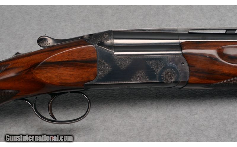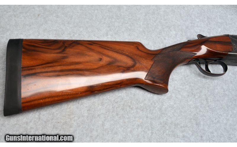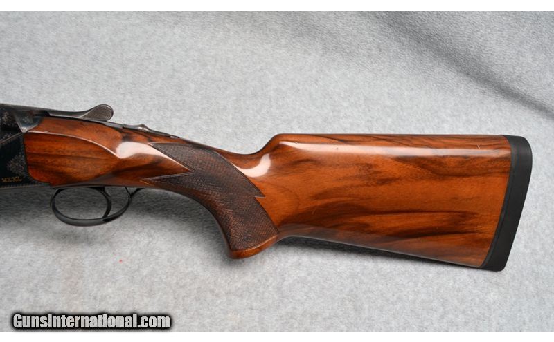 Description: This Perazzi Mx3 is in great condition. The wood on this gun is very highly figured and looks exceptional. The metal on this shotgun is deep blued with only slight wear around the high edges of the receiver. This would make a great addition to a sporting gun collection. 12 Gauge SOLD Chambers: 2 3/4 inch. Metal Condition: Very good with few handling marks. Wood Condition: Very good with few handling marks. Barrels: 27 inch deep blued barrels with wide vented rib. Triggers: Single smooth steel trigger. Stock Dimensions: 14 3/4" LOP Fore End: High gloss checkered walnut. Butt Pad: Limbsaver black rubber recoil pad. Sights: Red Fiber Optic Front Bead. Chokes: Variable chokes Item Location: Cheektowaga, NY |
