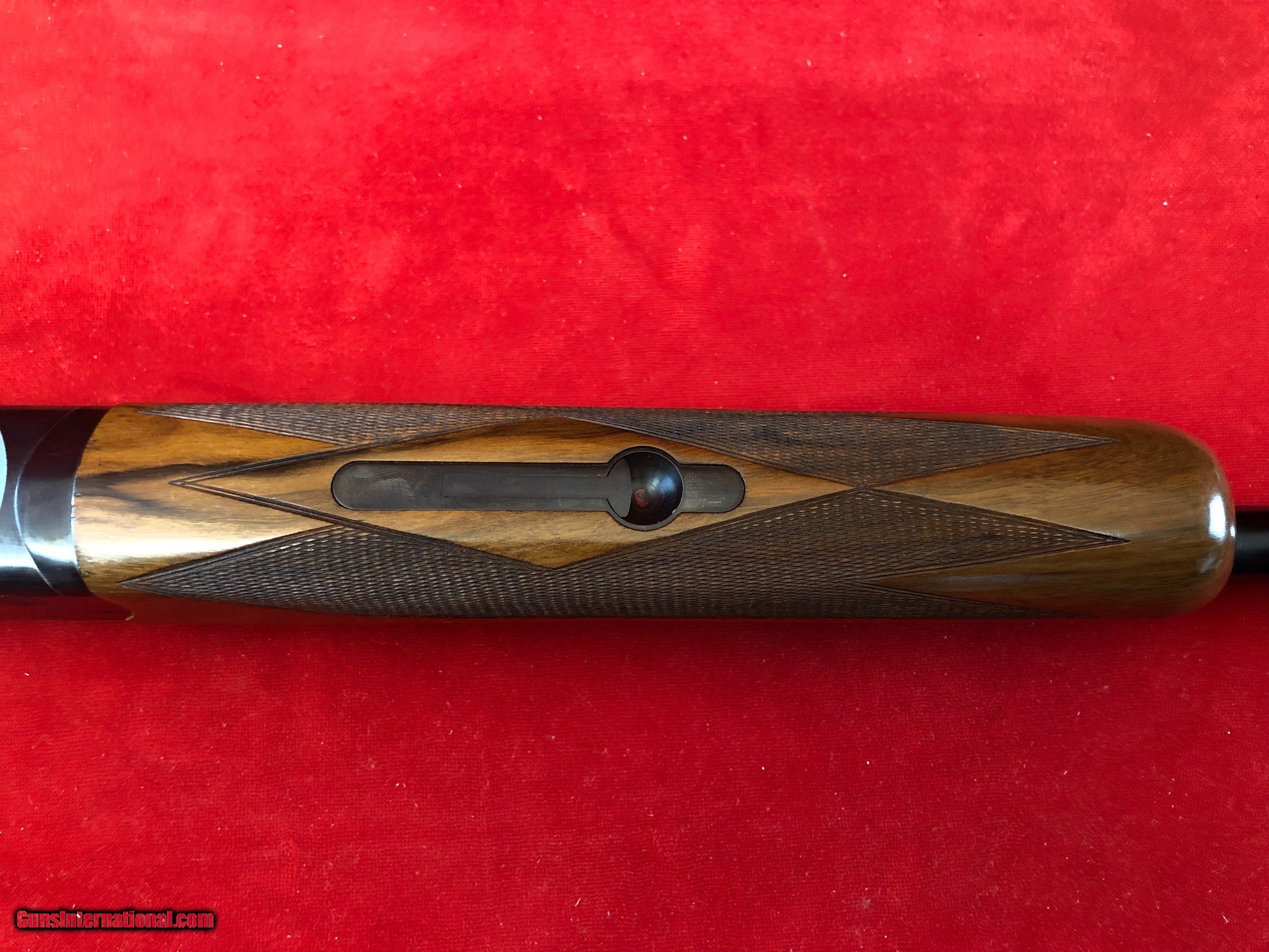 Description: Perazzi MX3 12GA single shot trap shotgun. 34 inch barrel with vent rib and screw in choke system. Shotgun is in good condition with a few handling marks on the beautifully figured wood. There is a small blemish on the barrel the rest of the blueing is nice. (see photos). Hard case included. SOLD |