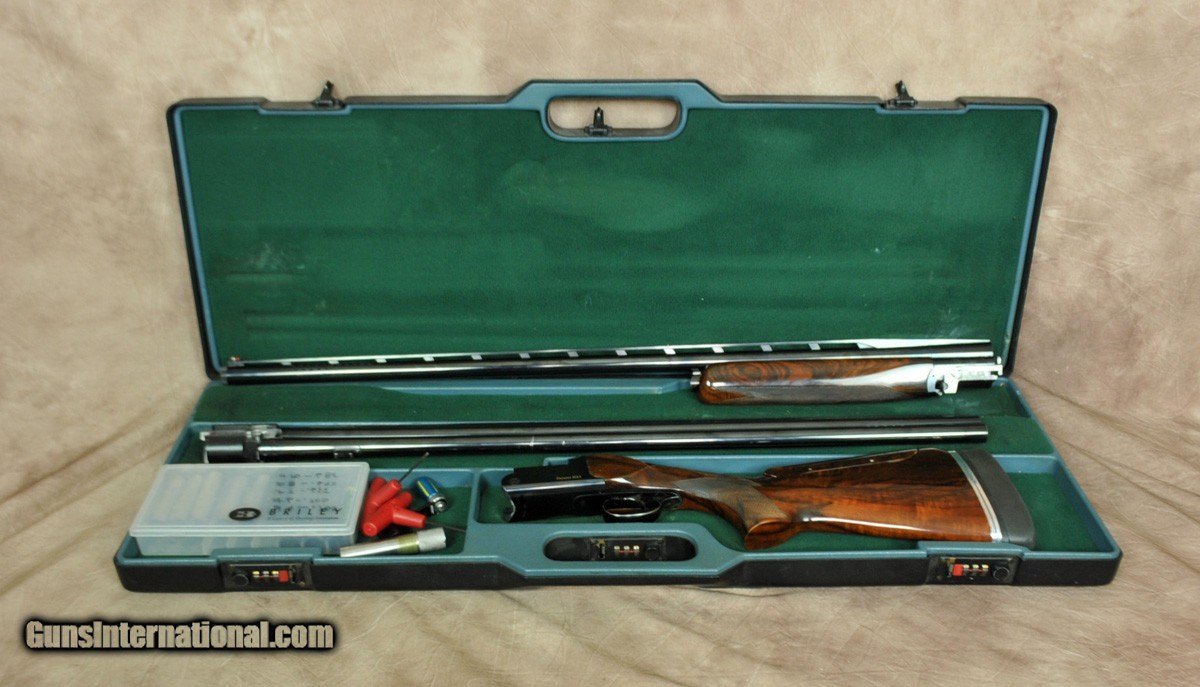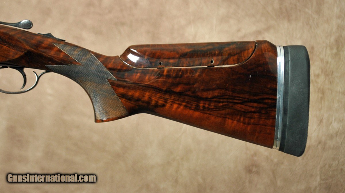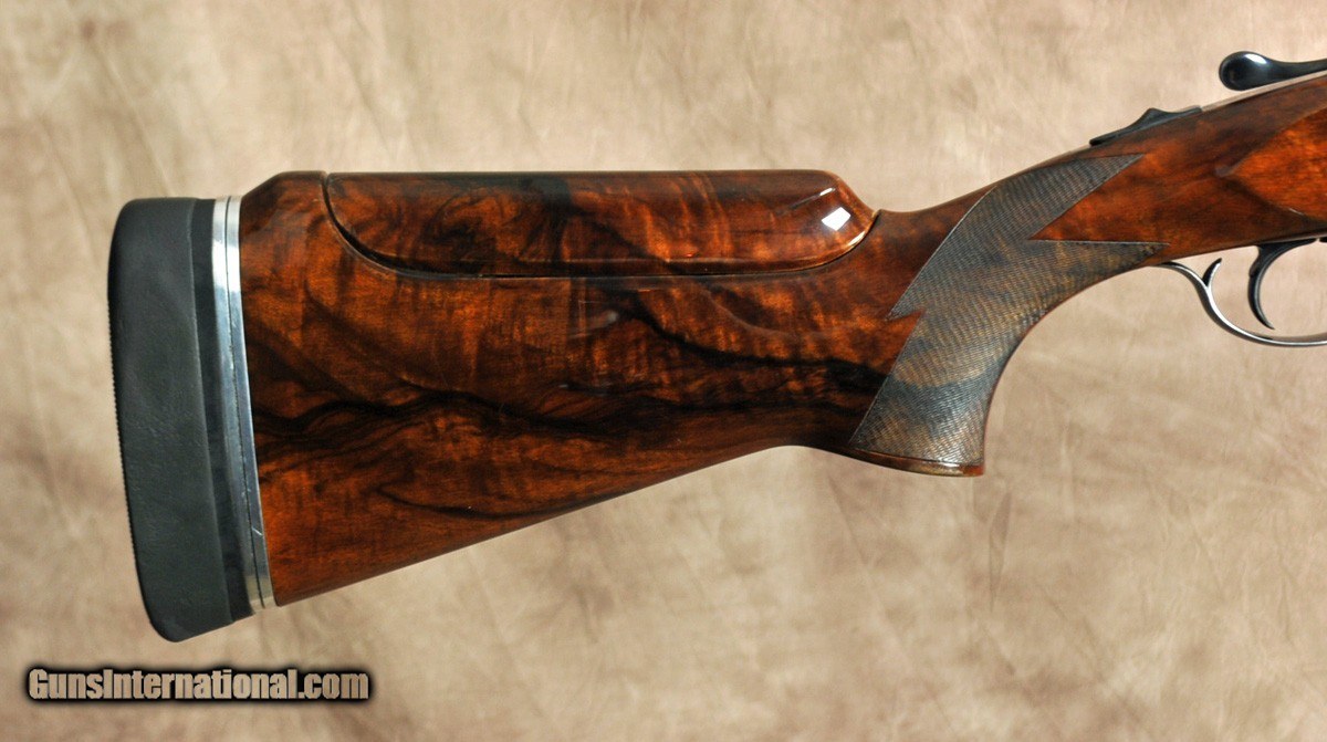 Description: Pre owned in good condition, slight bluing wear on receiver, slight pitting on barrel, Perazzi Mx3 Trap Combo. Features drop out trigger, 34″ factory C/T barrel with five chokes, 31 1/2″ O/U barrel with Briley thin wall chokes (7) . Trap stock with adjustable comb and jones style pad adjuster. Factory hard case. SOLD |