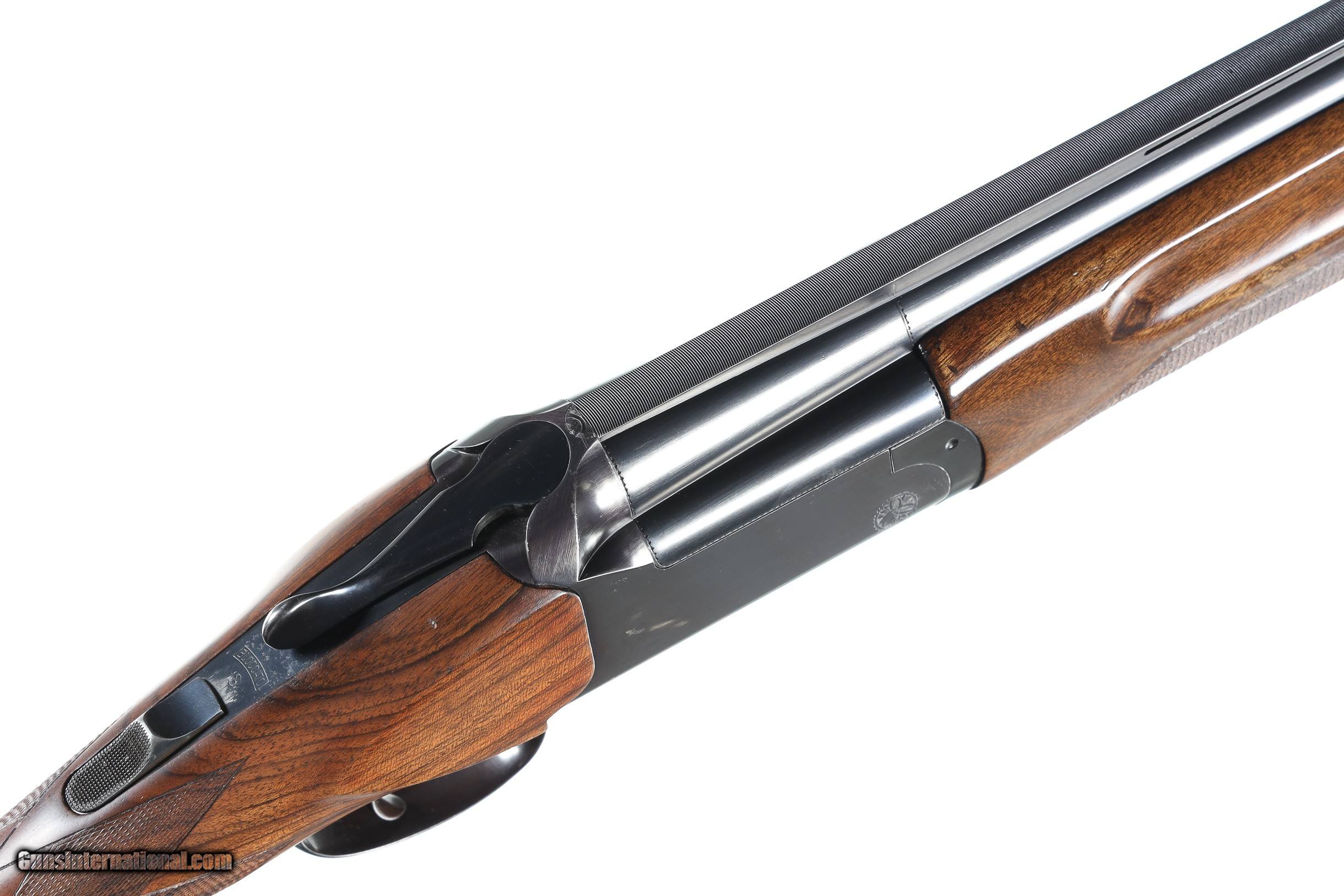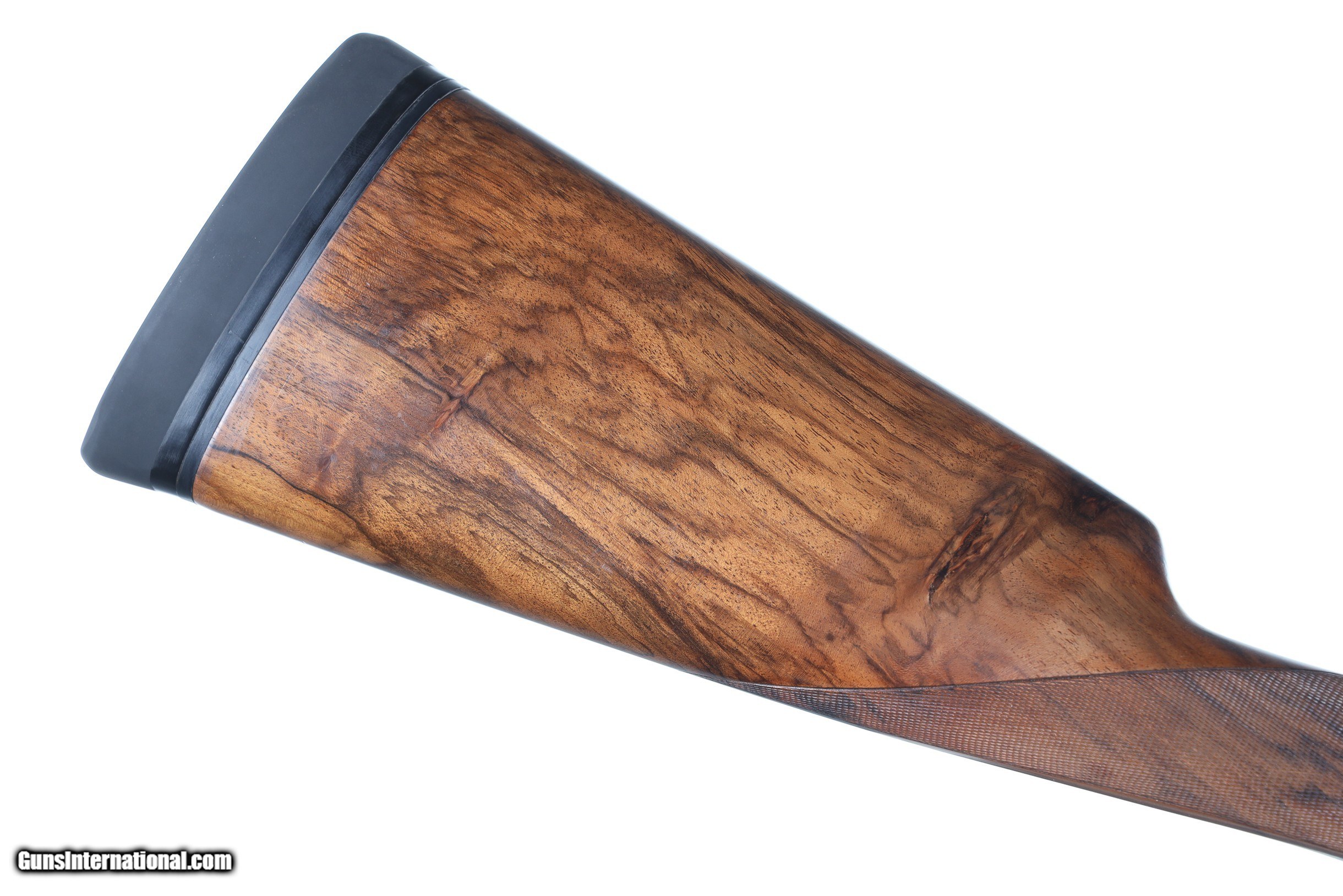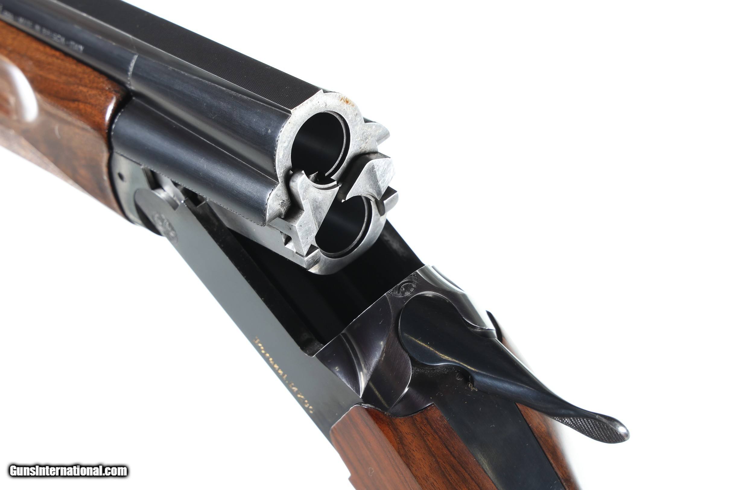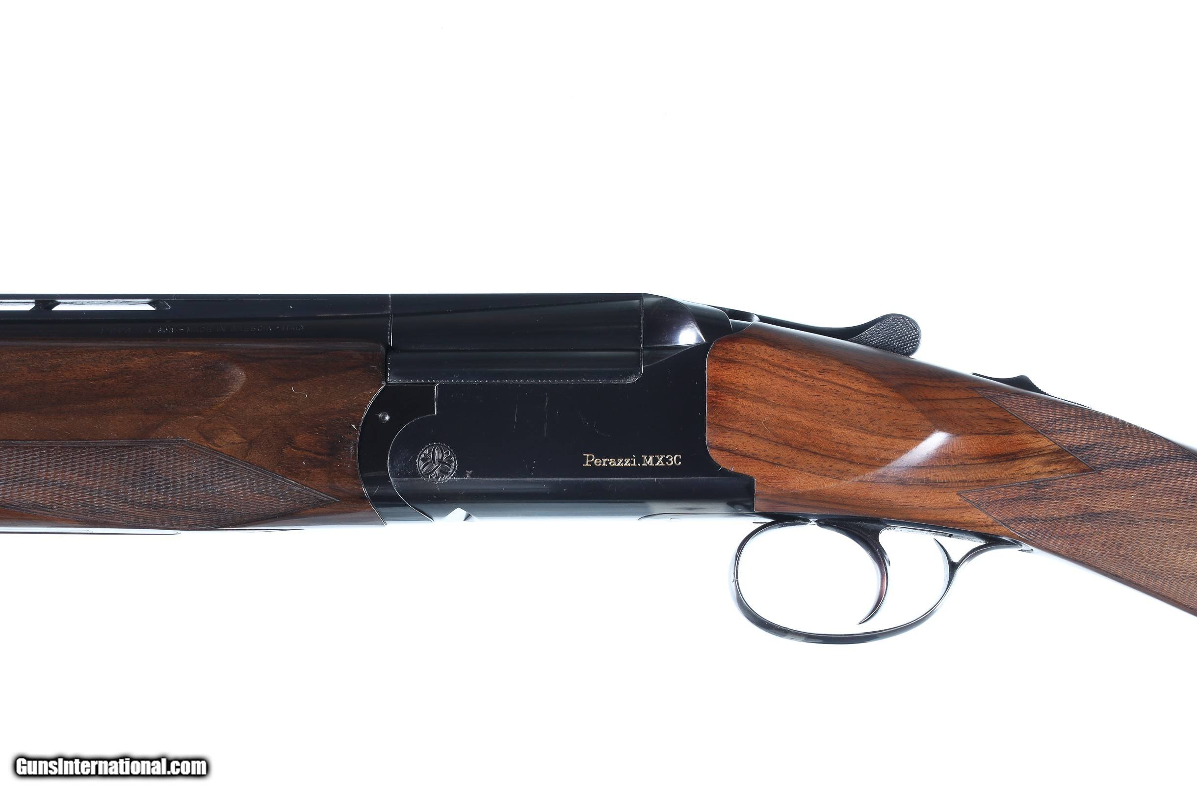 Description: Perazzi MX3C 20 Ga. with 27" over under vent rib Bbl with Teague chokes (Cyl & Cyl) installed. Single trigger with ejectors with varnished checkered straight stock with recoil pad. Condition Very fine with brilliant bores. Metal finish is excellent with a trace of loss from use. Mechanically excellent. Stocks are very fine with a few impressions. 14 1/2" LOP 1 1/2 DAC 2 1/8 DAH. 3" chamber • Free Shipping, No Credit Card Fees. • Lay-a-way available for this firearm. • 1/3 Down, a 1/3 in 30 Days, 1/3 in 60 Days. SOLD Shotgun Gauge: 20 Gauge Manufacturer: Perazzi Model: MX3C Serial Number: 61254 Barrel Length: 27 Bore: 20 Ga. Chambers: 3 Ejectors: Yes Condition: Excellent Metal Condition: Excellent Wood Condition: Very Fine Bore Condition: Bright Barrels: 27 Barrel Type: Over Under Action: Box Lock Triggers: Single Selective Stock: Checkered Walnut Stock Comb: 1 1/2 Stock Heel: 2 1/8 Stock Cast: Neutral at heel 12 mm cast off at toe LOP: 14 1/2 Rib: Vent Finish: Blue Weight: 7 lbs 10 oz Sights: Bead Manufacture Date: 1986 Chokes: Teague Cyl & Cyl interchangeable |