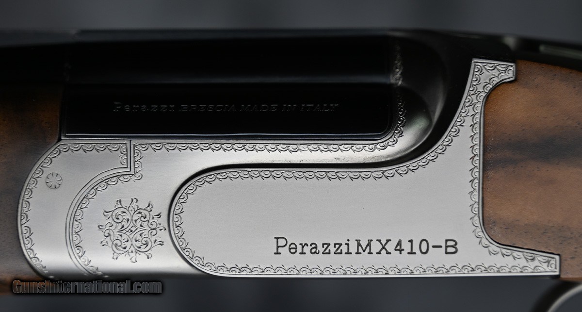 Description: New Perazzi MX410B Sporting .410 Bore. Features factory flush choke tube 32" barrels with 2mm step tramline sporting rib. Nickel receiver and parts featuring pierced top lever and fixed selectable trigger. Outstanding right hand Sporting stock with adjustable comb and fully checkered PSA Pro forend with gold quail monogram. Comes in factory case. Pacific Sporting Arms is the largest Perazzi dealer in the world. SOLD Shotgun Gauge: .410 Gauge |