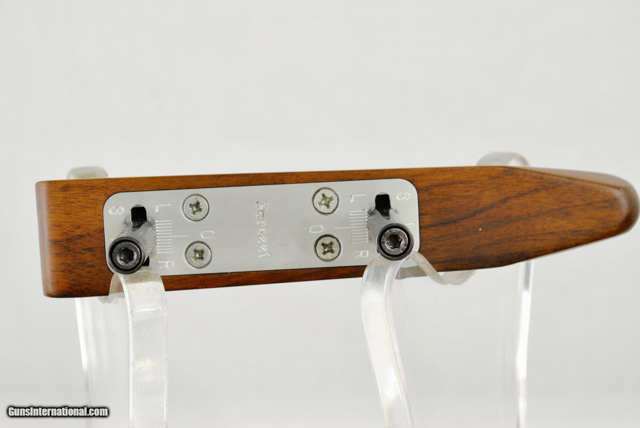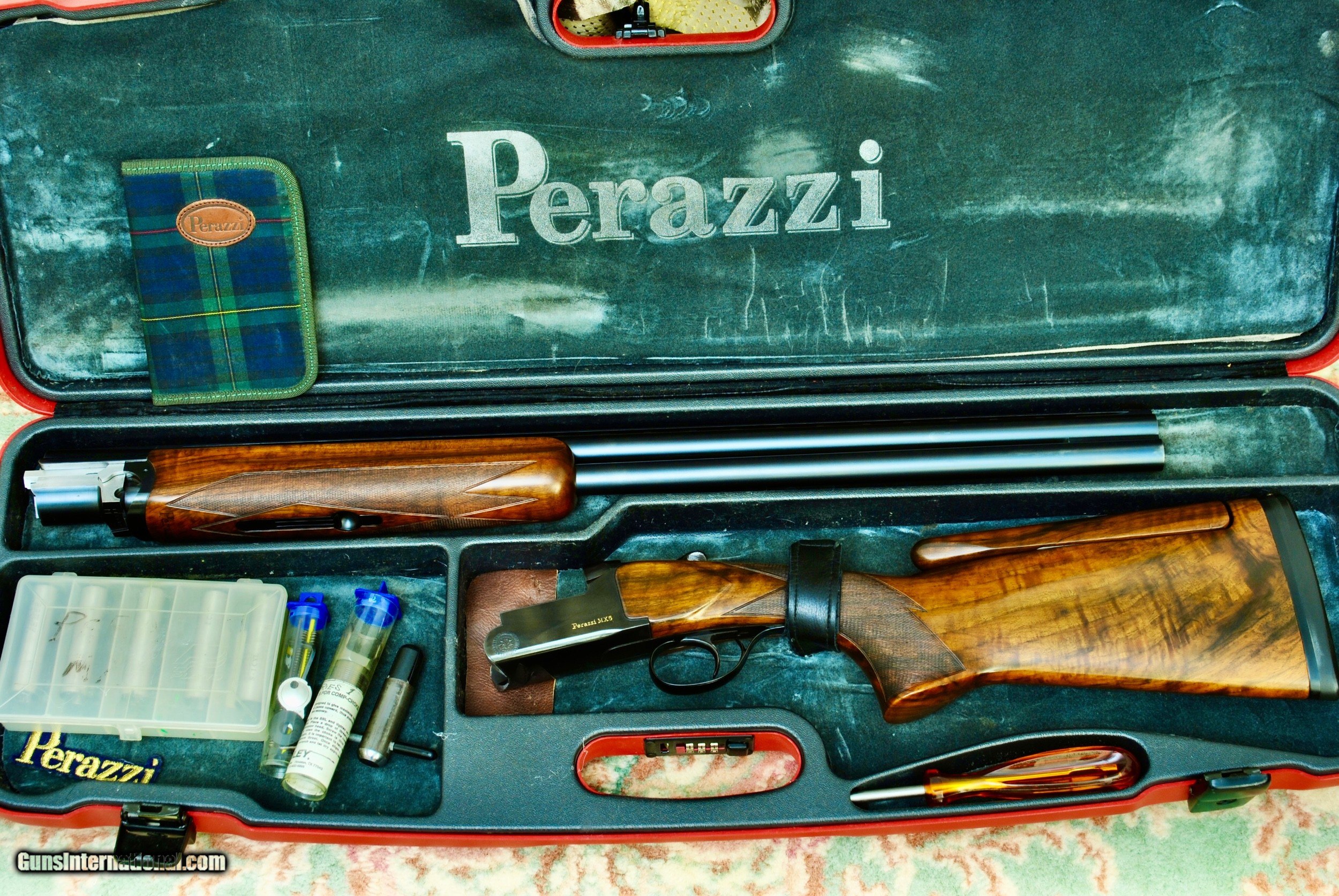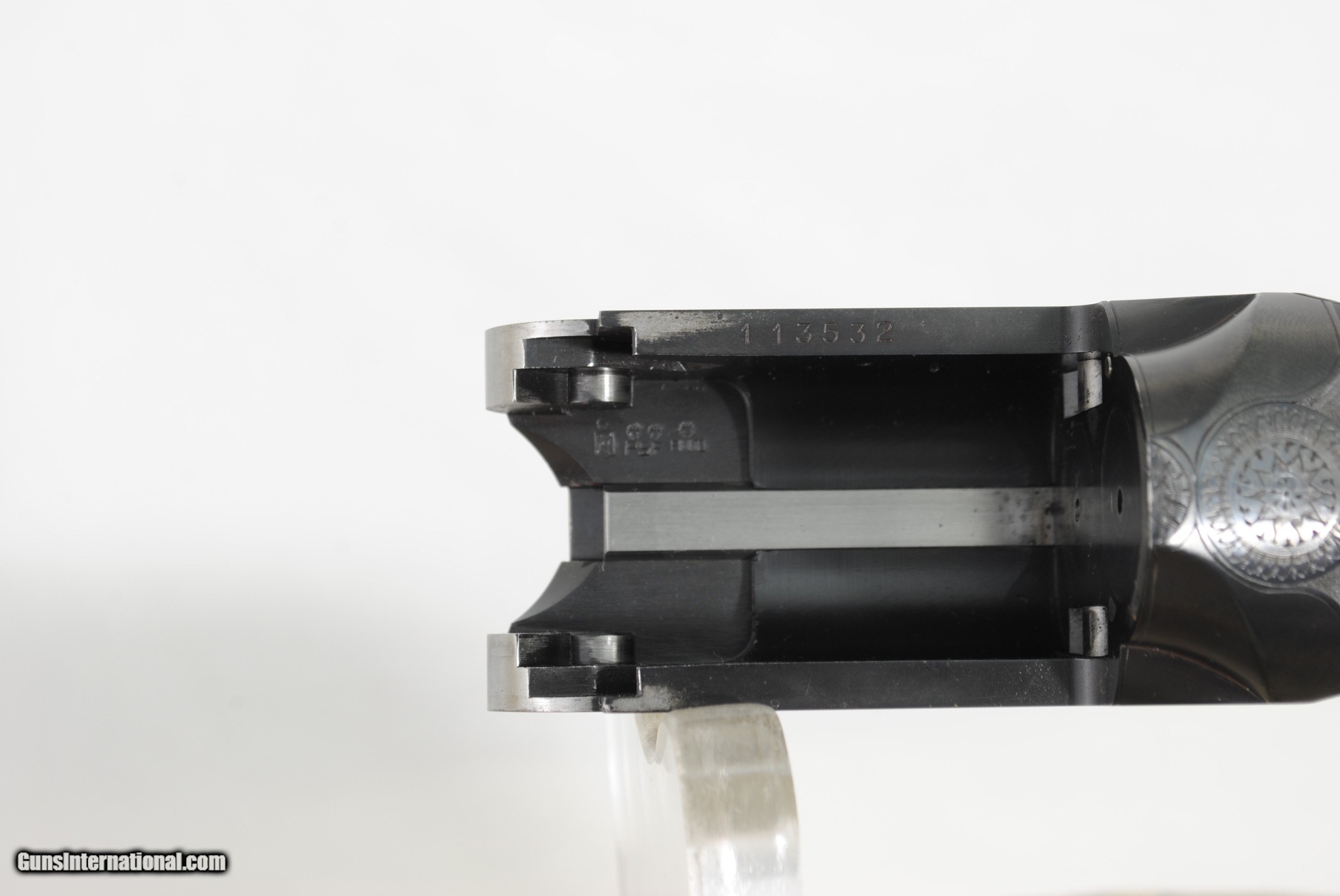 Description: Perazzi MX5 in 12 gauge. Barrels are equiped with Briley thin wall choke system and includes a complete set of 8 choke tubes - SKT, SKT, CYC, CYC, IC, MOD, XFULL AND COMP CHOKE. Mirror bores as origonal at .724. Gun remains in excellent condition with minimal use and 99%+ original blue. Single selective trigger. Fixed trigger group. Metal has all matching serial numbers. Perazzi wood including Factory adjustable comb (not matching in serial numbers as is typical with Perazzi). No comb spacers are provided. Pachmayr Sporting Decelerator pad. LOP is 14 3/8". Drop at comb (at lowest setting) - 1 3/8". Drop at heel - 2 3/16". Cast off at toe. The rib is 11MM x 7MM. Gun is tight on face with top lever spring quite strong. No cracks to wood. Includes stock wrench, comb wrench, extra ejector springs and key to case. Weight of gun is 8 LBS 3 1/4 OZ. Shipping is $65. SOLD Shotgun Gauge: 12 Gauge |