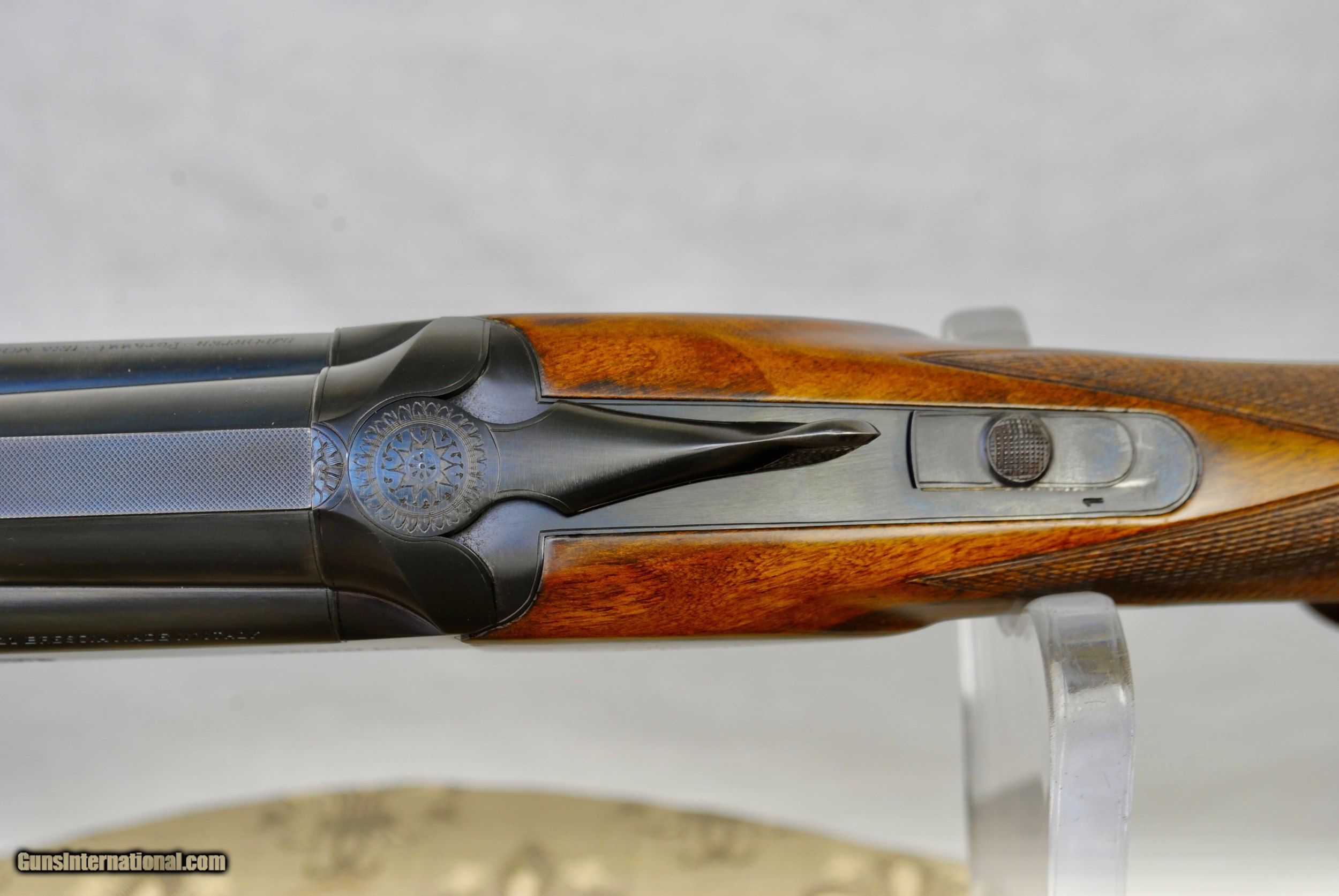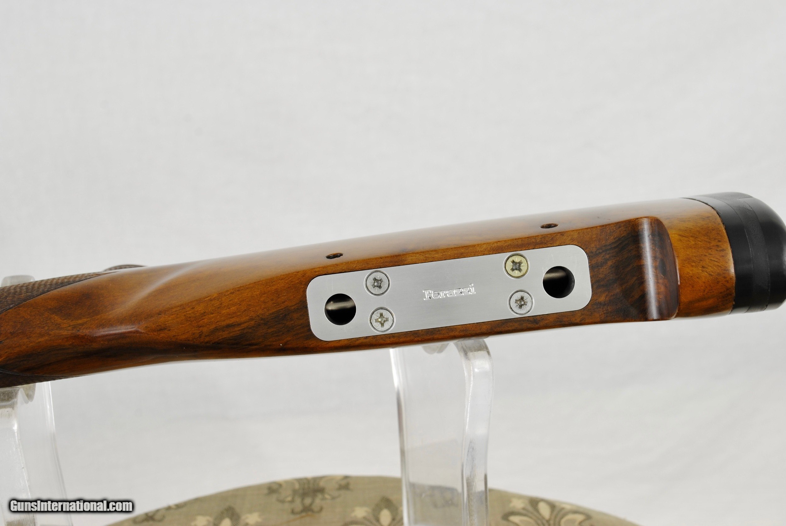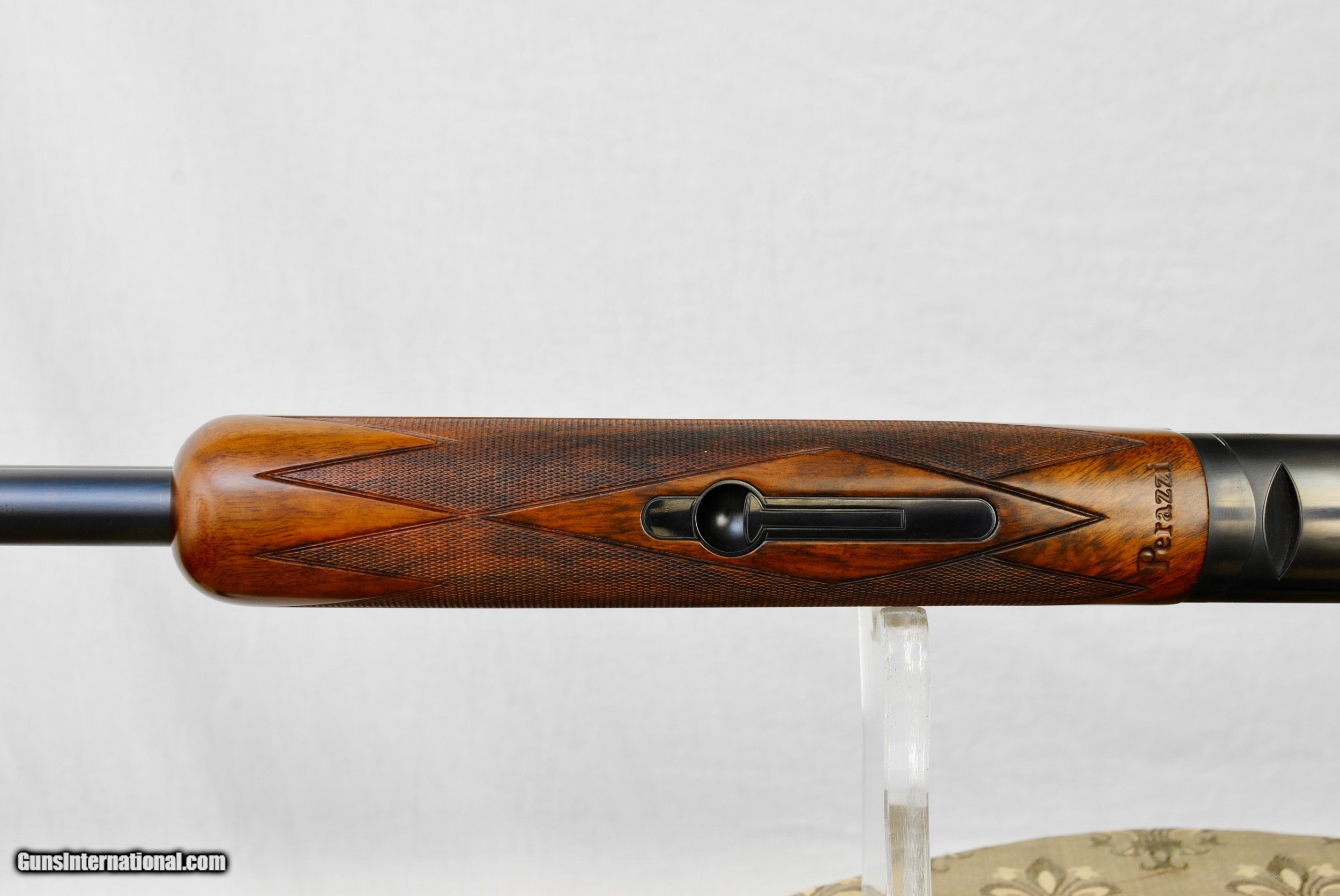 Description: Perazzi MX5 in 12 gauge. Barrels are equiped with Briley thin wall choke system and includes a complete set of 8 choke tubes - SKT, SKT, CYC, CYC, IC, MOD, XFULL AND COMP CHOKE. Mirror bores as origonal at .724. Gun remains in excellent condition with minimal use and 99%+ original blue. Single selective trigger. Fixed trigger group. Metal has all matching serial numbers. Perazzi wood including Factory adjustable comb (not matching in serial numbers as is typical with Perazzi). No comb spacers are provided. Pachmayr Sporting Decelerator pad. LOP is 14 3/8". Drop at comb (at lowest setting) - 1 3/8". Drop at heel - 2 3/16". Cast off at toe. The rib is 11MM x 7MM. Gun is tight on face with top lever spring quite strong. No cracks to wood. Includes stock wrench, comb wrench, extra ejector springs and key to case. Weight of gun is 8 LBS 3 1/4 OZ. Shipping is $65. SOLD Shotgun Gauge: 12 Gauge |