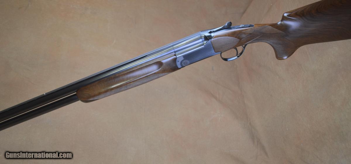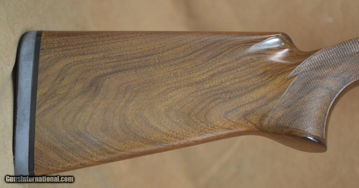 Description: Perazzi MX5 Sporting 12GA with 29 1/2" factory choke tubed barrels, no-side ribs, 11x7 flat tapered rib. Factory blued receiver with fixed selective coil spring trigger. Factory pistol grip stock with right-hand palmswell and beavertail forearm, overall outstanding condition. Very minor handling marks in stock and forearm, all matching and all original. Includes factory case, chokes and tools. SOLD |