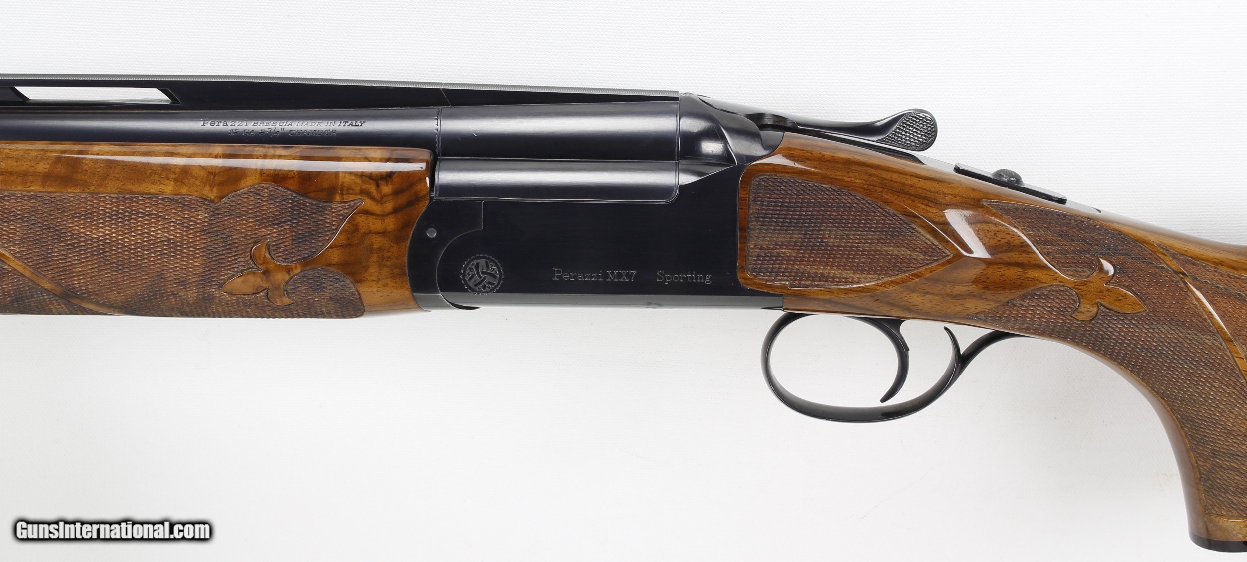 Description: PERAZZI, MX7, SPORTING, 12GA, 31 1/2" Barrels, Briley Thin-Wall Chokes, Browning Takedown Case. Fine Condition, Fine 2 3/4" Chambers. SN#84362, MFG: 1992. LOP: 14 1/2", DAC:1 1/4 Adjustable, DAH: 1 1/8", Weight: 8lbs, 5ozs. "GUN HAS WENIG BEST CUSTOM STOCK W/ Fleur de Lis CHECKERING". SHIPS TO LOWER 48, w/Insurance: $55.00 More Pictures Available on Request. SOLD |
