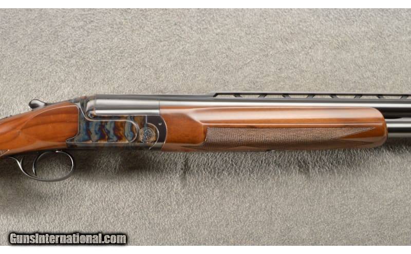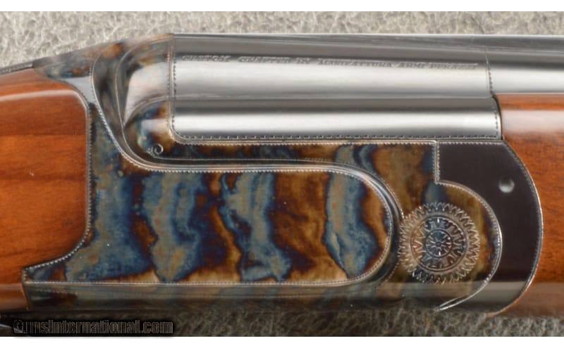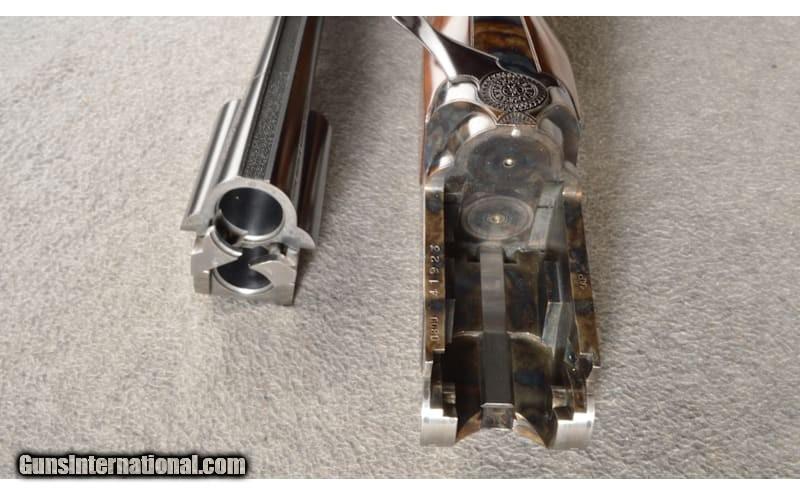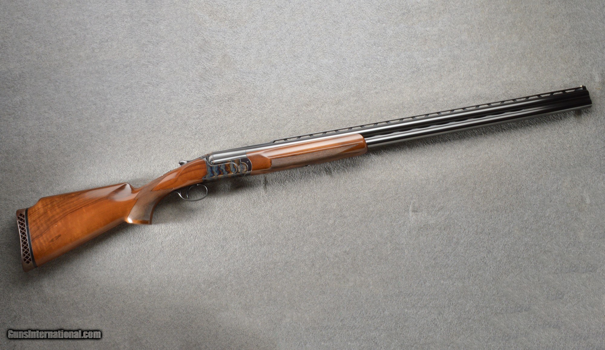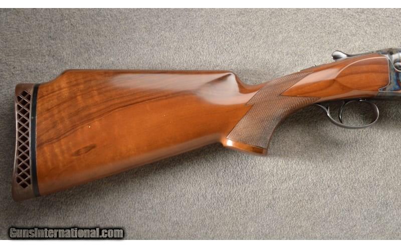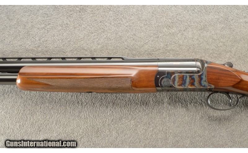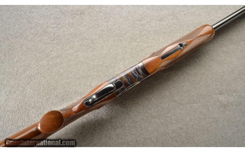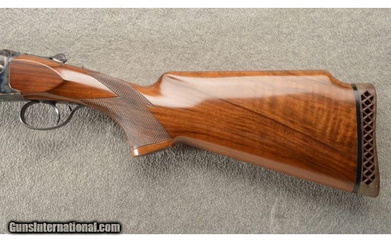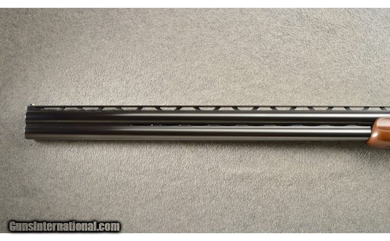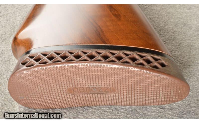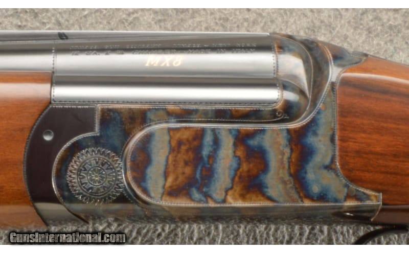 Description: This Perazzi MX8 is an over under double barrel, 12 gauge shotgun chambered for 2 3/4" shells. The receiver on this gun is case colored and remains in perfect condition. The top tang right above the manual safety is marked "BLOCCATO". The barrels are 32" ejector barrels with a checkered vent rib and a silver mid-bead sight, the front sight is a white bead. This gun has fixed chokes (upper barrel is "FULL-*" and the bottom is "IMP MOD-**"). The right side of the barrel is marked "CUSTOM CRAFTED MANIFATTURA ARMI PERAZZI". The stocks are two pieced checkered walnut with a finger groove forend, Monte Carlo comb, and a ventilated Perazzi recoil pad. This Perazzi remains in great condition with a few minor marks in the stock. 12 Gauge SOLD Chambers: 2 3/4" chambers. Metal Condition: 99%. Wood Condition: "The stock set is in great condition and rates about 98% + with some minor scattered light surface marks, nothing major. The checkering shows no signs of damage. Bore Condition: Both bores are bright with smooth surfaces. Barrels: 32" barrels. Triggers: Single trigger. Stock Dimensions: LOP 14.5". Fore End: Checkered with finger grooves. Butt Pad: Rubber. Sights: White front bead with a mid-bead. Chokes: Fixed. Item Location: Owatonna, MN |