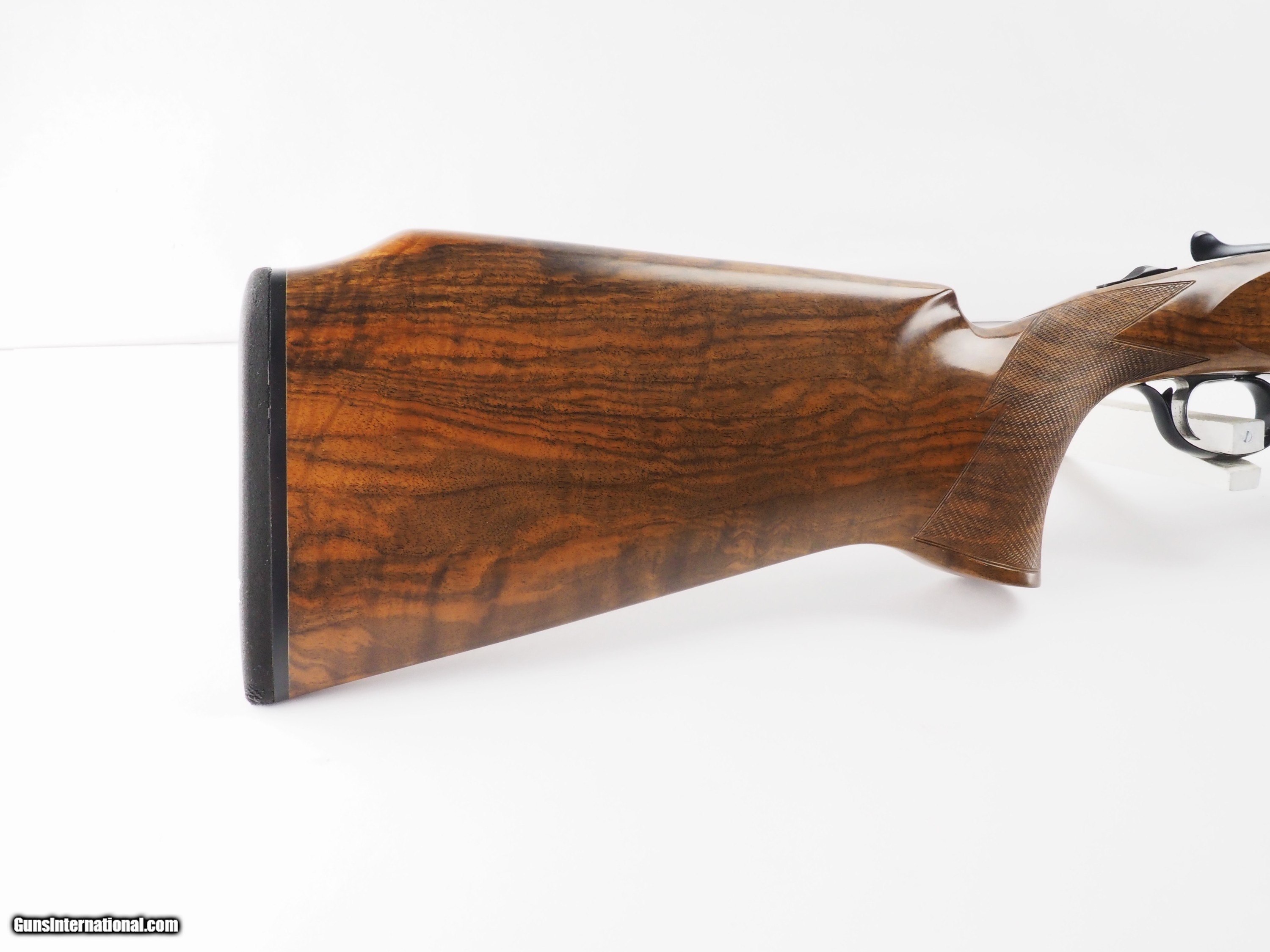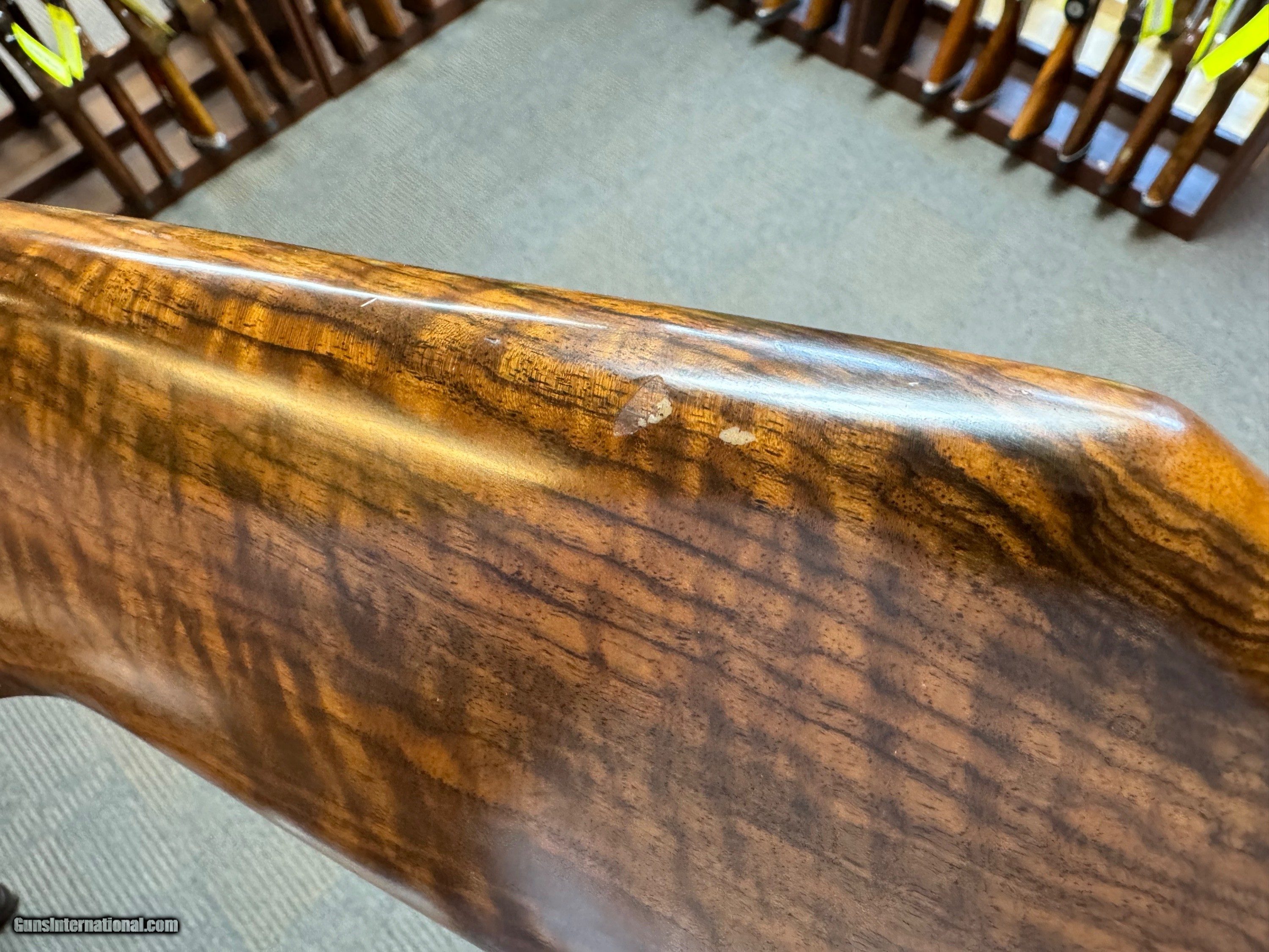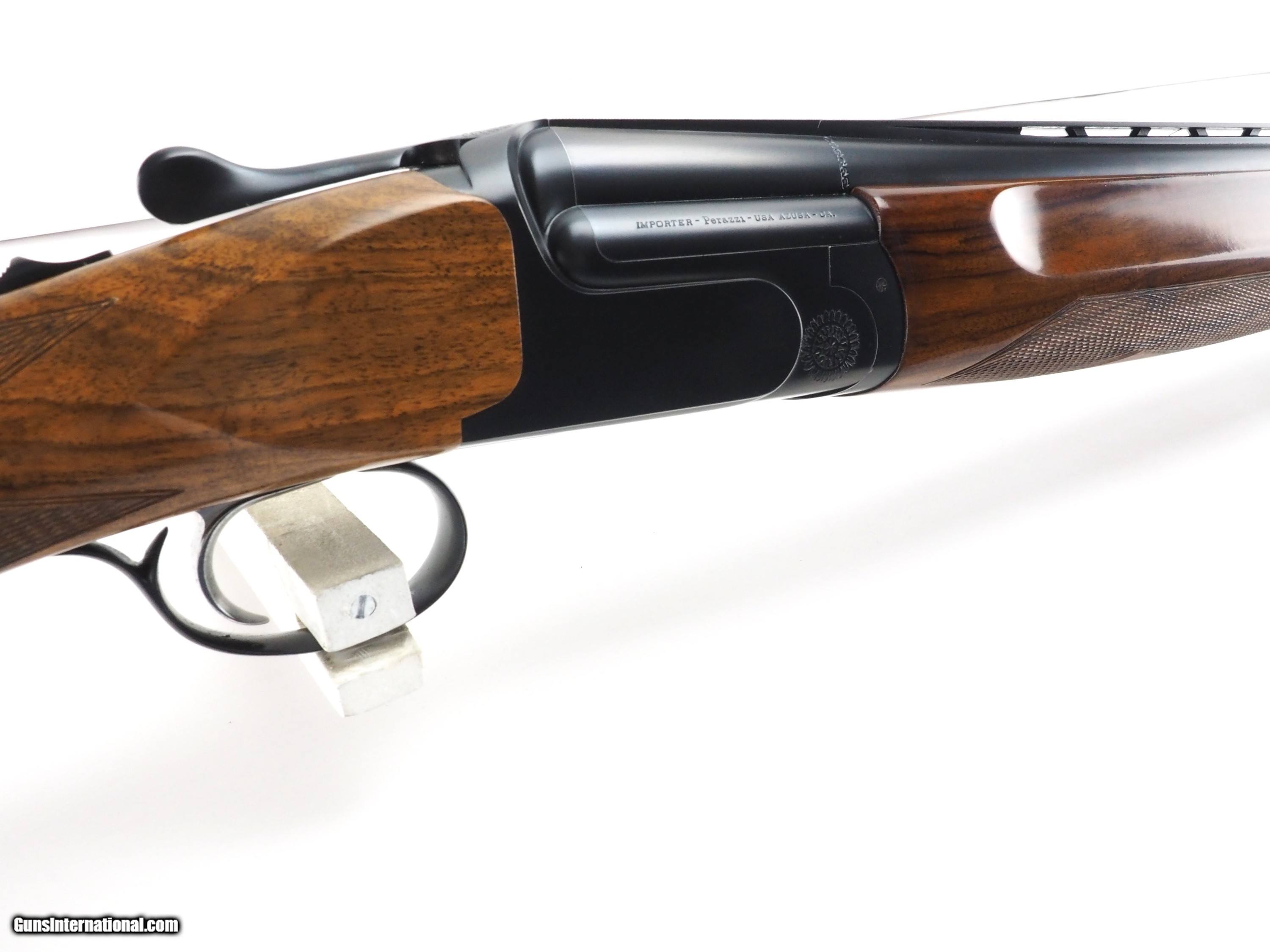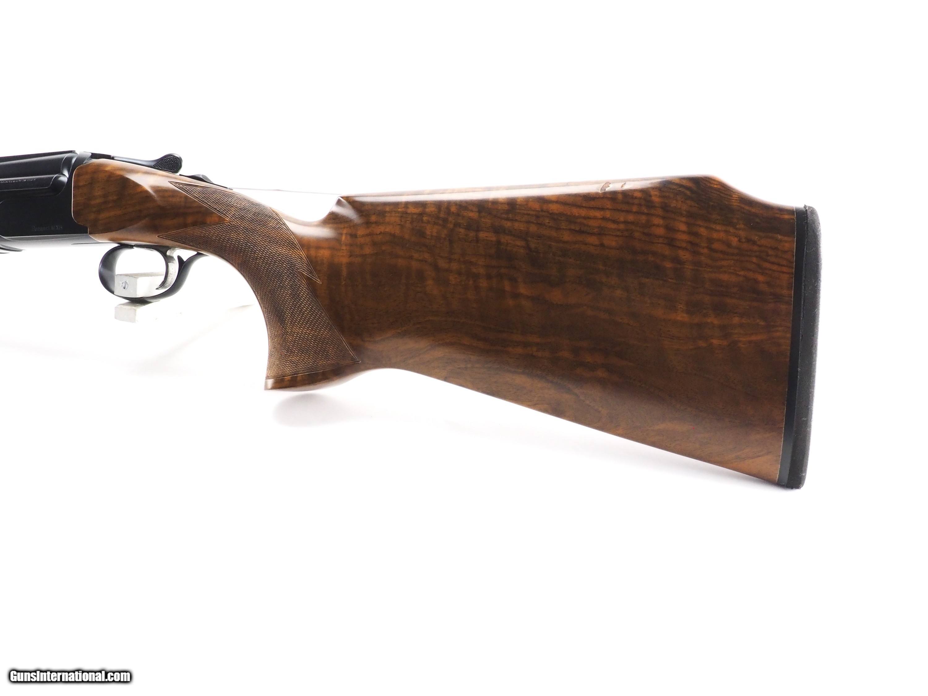 Description: 2015-production MX8 with all components numbers-matching, including the wood. Gun appears to be as it left the factory, apart from a setback trigger blade (original trigger blade included) and different rib bead configuration. Condition is pristine apart from pending in the stock (see photo). Not new, but very close to it! Length of pull is relatively short, but can be easily made longer by replacing the thin factory pad with a Kickeez or similar. Make: Perazzi Model: MX8 Hand: right Manufactured: 2015 Trigger: non-selective Barrel length: 30.75” (80cm) Top bore: .726” Top choke: .031” Bottom bore: .726” Bottom choke: .029” LOP: 14.25” (with setback trigger) DAC: 1.46” (37mm) DAMC: 1.41” (36mm) DAH: 2.09” (53mm) Accessories: factory original (non-setback) trigger blade, firing pin/spring kit, stock wrench, Perazzi microfiber cloth, factory paperwork Case: Negrini leather-trimmed compact SOLD |