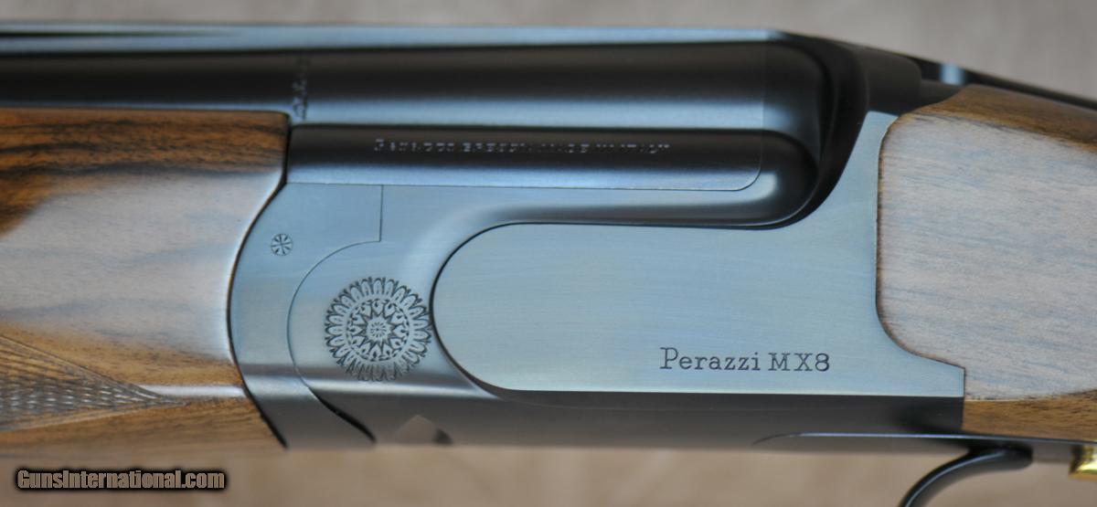 Description: As new in Pristine condition Perazzi MX8 12GA with 32" barrels, 1.560 kg, 18.7 bore, 11x7 flat tapered tramline rib. Factory blued action with selective removable trigger. Factory right hand upgraded SC2 Woodward style stock with beavertail forend, dimensions are 1 15/32", 2 1/16" with a LOP of 14 3/4". Briley extended black oxide thinwall chokes have been installed (7) (CYL, 2-SK, IC, LM, M IM). Overall weight of the is 8 lbs. Comes with factory Perazzi hardcase, manual, spare parts kit and tools. This gun is located at our NEW Michigan location at 8585 PGA Drive, Suite 104. Walled Lake, MI 48390. 248-960-7262. Refer to 598. SOLD |