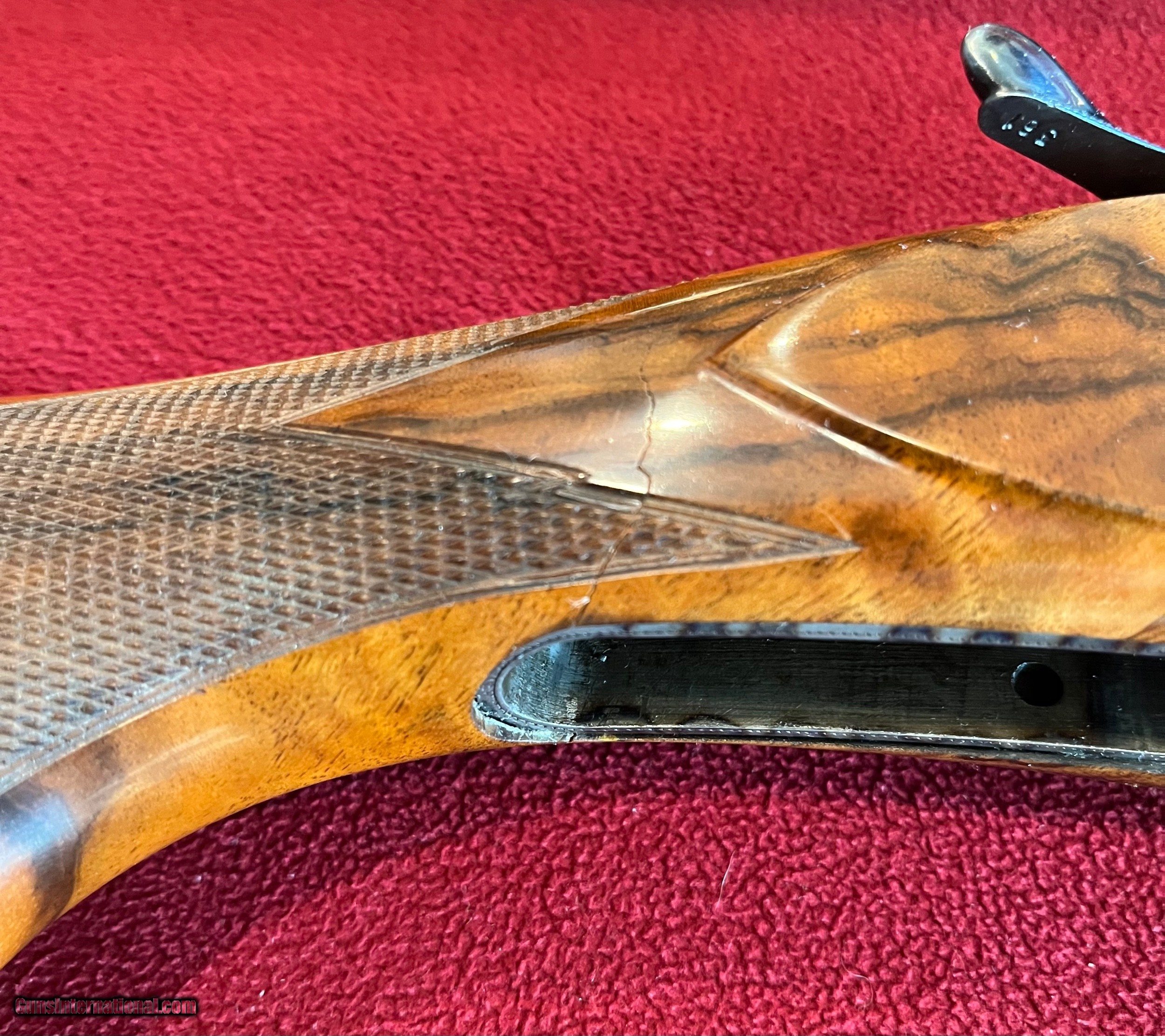 Description: I have a beautiful Perazzi MX8 Ithaca import for sale. This MX8 has barrels that measure 31.75 inches, color case hardened recever and beautiful wood. It has a 1/4" raised rib making it great for multiple disciplines. The LOP is 14.75" and has the removable Numbers matching trigger set. I have used this MX8 for the last 2 years for trap but owned for 10 years. Has never let me down. She does show some wear from use that you can see in the pictures but locks up tight and performs great. It does have a hair line crack in the butt stock but is very sound. I do have some additional Perazzi butt stocks that will fit the MX8 but would obviously need to be fitted and stained. Please feel free to contact me with questions or additional pictures. 4/14/22. I have taken the butt stock to my gunsmith to see if a repair could be made or i will fit another Perazzi stock to this MX8 SOLD Curio/Relic: Yes Shotgun Gauge: 12 Gauge Manufacturer: Perazzi Model: MX8 Serial Number: 42361 Condition: Good Metal Condition: Fine Wood Condition: Good Bore Condition: Fine LOP: 14.75 Manufacture Date: 1964 |
