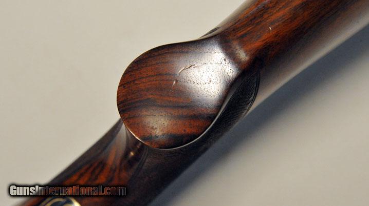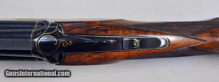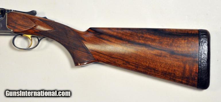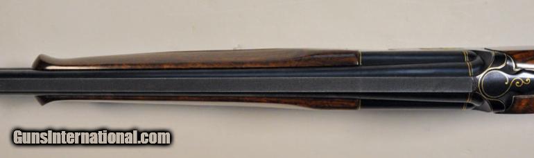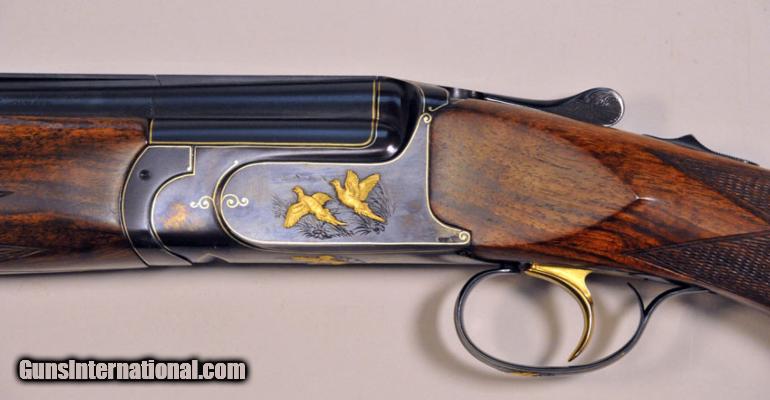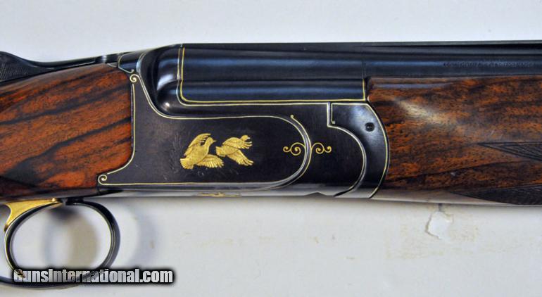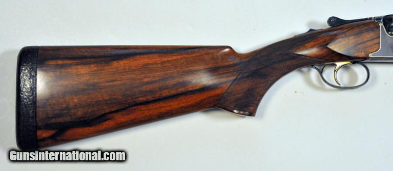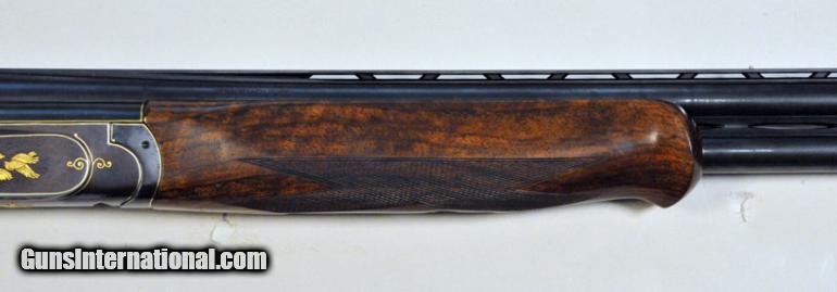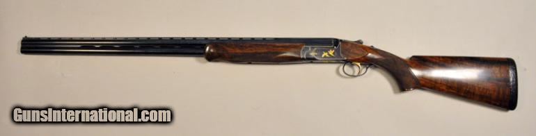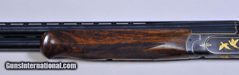 Description: Perazzi MX8 Ser. No. 87601. 20 Ga.- 29 1/2" barrel with full set of Briley thin walled chokes. Beautifully engraved and gold enlayed by Angelo Bee. Detachable trigger and nicely figured stock- 15 1/2"X 1 1/2"X 2". Cased in Perazzi hard case. Wonderful gun for clays or hunting. SOLD |