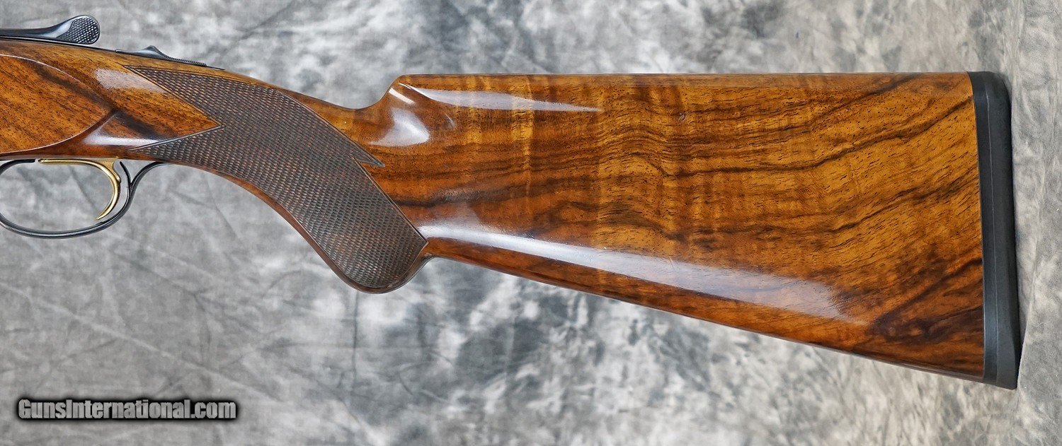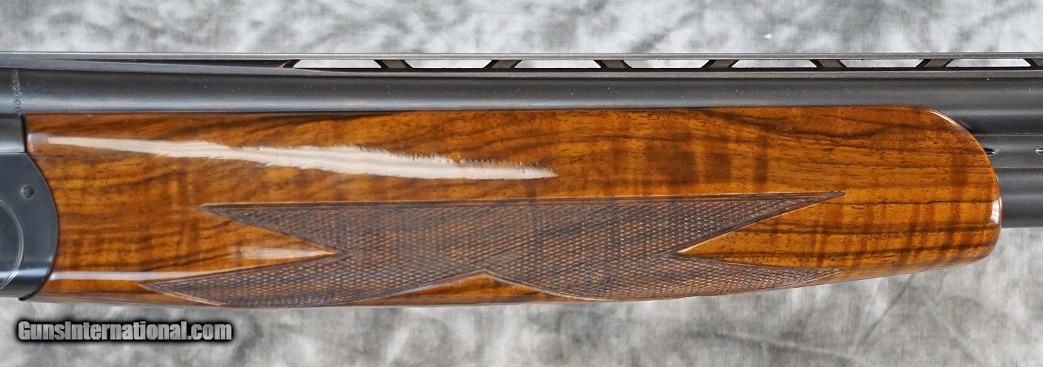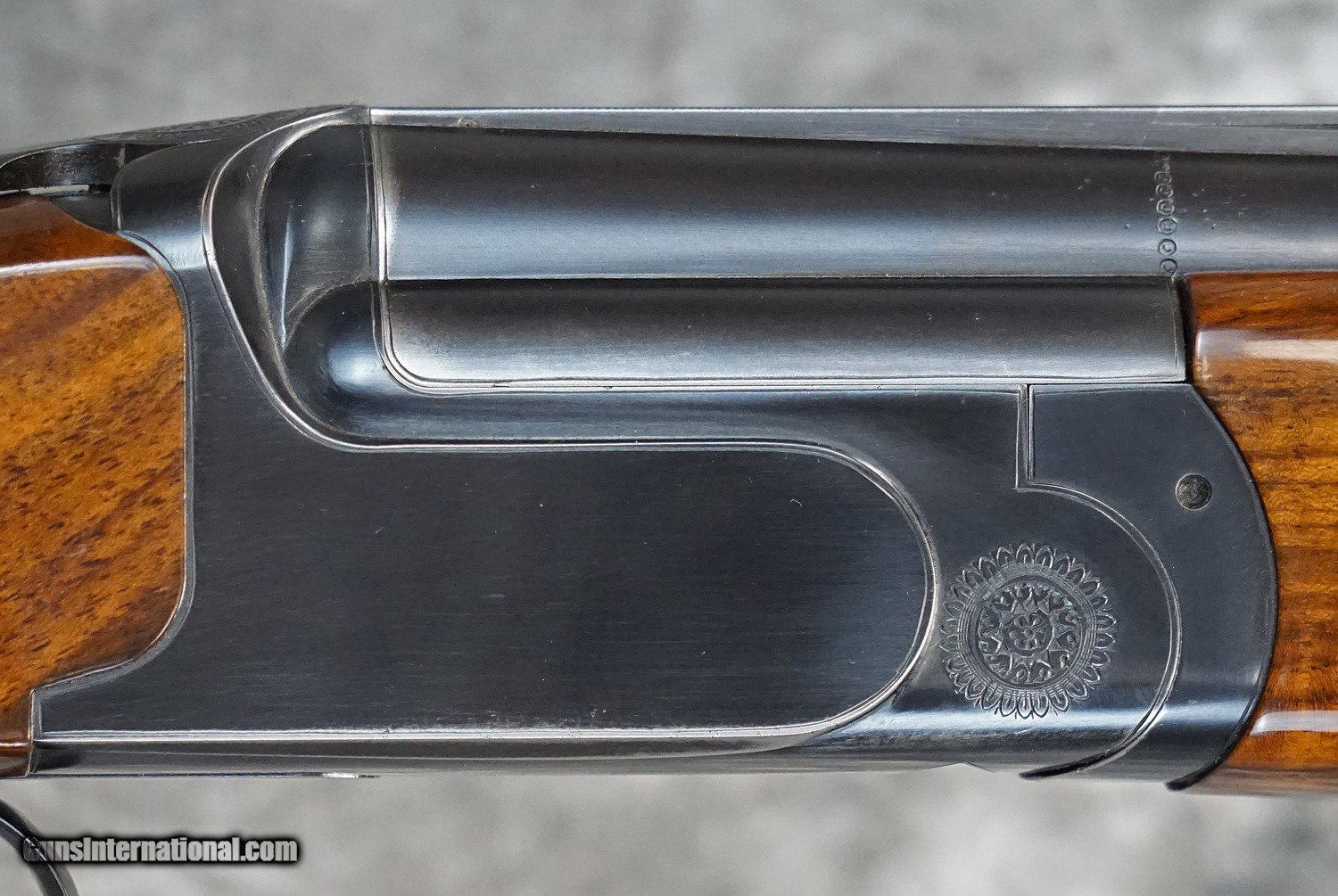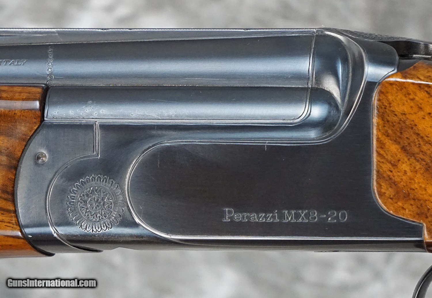 Description: Pre-Owned Perazzi MX8/20 Game 20GA with 29 1/2" Briley Thinwall choked barrels, 10x7 flat-tapered rib with ventilated side-ribs. Blued action with bluing wear on action and trigger guard with removable, flat-spring non-selective trigger group. Factory Prince of Wales pistol grip game stock with with game forearm, handling marks and minor finish wear on stock and forearm-stock and forearm have been re-finished at some point to a high-gloss. Includes factory case. SOLD Shotgun Gauge: 20 Gauge |