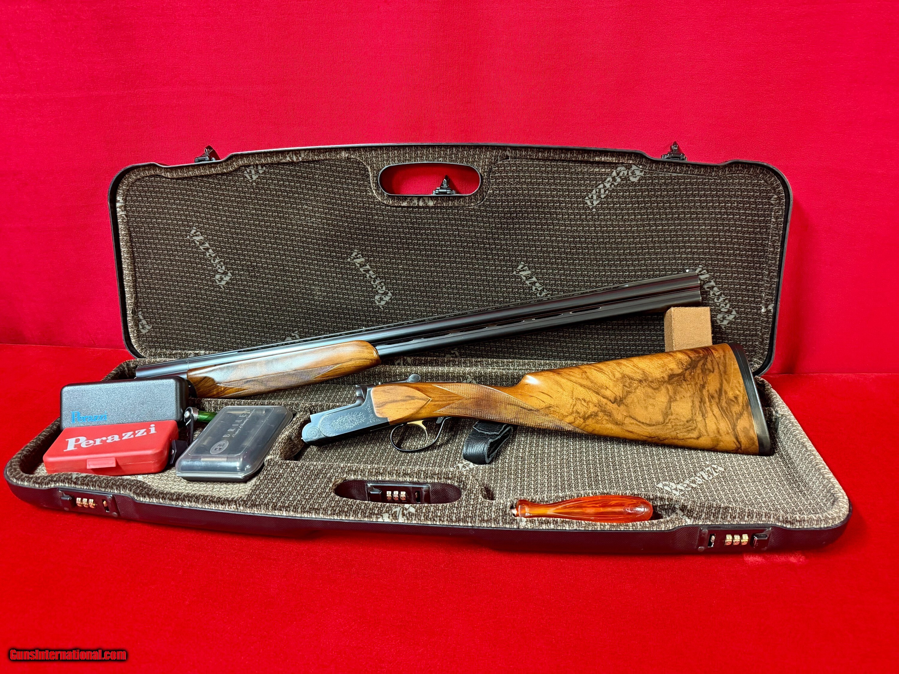 Perazzi MX8-20 Lusso grade all serial numbers matching #98XXX. Had a dropout externally selectable trigger. This is on the 20 gauge frame. Gun is in excellent condition with beautiful factory wood that definitely was upgraded wood