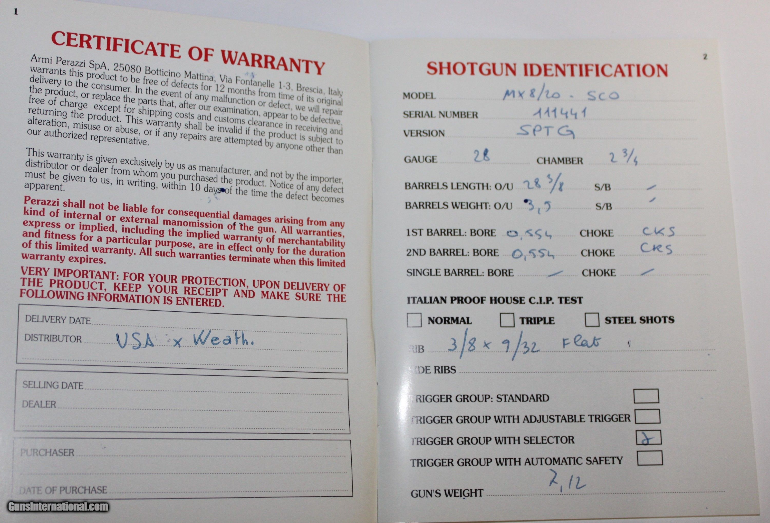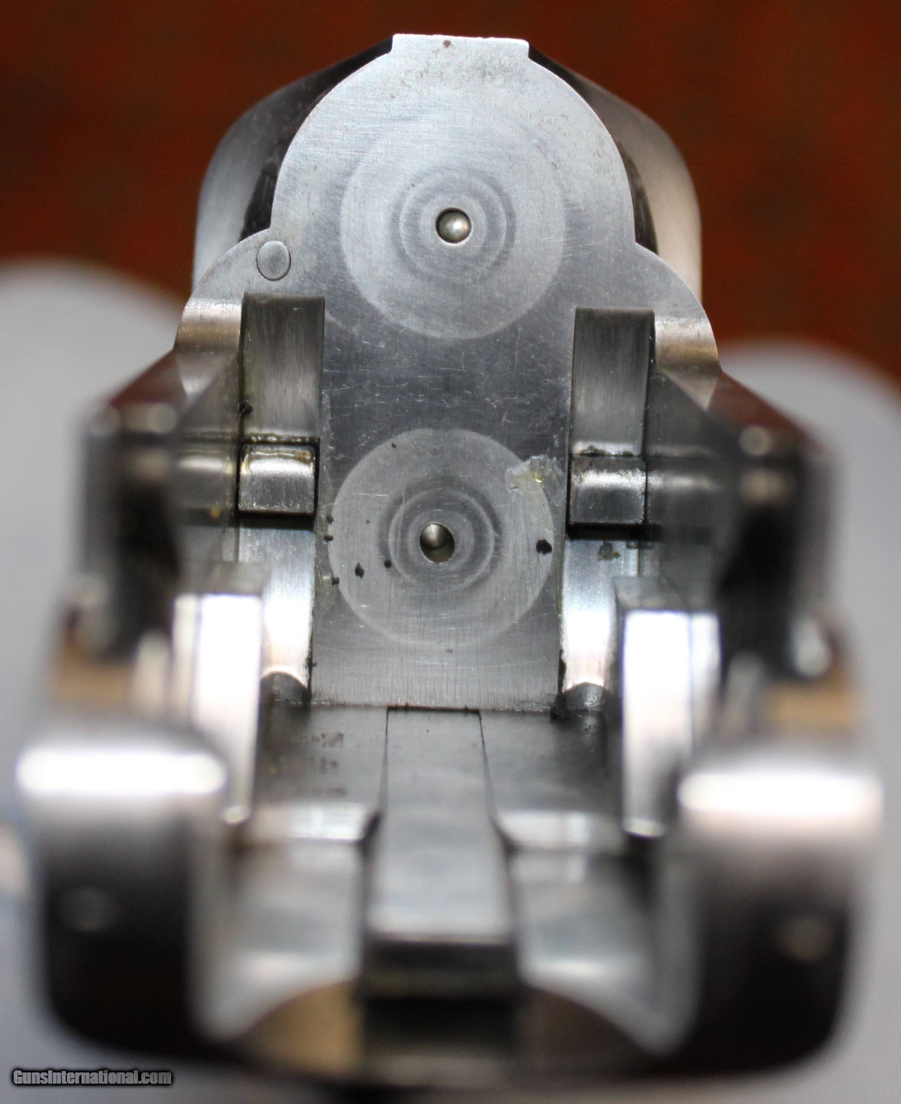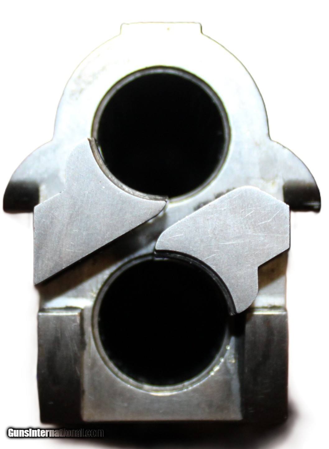 Description: Perazzi MX8/20 Bottega C. Giovanelli Inc. Zatti Signed 28ga ... 28 1/4" ventilated barrels ... LOA 45 1/2" ... LOP 14 1/2" ... DAC 1 3/8" ... DAH 2 1/4" ... 7lbs 14oz empty weight ... inertial trigger ... The 28 1/4" vented rib barrels have excellent, bright bores and retain 99% of the original blue finish with only a few minor handling/storage marks. This example has beautifully executed game scenes engraved on both sides and on the underside. The left side is engraved with a dog pointing at a grouse taking flight (similar to Perazzi engraving number 19 with a different breed of dog). The left side is engraved with two dogs pointing at a grouse taking flight (Perazzi engraving number 122). The underside is engraved with a dog holding a dead grouse in its mouth (Perazzi engraving number 140). Most of the remaining surfaces of the receiver have floral scroll engraving with extensive floral scroll engraving also on the break lever, trigger guard and forearm hardware. The coin finished components remain bright with only a few minute marks. The lower tang is signed "Bottega C. Giovanelli Inc. Zatti". The barrels have a white bead front sight, a nickel middle bead sight, are threaded for factory choke tubes with two 4's installed (modified), have 2 3/4 inch chambers with long forcing cones and ejectors. Both bores are stamped "13.9" and the date stamp is "BL" for 1998. The detachable trigger group is numbered to the gun and has an external selector switch. Mounted on a beautifully figured, multi-point checkered Turkish Walnut forearm and pistol grip stock with factory recoil pad.The wood is excellent with some scattered minor scratches and dings. Comes with the original Negrini takedown hardcase, spare parts kit (2 firing pins with springs, two hammer springs and hammer spring tool), an extra set of firing pins with springs, an extra set of hammer springs, 2 snap caps, 6 extra choke tubes (0,0,2,6,8,10), choke wrench, stock wrench and owner's manual. Call with any questions and see our other listings for ... "Only the best!" Buyer pays all shipping. Price: $21,500.00 Contact Seller |