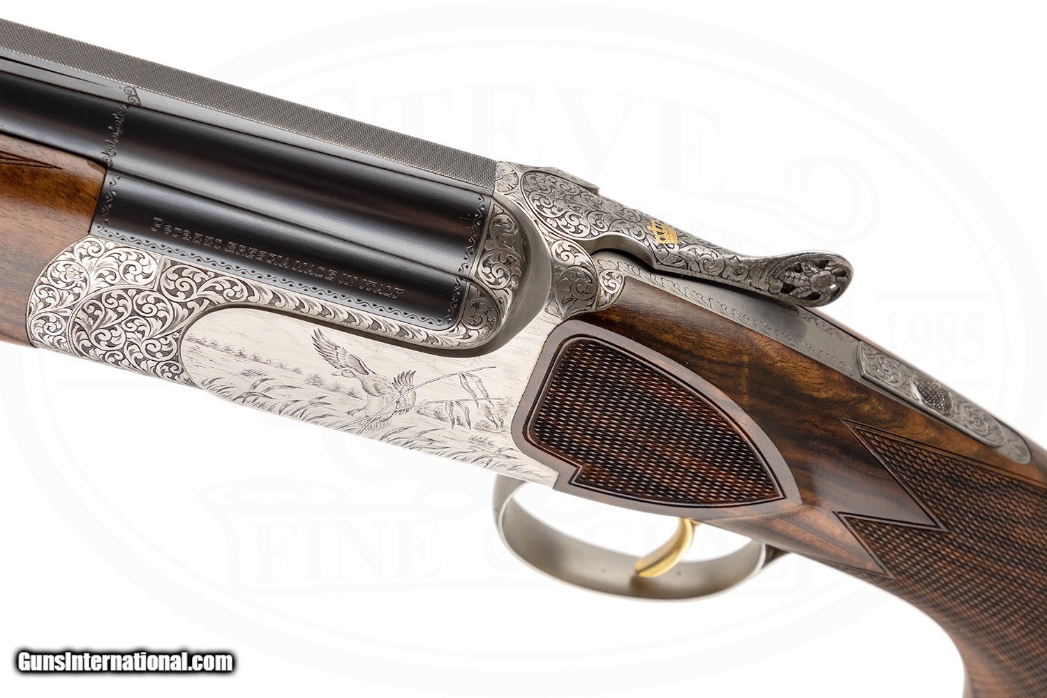 Description: GAMBA ENGRAVED BT DATE CODE - MADE 2003 1.390 KG BARREL WEIGHT 30" VENT RIB BARREL (.016 AND .020 CONSTRICTIONS) 3" CHAMBER SINGLE TRIGGER EJECTORS FIELD FOREARM PISTOL GRIP W/ HORN CAP LEATHER COVERED RECOIL PAD EXCELLENT CONDITION 7LBS 4 OZ 1 15/16" DAH 1 7/16" DAC 14 1/8" LOP CASED W/ PAPERWORK EXTRA SET OF LOCKS / STRIKERS SOLD |