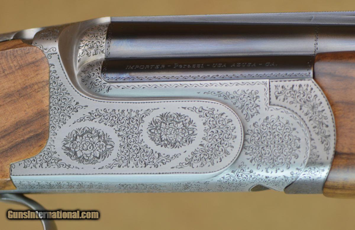 Description: New Perazzi MX8/20 SC3 Sporting 20GA with 32" factory fixed choke (.016/.024) barrels, 10x7 flat tapered tramline rib. Factory removable selective trigger. Coin finished SC3 grade action featuring fine English Rose and Scroll & pierced top-lever by Italian Master Engraver Terri. Outstanding factory pistol grip sporting stock with right-hand palmswell and PSA Pro style forearm. Includes factory case, tools. Call 626-633-1002 for pricing. SOLD |