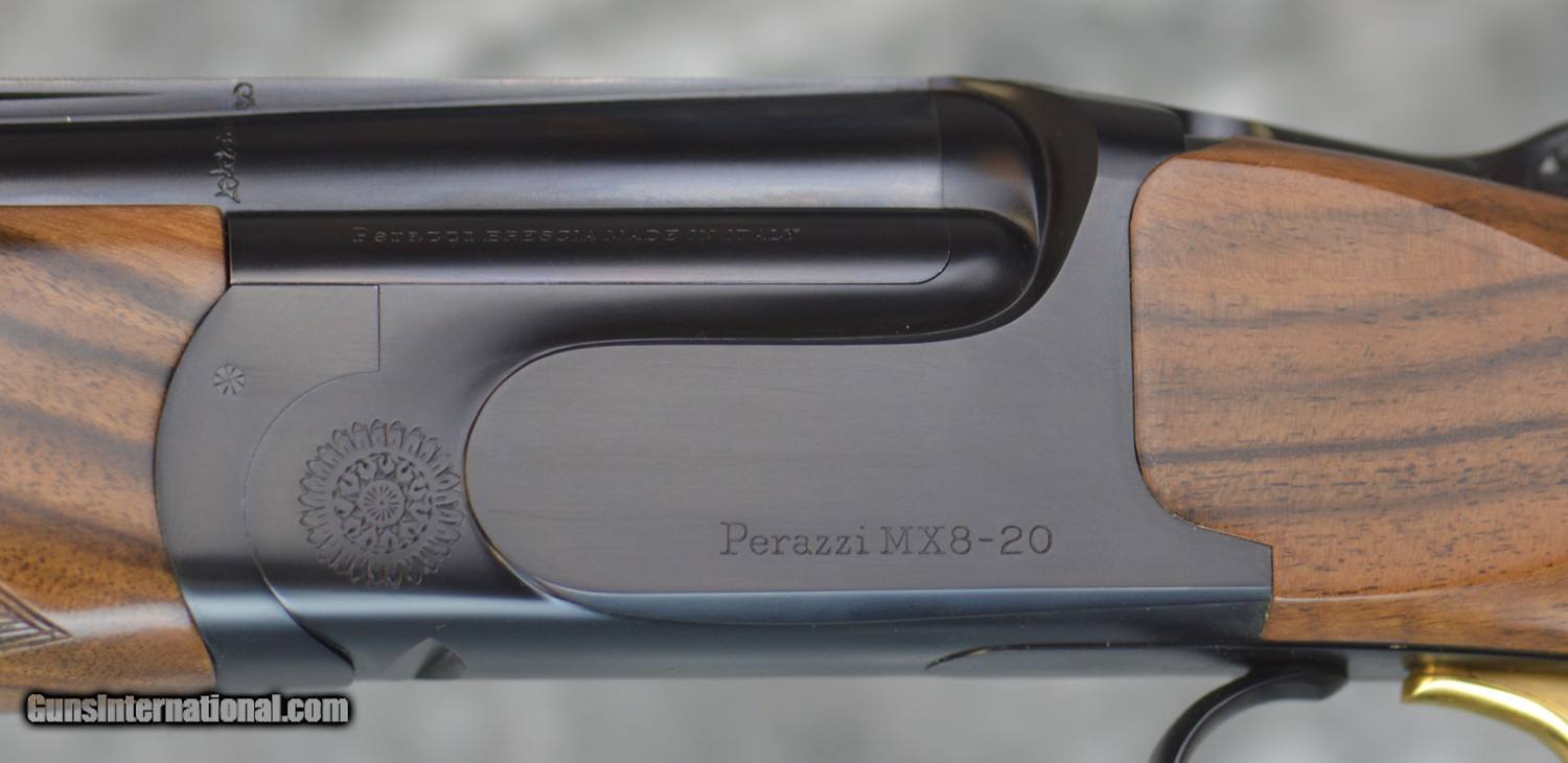 Description: New Perazzi MX8/20 Sporting Field 20GA with 30 3/4" factory choke tubed barrels, flat tapered 10x7 tramline rib. Blued receiver with pierced top-lever, selective removable trigger with flat-springs. Factory Purdey style pistol grip with right-hand factory adj. comb, fully checkered PSA Pro forearm. Outstanding all-around gun for sporting clays, driven or walk-up game. Includes factory case, chokes and tools. Call 626-633-1002. SOLD Shotgun Gauge: 20 Gauge |