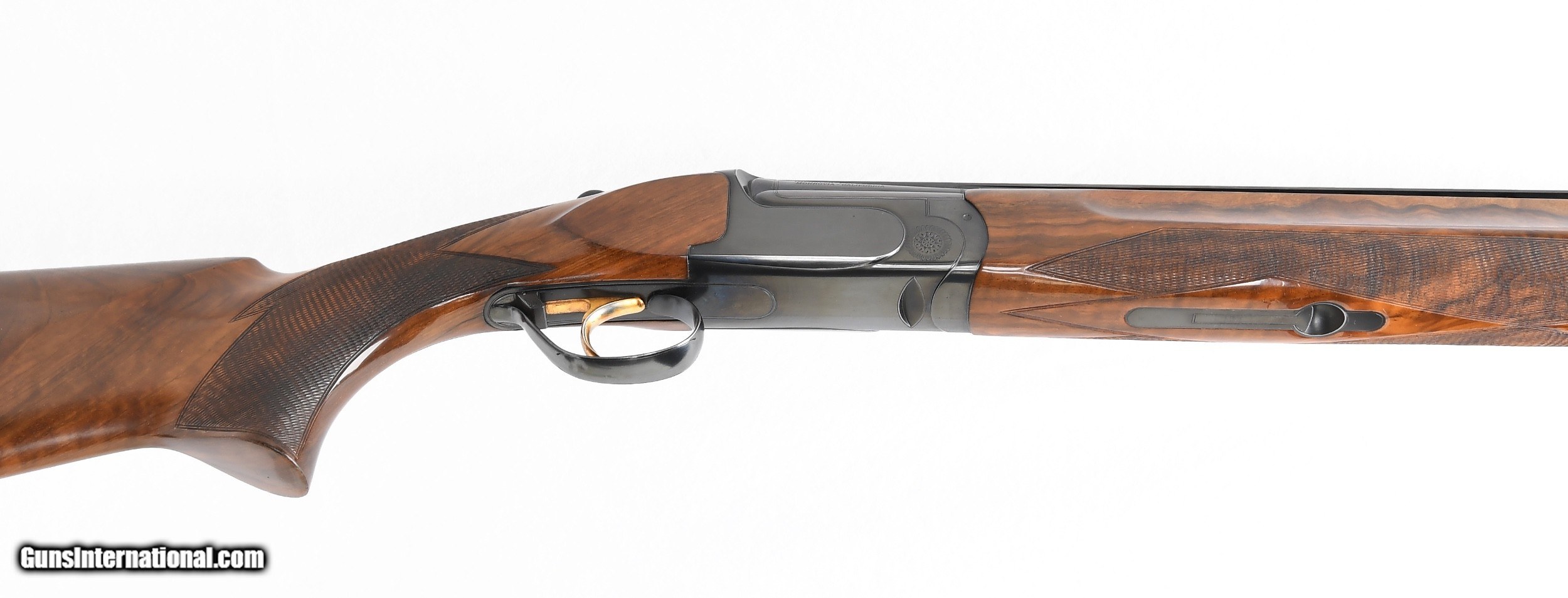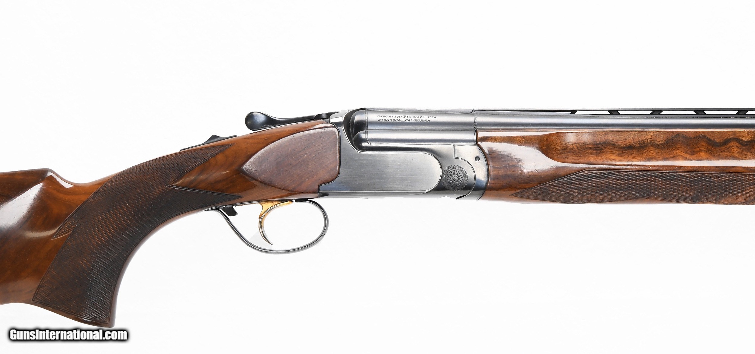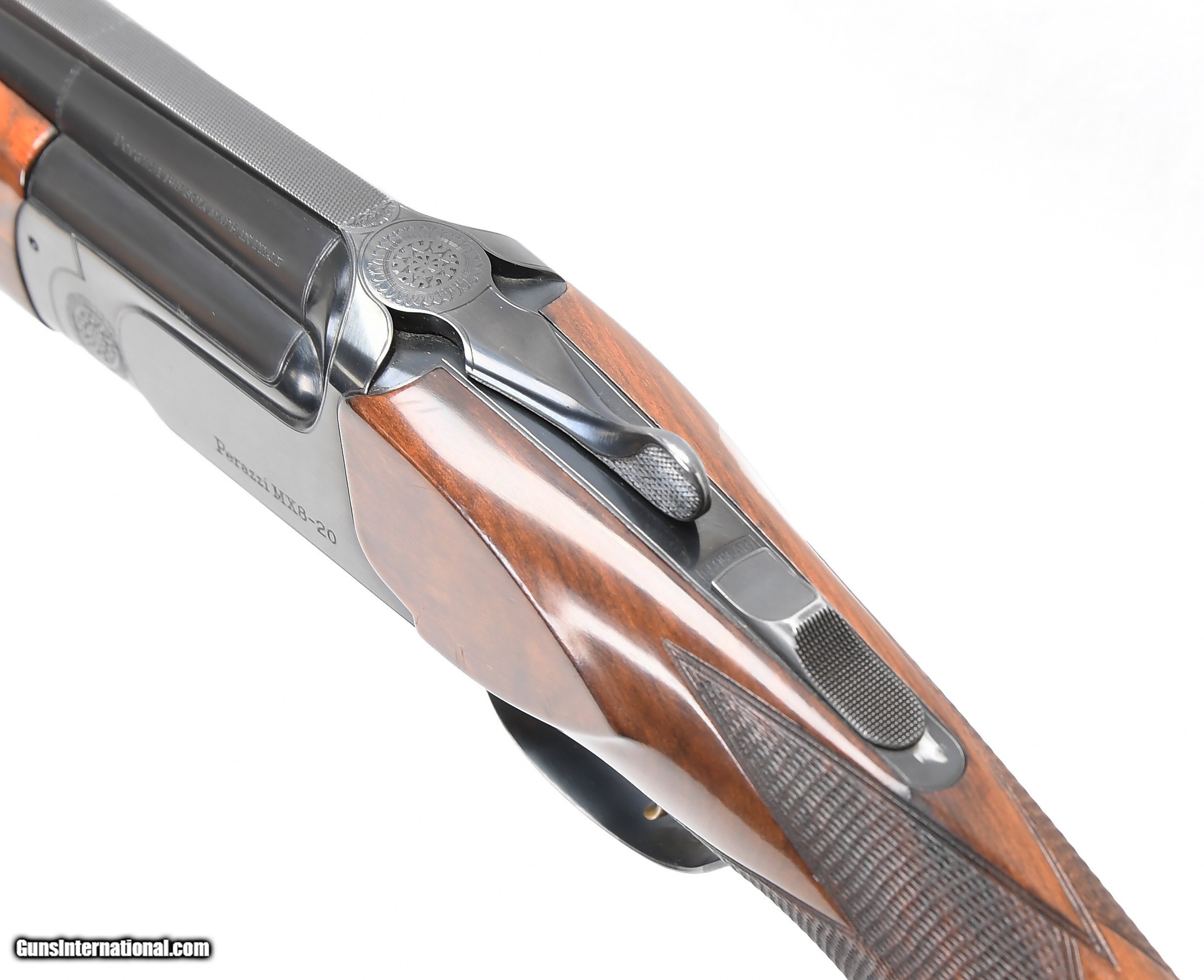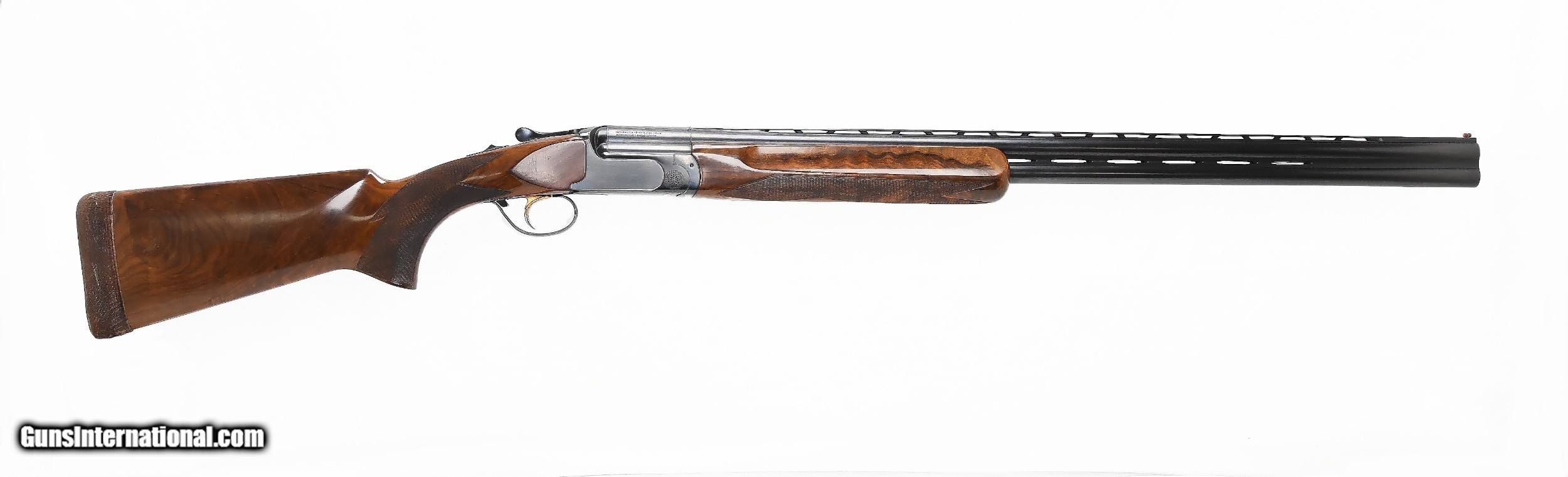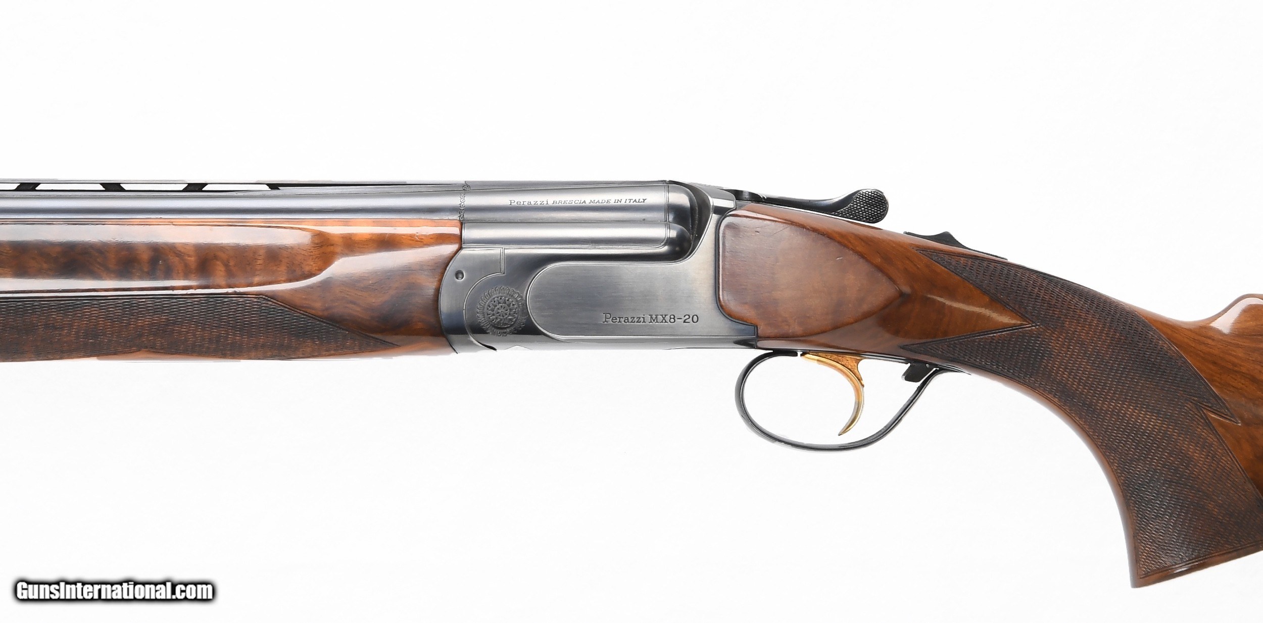 Description: Perazzi MX8-20 20 gauge O/U shotgun with an extra set of matching 28 gauge barrels. The original 20 gauge gun was made in 1995. 29 ½” barrels, 9 factory choke tubes, flat vent rib that tapers from 3/8” to ¼”. The matching 28 gauge barrel is also 29 ½”, 8 Briley choke tubes and the same vent rib, these made in 1998. The MX8-20 receiver has a matching removable single selective trigger with leaf springs. Nicely figured factory pistol grip stock has a 14 3/8” LOP over a full leather recoil pad; 1 ½” DAC; 2 ½” DAH with about neutral to 3/16” cast favoring a left handed shooter. Matching forearms. The left side of the stock has been sanded to make the comb thinner, then finished. Cosmetically this gun retains 97% overall finishes with just a bit of edge wear on the blued frame and light handling marks in the stock. Mechanically tight and excellent. Gun comes in a Perazzi two-barrel take-down case. Weighs 7 lbs. 15 oz. $11,500.00 SN: 93296 SOLD |