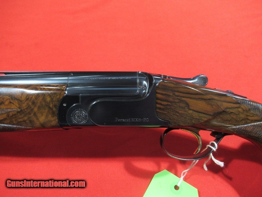 Description: Perazzi MX8/20 Two Barrel Set (20ga/28ga) w/ 28 3/8" Multichoke barrels -- Factory two barrel set with factory upgraded wood. This gun is equipped with factory installed choke tubes in both sets of barrels. Near new condition overall showing little use. This is a nice gun with the factory luggage case and accessories. SOLD |