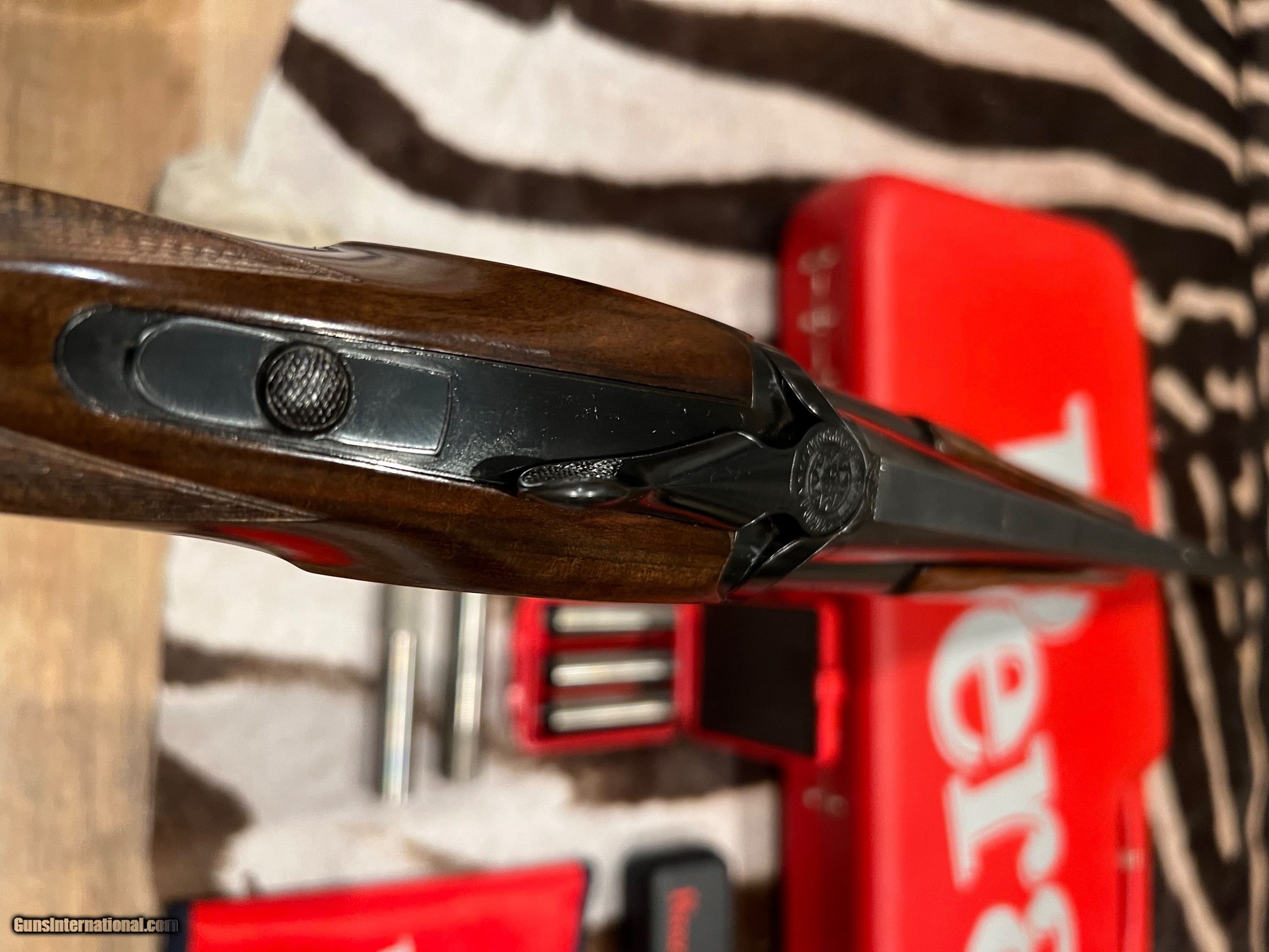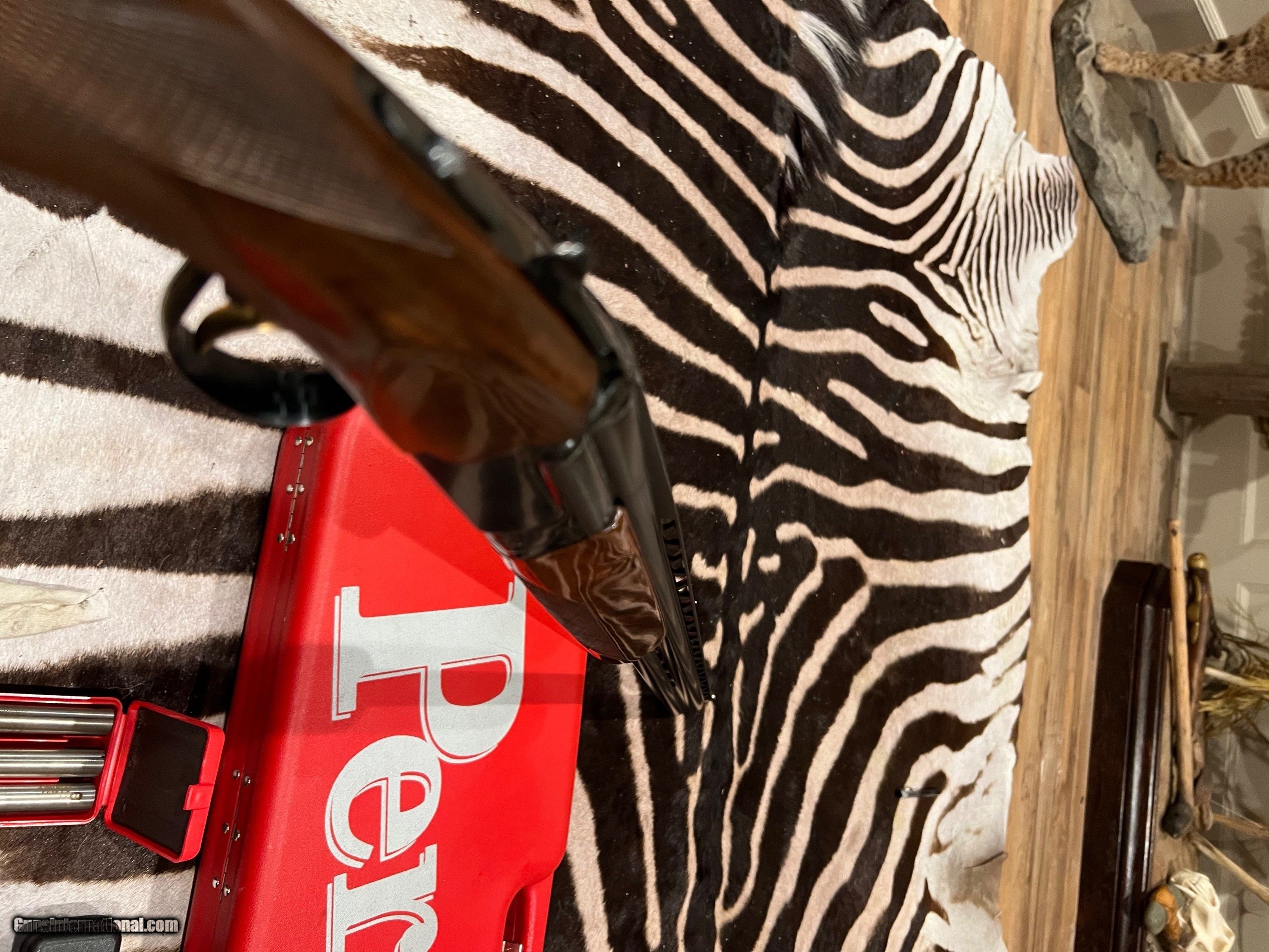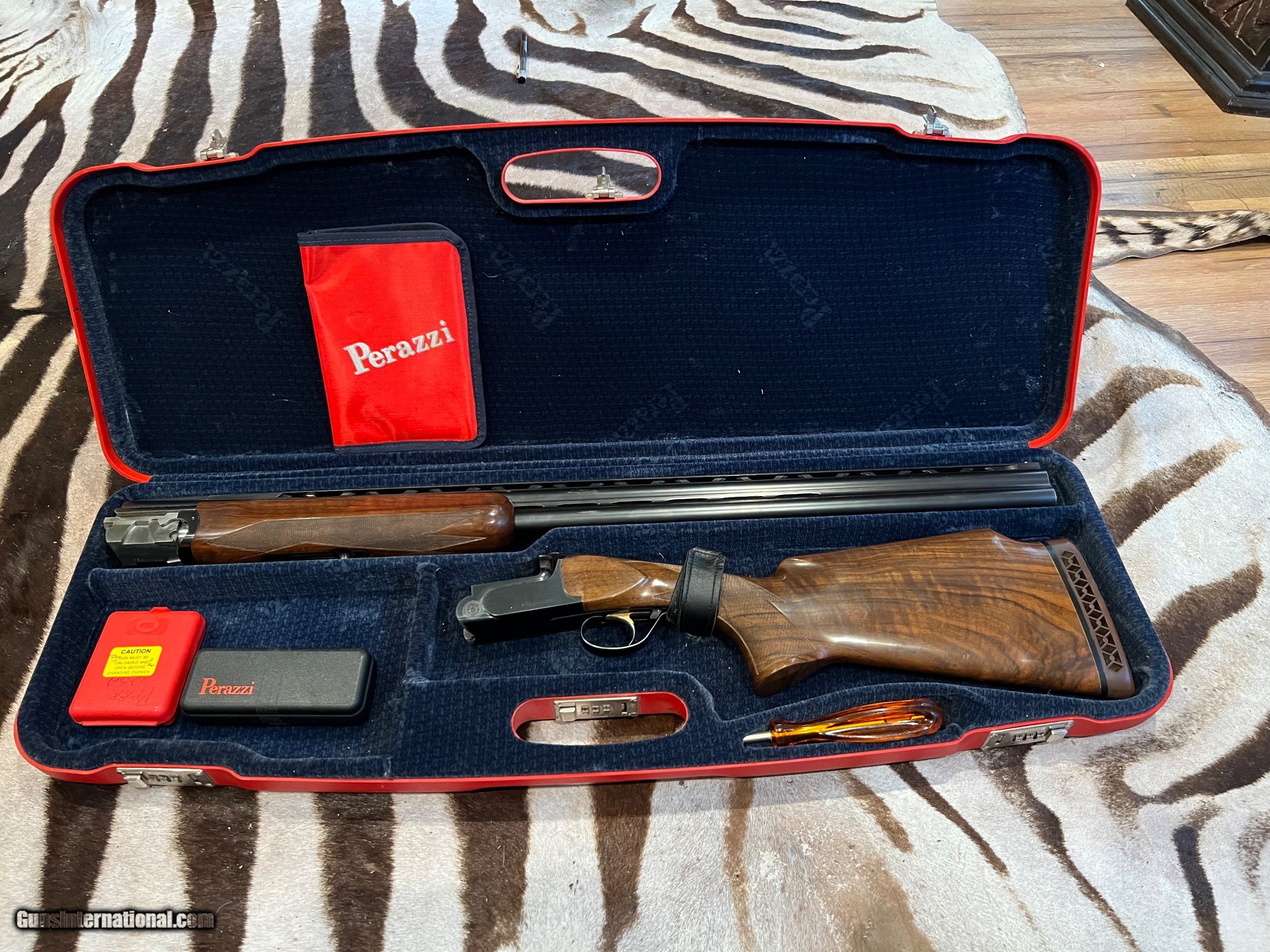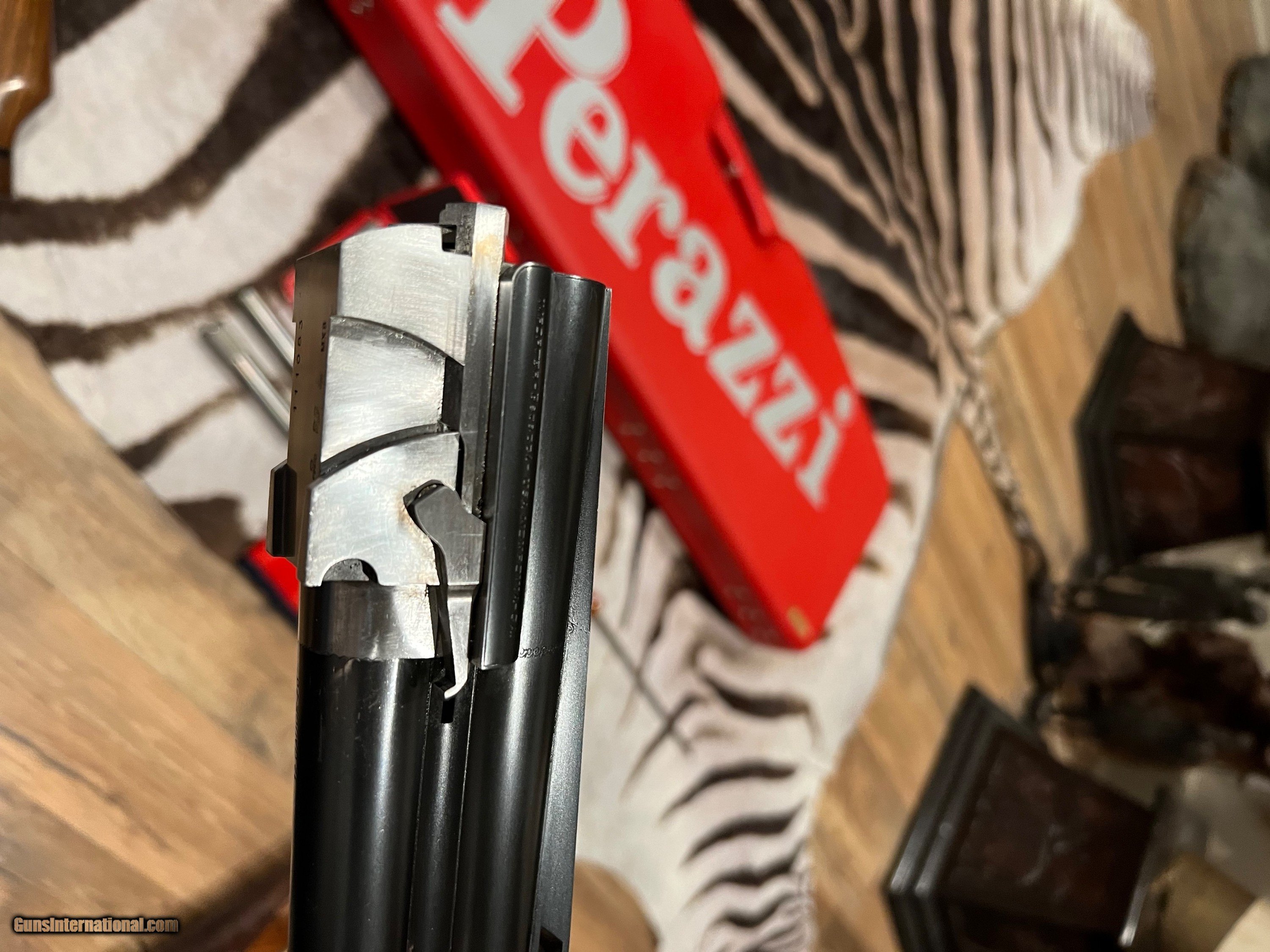 Description: SOLD..... Perazzi MX8 with 32" (31-3/4" 80.65 cm) barrel, removable Briley chokes three flush and two extended LM-M Removable external selective trigger. Beautiful stock in 99% condition right hand cast, 14-5/8" LOP, 1-1/2" Drop at the comb and 1-11/16" at the heel. The gun is all original with matching serial numbers in pristine condition and it was just serviced by Giacomo in NY cased in original Negrini with spare V springs and firing pins. For additional information call/text 512-595-1248 SOLD Shotgun Gauge: 12 Gauge Manufacturer: Perazzi Model: MX8 Barrel Length: 32” Condition: 99% Metal Condition: 99% Wood Condition: 99% Bore Condition: 100% Triggers: Removable LOP: 14-5/8” Rib: Tapered 7to 11mm Weight: 8.1 pounds Chokes: Removable Briley Case: Yes Item Location: North Carolina |