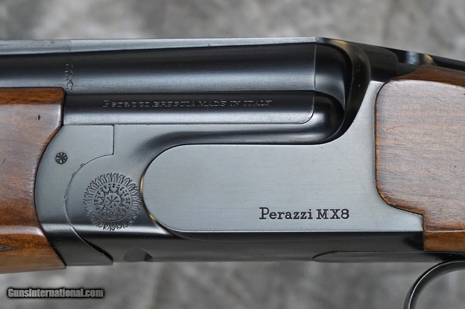 Description: Pre-Owned Perazzi MX8 Skeet 12GA with 30" fixed (SKT/SKT) choke barrels, 11x7 tapered checkered rib. Blued action with factory removable, flat-spring non-selective trigger. Minor bluing wear on edges of action. Full set of fitted Briley UL (20/28/.410) sub-gauge tubes. Minor bluing wear on barrels. Factory pistol grip stock with Graco adj. comb, beavertail forearm. Minor handling marks on stock, minor target dings and minor scuffs. Includes Nasco case, only includes SKT/SKT chokes for sub-gauge tubes. SOLD Shotgun Gauge: 12 Gauge, 20 Gauge, 28 Gauge, .410 Gauge |