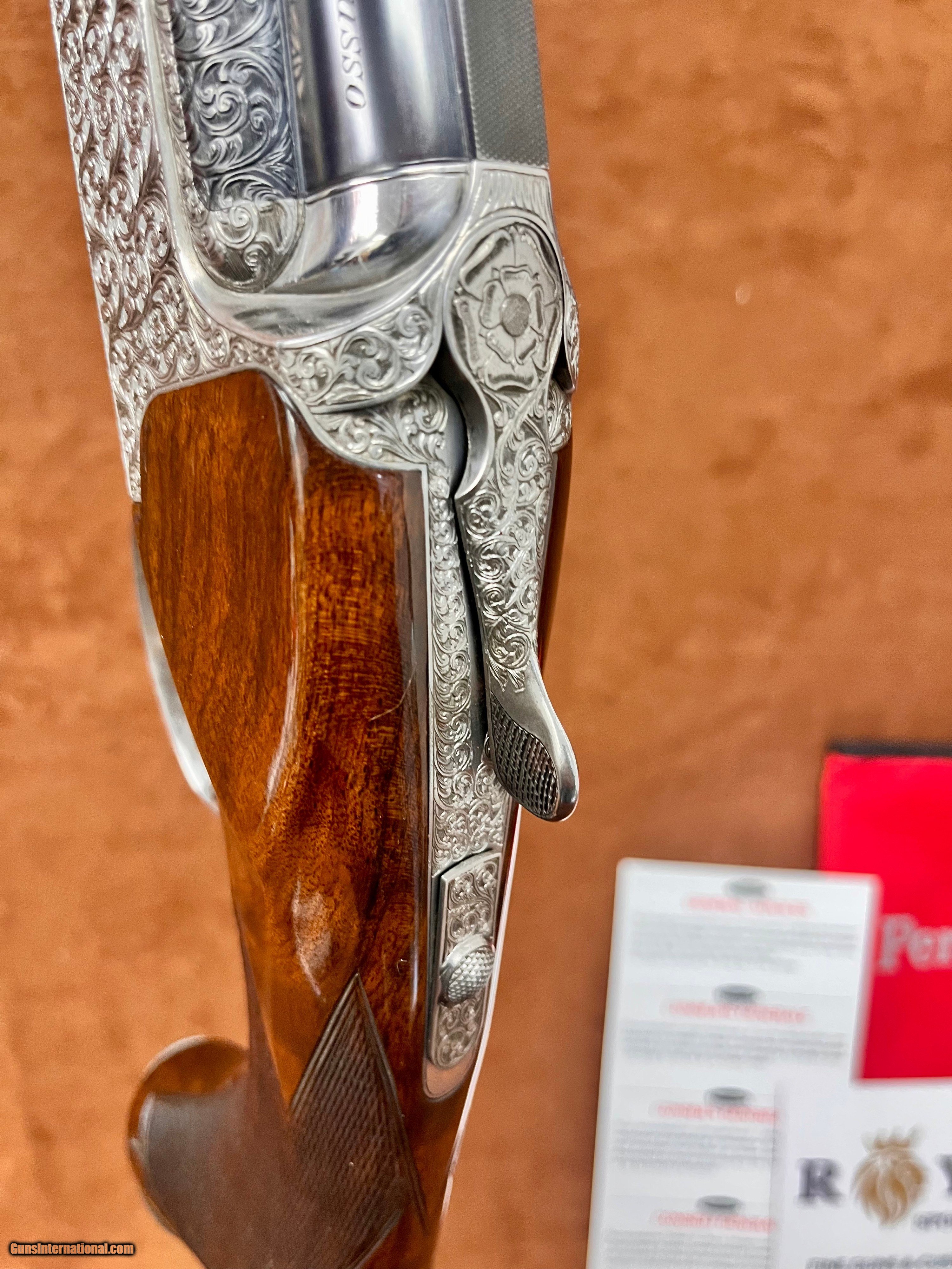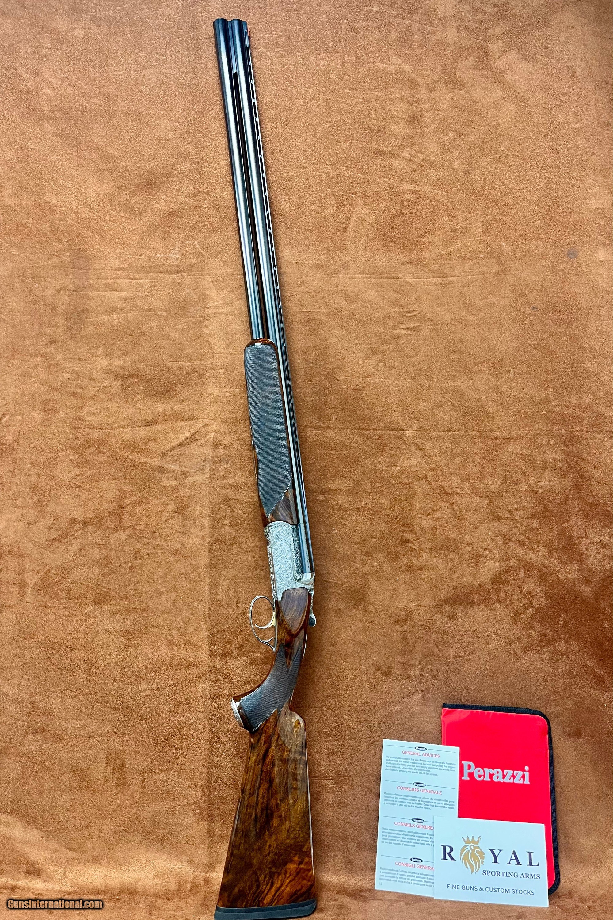 Description: Just in at Royal Sporting Arms!!! Handsome Perazzi MX8 Grande lusso Sporting With beautiful Stock Upgrade and full coverage hand engraving in all parts 31.5” Extremely desirable Barrel Elegant wood Upgrade ($2700 upgrade) RH Stock Interchangeable bottom barrel choke, Full Top Replacement cost is $22,500 and 18 month wait This MX8 is extremely Nimble, Dynamic and makes absolute smoke balls out of clays on the course! This together with Perazzi Pedigree is sure to last a lifetime of successful shooting! For Immediate assistance please call/text 954-676-0714 ALL TRADES CONSIDERED AND WELCOME!! SOLD Shotgun Gauge: 12 Gauge |