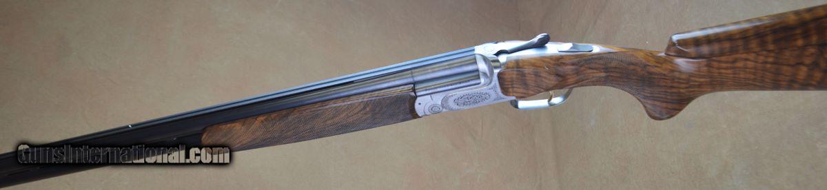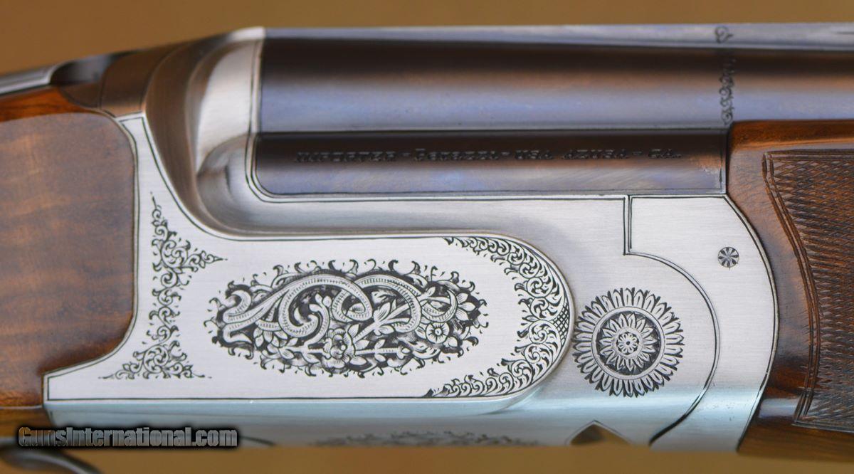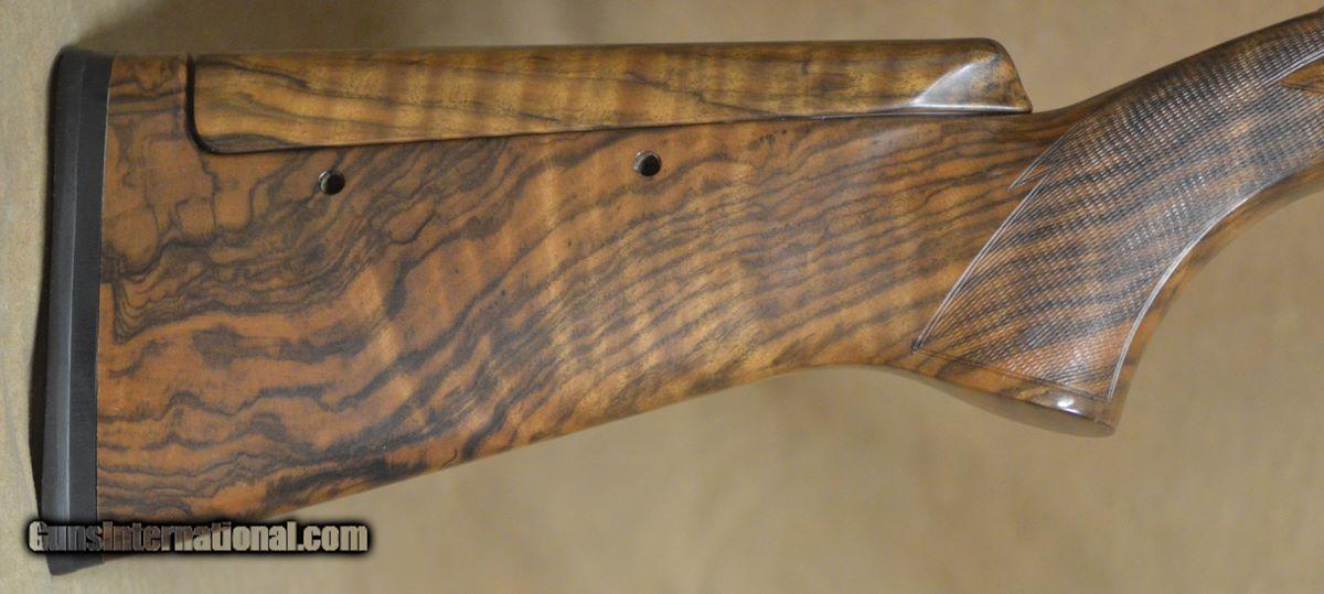 Description: Perazzi MX8 Lusso Sporting 12GA with 32" factory choke tubed barrels with 11x7 flat tapered tramline rib. Coin finished receiver with fully hand-engraved Lusso pattern featuring scrolls and ribbons. Selective, removable trigger. Outstanding factory adj. comb pistol grip stock with right-hand palmswell, fully checkered English sporting forearm. Minor handling marks on stock and forearm, overall outstanding condition. Includes factory case, chokes and tools. This gun is on consignment and not eligible for trade-ins. SOLD |