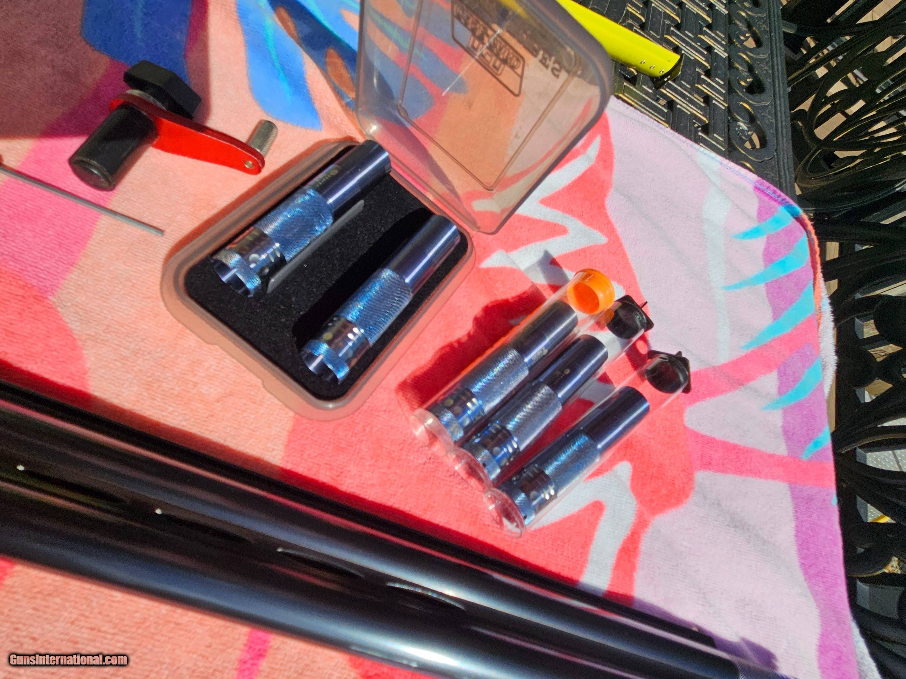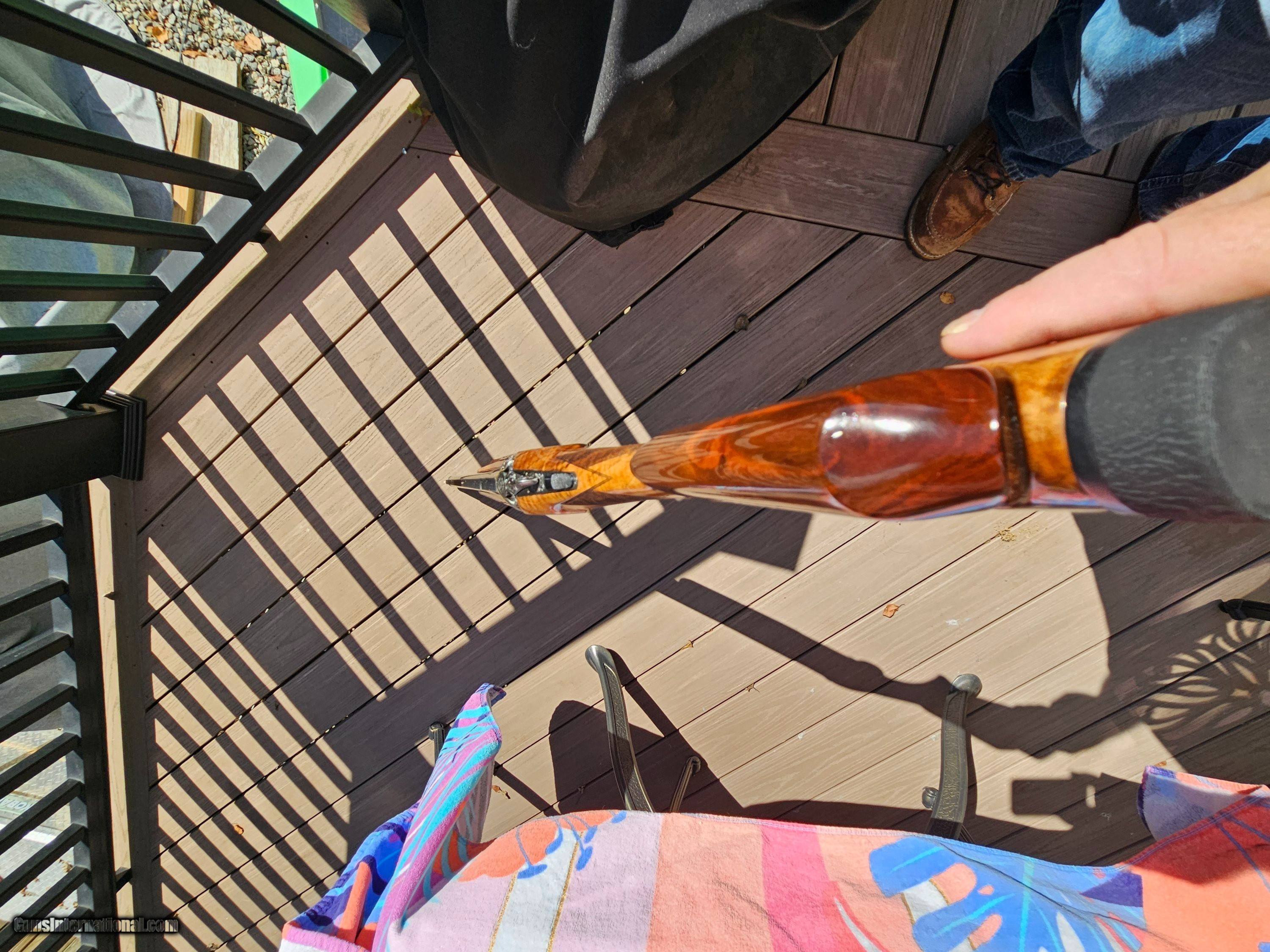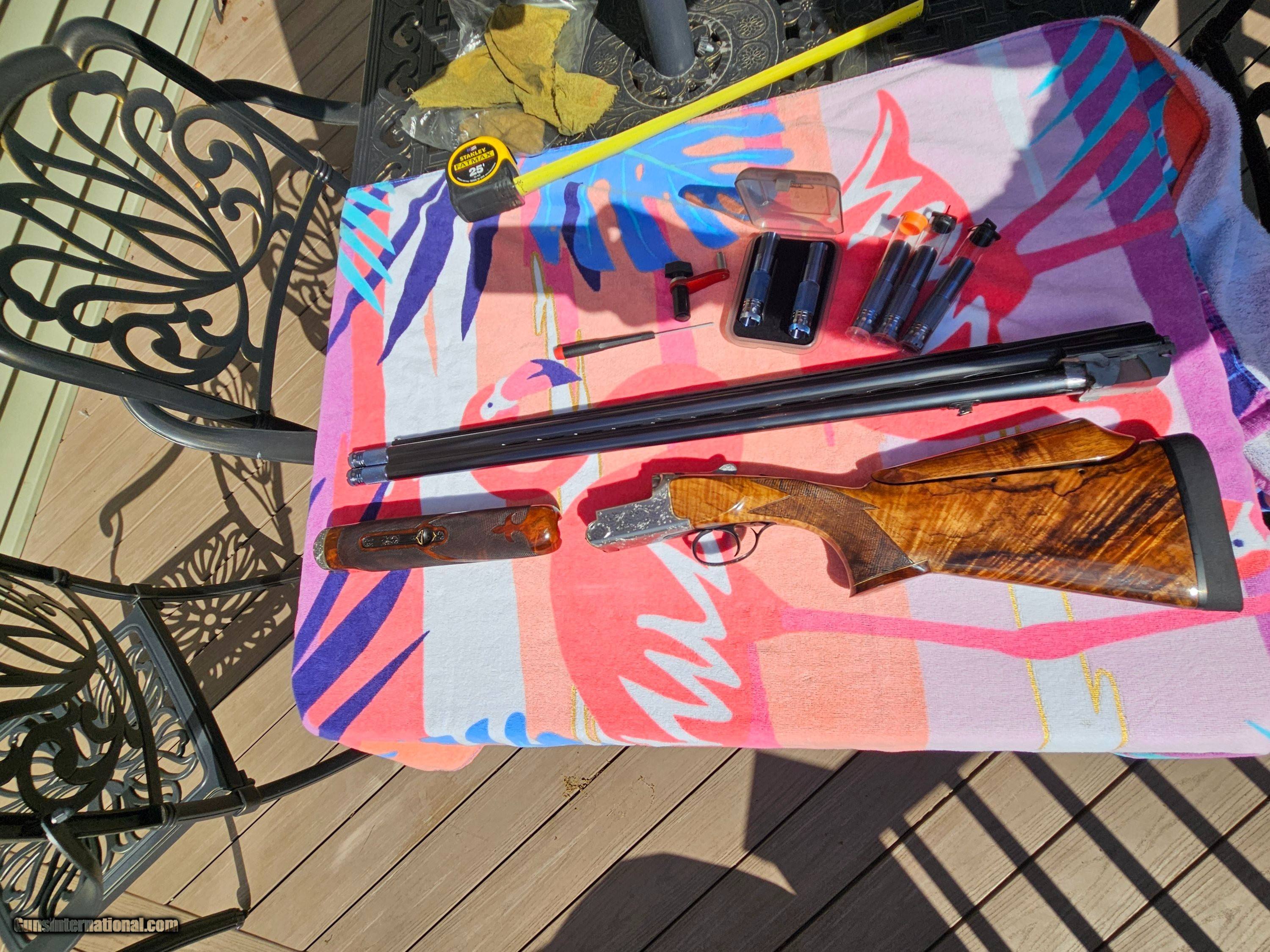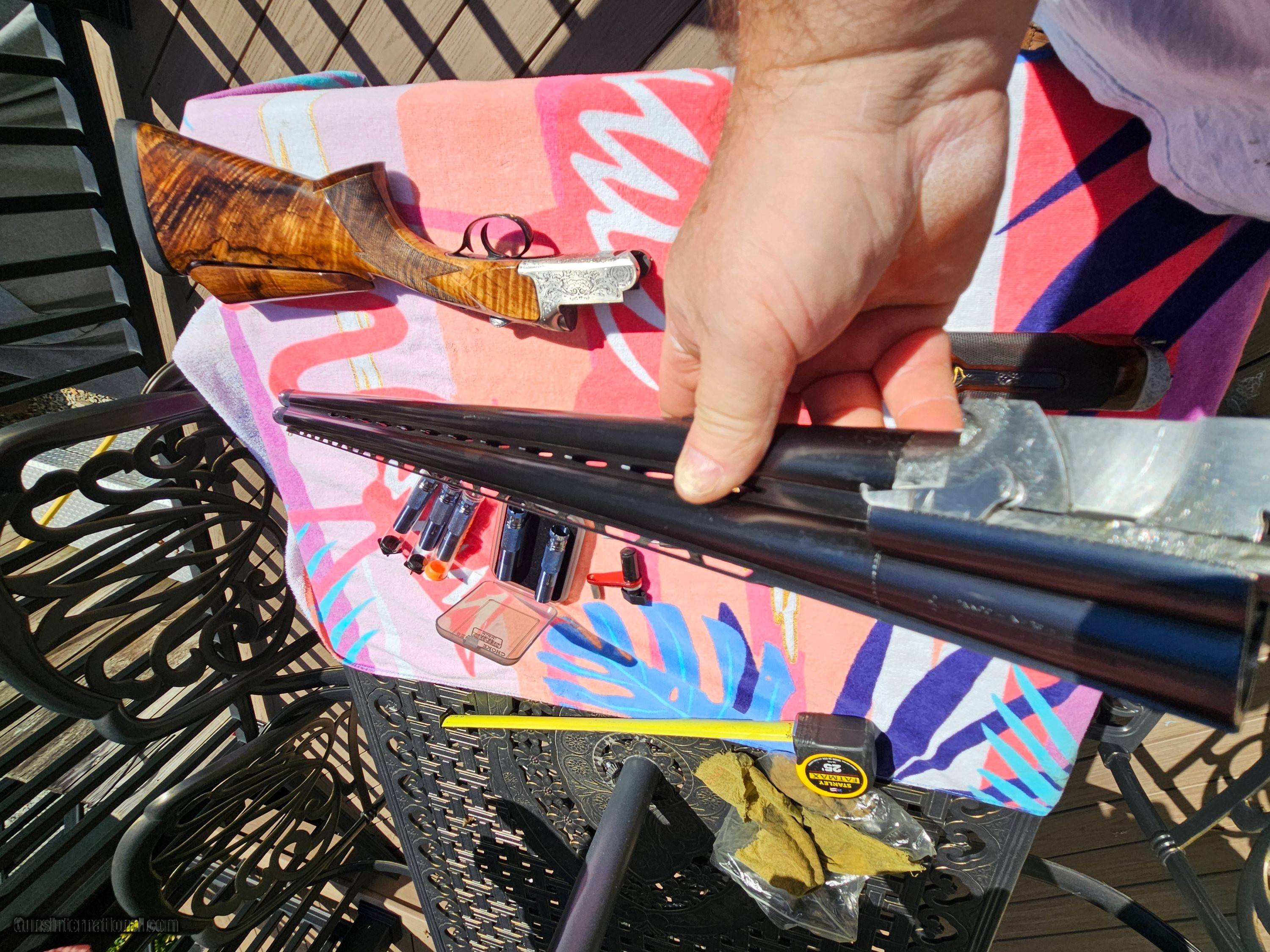 Description: Really Really nice PERAZZI MX8 MIRAGE. LOTS OF EXTRAS Highly figured wood grade 5 showing super grain it was sent to Briley and was bent to neutral. Will work now with both right and left hand shooters. No palm swell 14.5 LOP 1 1/2 DAC 2 1/4 DAH Adjustable Comb. Type 3 gun with no cracks or repaires. Another plus 7 custom made briley super extended chokes not thinwall this now give a full 30.5 barrel length barrel 5 chokes alone were $900.00 from briley never used have receipt. also When Briley bent stock they replaced locking bolt and tighten barrel and forend another $1100 from briley also have receipt. receiver and forend metal is highly engraved with real gold outline not signed by engraver number matching gun shot less then 50 shells since it came back from briley metal, wood are unbelievable lots of pics have 12k in gun selling for $8800 REDUCED $8000 Without trigger for only $7500 Shotgun Gauge: 12 Gauge Manufacturer: Perazzi Model: MX8 Price: $8,000.00 Contact Seller |