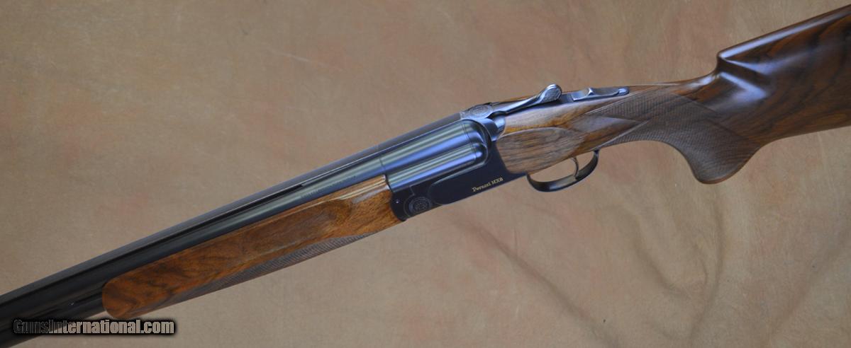 Description: Perazzi MX8 Olympic Trap/Pigeon 12GA with 29 1/2" fixed choke (.028/.040) barrels, 11x11 flat rib with red blade front sight. Blued action showing minor bluing wear on trigger guard and edges of action. Factory pistol grip stock with no palmswell, slim beavertail forearm. Includes factory case. SOLD |