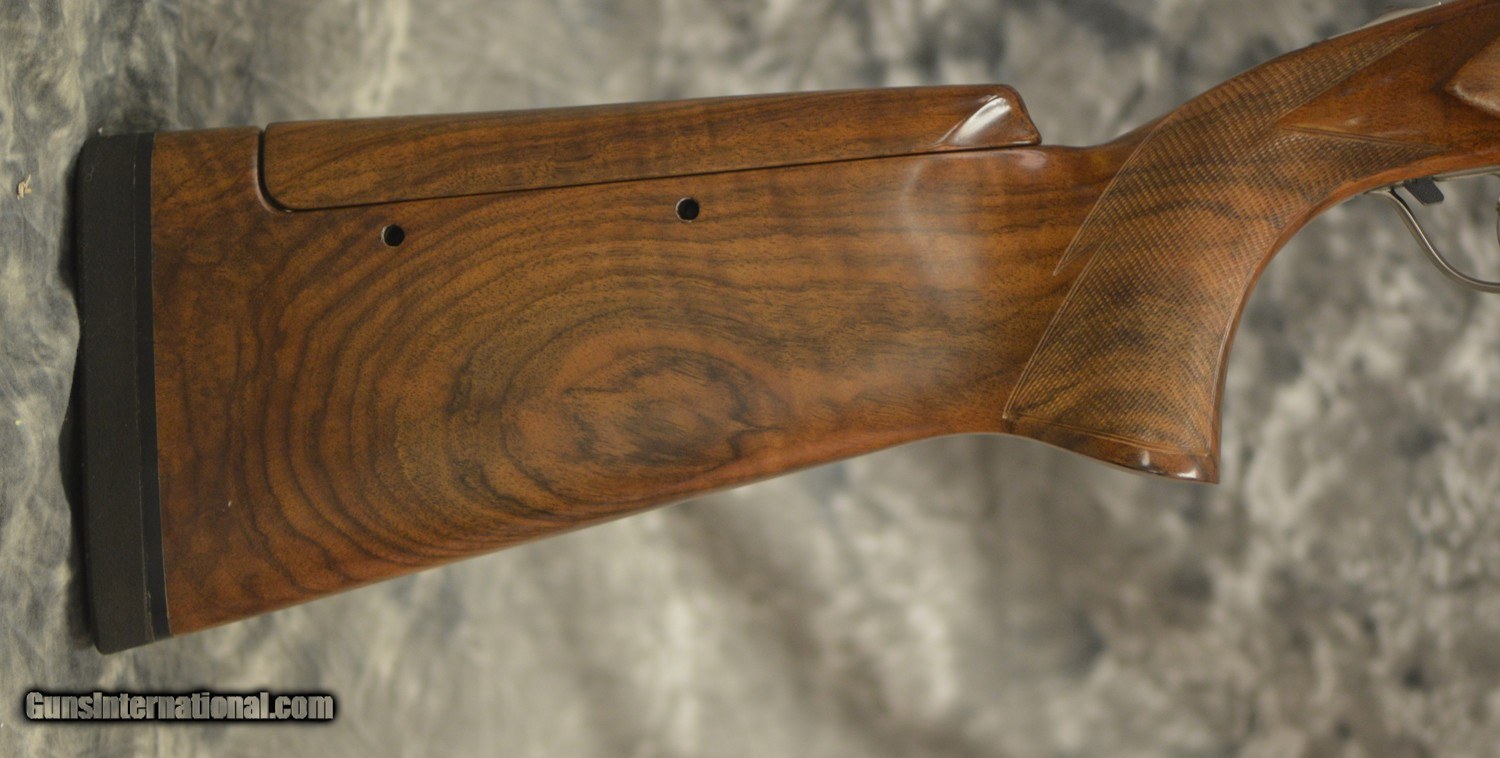 Description: Pre owned in excellent condition Perazzi MX/8 PSA Pro Sporter. Features Nickel receiver with PSA logo with select able and remove able trigger with flat springs. 32" factory C/T barrels (1.690kg/18.7 bore), 11 mm x 7 mm flat tram line rib. SC2 grade sporting stock with English forend and adjustable comb. Stock dimensions are; 1 1/2' x 2 1/4". LOP 14 3/4". Cast odd 3/16" at the heel and 3/8" at the toe. Factory case, tools and spare parts kit included. SOLD Shotgun Gauge: 12 Gauge |