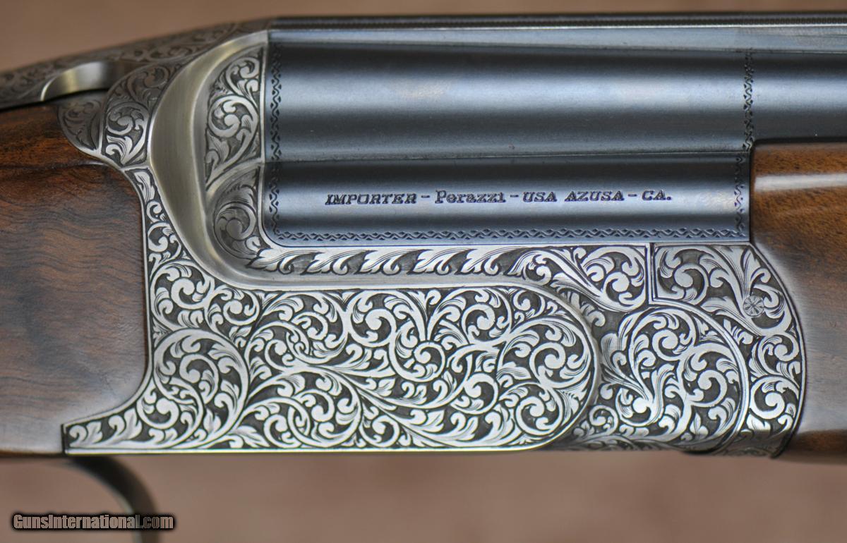 Description: As new Perazzi MX8 SC3 12GA 31 1/2" factory extended choke tubed barrel. 11x7 flat tapered tramline rib. 18.7 bore, barrel weight is 1.66kg. Coin finished No. 101 Pattern, fully hand engraved with deep scrolling by the masters at Creative Arts. Selective removable trigger group. Outstanding SC3 grade adj. comb pistol grip stock and rounded sporting forend. Stock dimensions are 1 1/2", 2 1/4" with a LOP of 14 1/2". Little to no handling marks of any kind and no wear of the bluing, outstanding overall condition. Comes with factory Perazzi hard case, chokes(7) and tools. This gun is located at our NEW Michigan location at 8585 PGA Drive, Suite 104. Walled Lake, MI 48390. 248-960-7262. Refer to 226. SOLD |