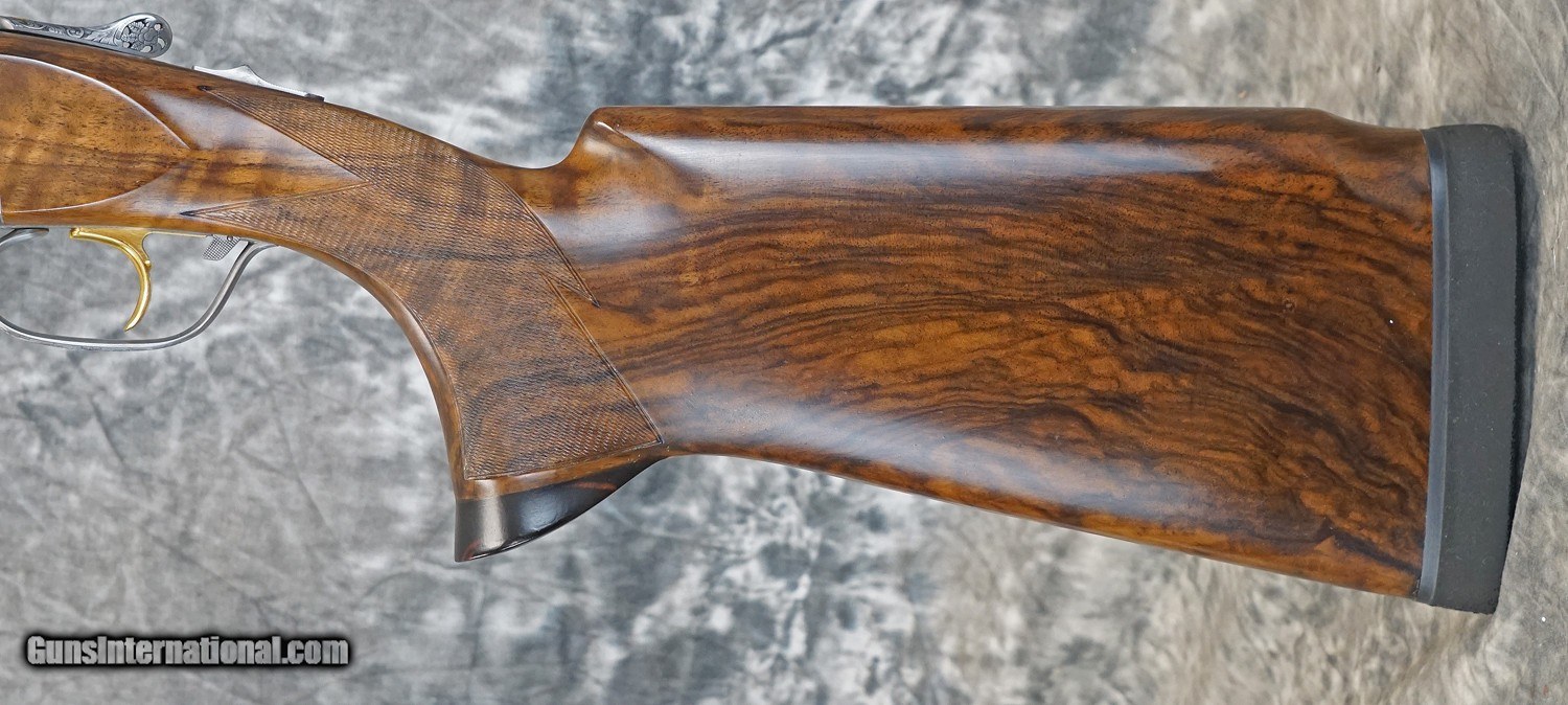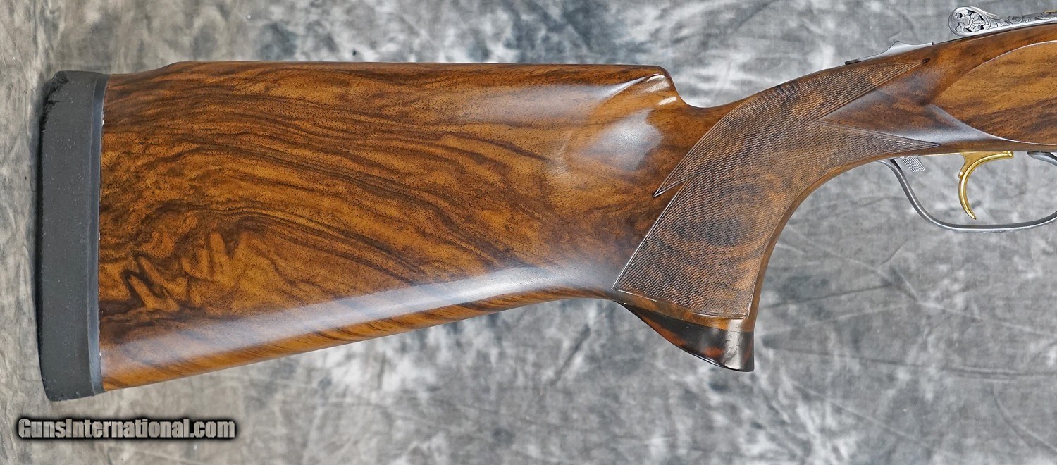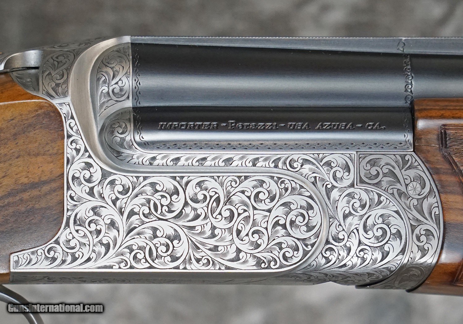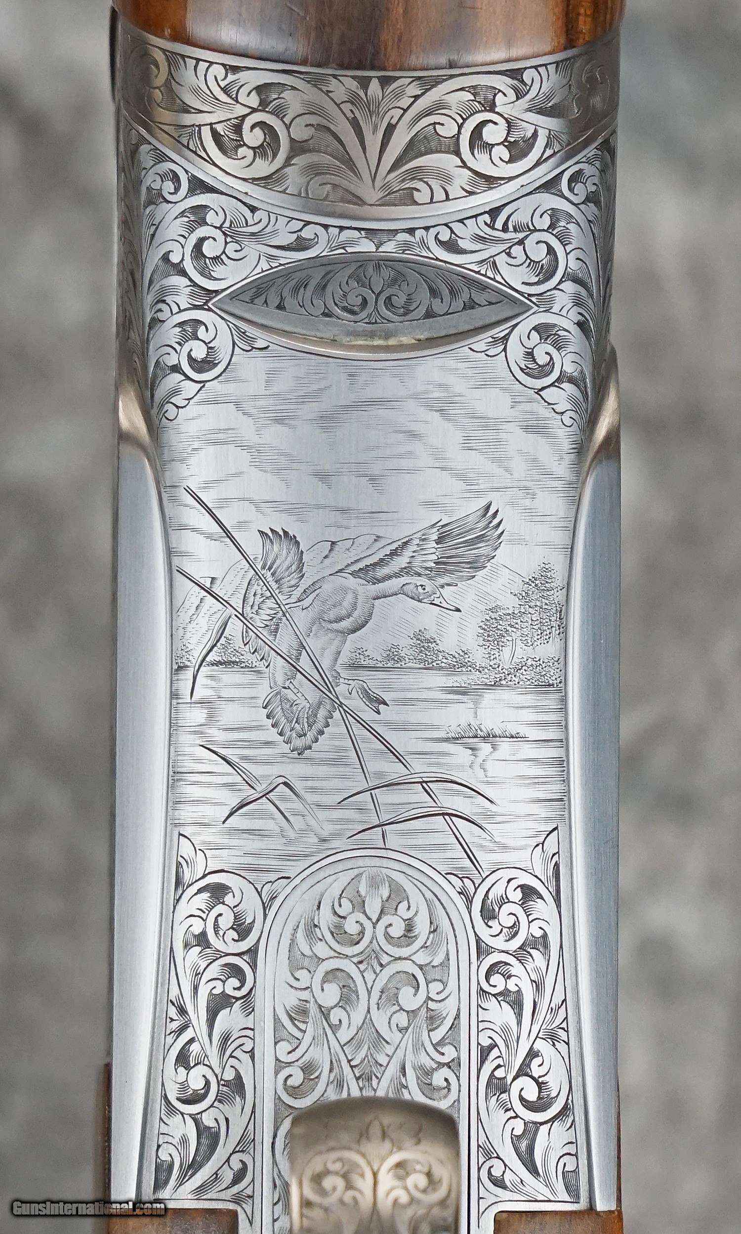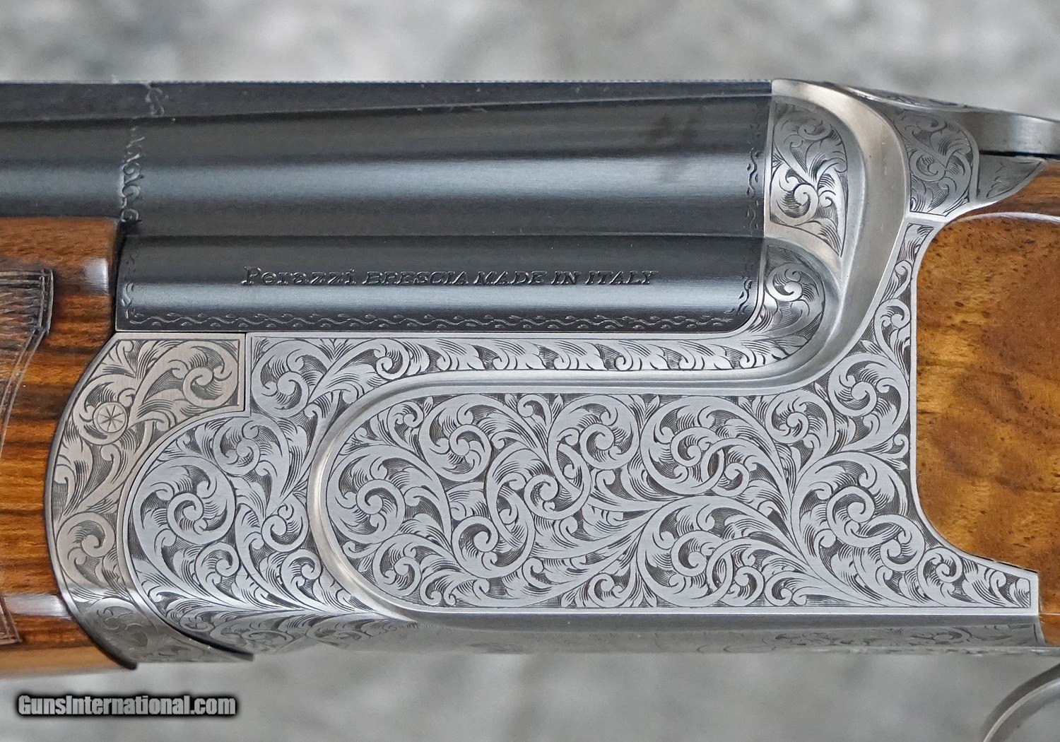 Description: Pre-Owned Perazzi MX8 SC3 Four Barrel Sporting 12GA 20GA 28GA & .410 Bore, 32" barrels with factory removable choke tubes, 11x7 flat-tapered tramline ribs and ventilated side-ribs, individual English sporting forearms with irons. Coin finished SC3 grade action, fully hand engraved scrolls and game scene on bottom of action by Patelli. Factory removable, flat spring selective trigger with pierced top-lever and gold crown. Factory Monte Carlo pistol grip sporting stock with right-hand palmswell, aftermarket ebonized grip cap to original factory recoil pad. Outstanding overall condition, only minor handling marks and very minor finish wear. Includes factory case, chokes and tools. Consignment, ineligible for trade-ins. SOLD Shotgun Gauge: 12 Gauge, 20 Gauge, 28 Gauge, .410 Gauge |