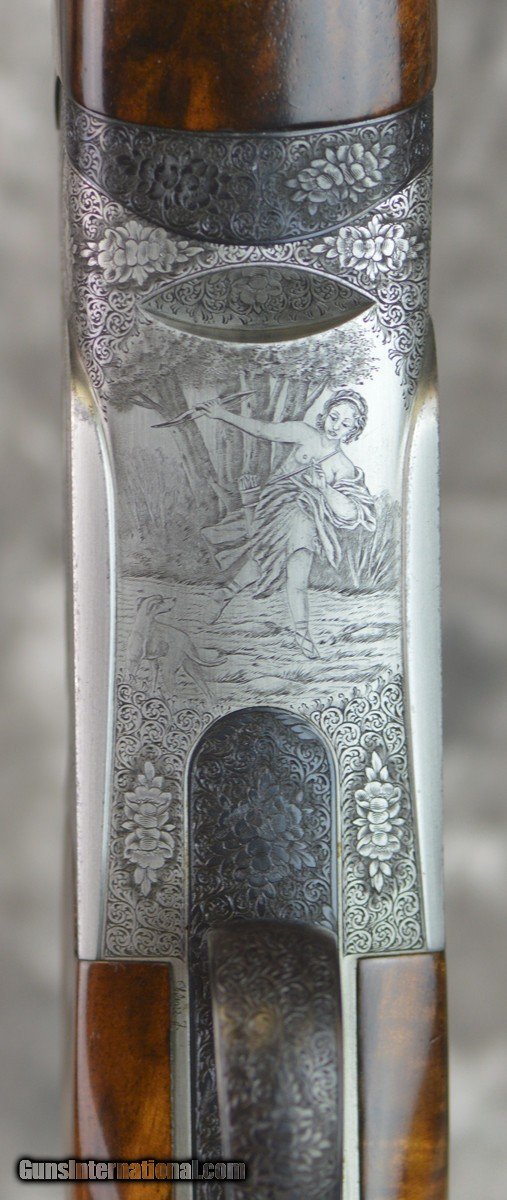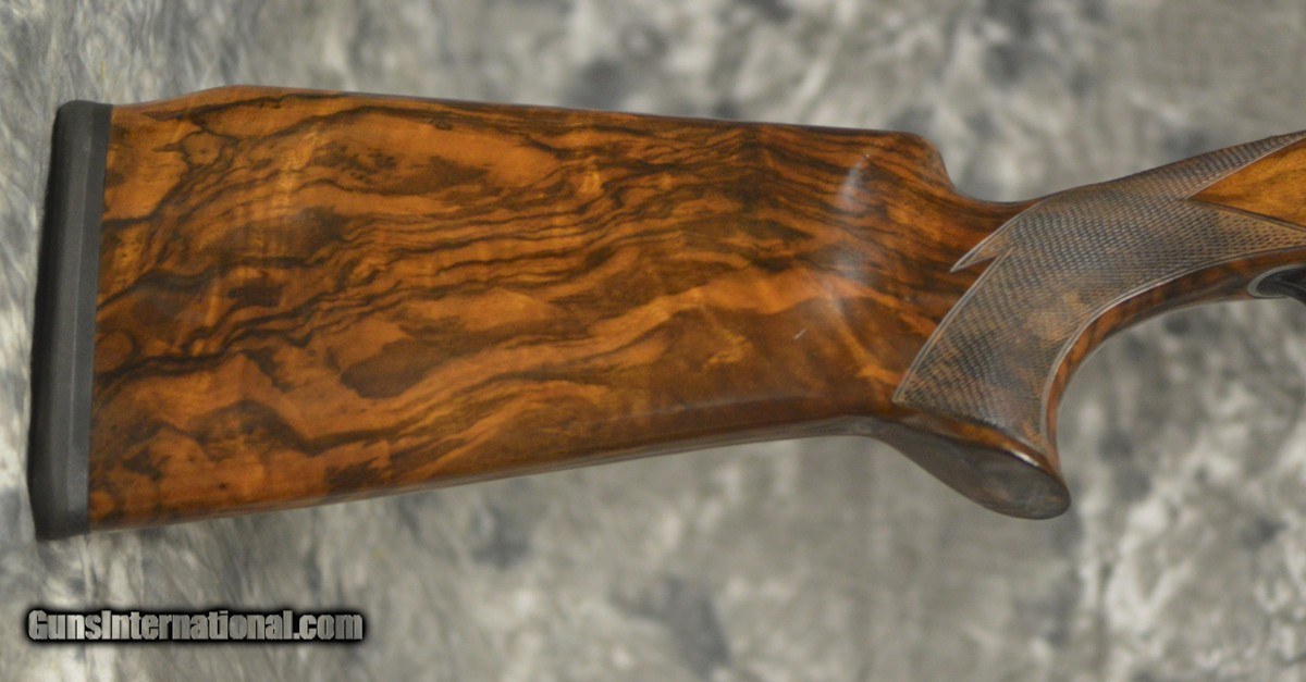 Description: Pre-Owned Perazzi MX8 Pigeon Combo 12GA with 29 1/2" 2mm stepped rib barrels, factory choke tubed bottom barrel, fixed (Full) choke top barrel (both barrels); 18.4 mm bores, 11x11 parallel ribs; Briley ported. Coin finished SCO Grade receiver featuring outstanding Diana Goddess of the Hunt engraving by Fausti Galaezzi. Factory Monte Carlo stock and schnabel forearm. Minor handling marks, overall excellent condition. Includes factory case, chokes and tools. Consignment, ineligible for trade-in. SOLD |