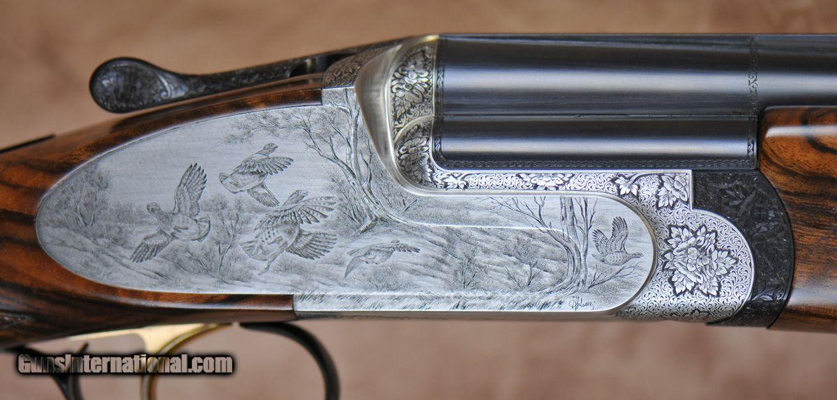 Description: Perazzi MX8 SCO Side-Plate Game Gun with 30" Teague choke barrels (IC/MOD). 1.450 kg/ 18.5 bore. 7mm vented game rib. Remove able (gold plated inards) trigger with flat springs. Coin finished side- plate action with fully hand engraved game scenes by Master Engraver Angelo Galeazzi. Exhibition grade field stock with straight grip. Stock dimensions are: 1 7/16' x 2 ". LOP 14 3/8". Over all weight 7 lbs 6 oz. Imported from England and is in unfired condition. Factory leather case included.Contact our Michigan location at 248-960-7262 for additional information. Refer to (440) SOLD Serial Number: 117440 |