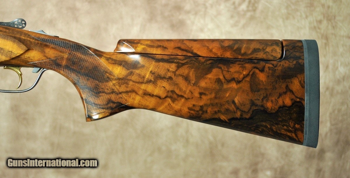Description: Pre owned in ” Like New ” condition Perazzi MX8 SCO 12 gauge. Features #25 pattern by Creative Arts, drop out trigger with barrel selector. 32″ factory C/T barrels with (7) chokes. 1.670KG / 18.7 bore, 11 mm x 7 mm flat tapered, tram line rib. SCO Sporting stock with adjustable comb. Stock dimensions are: 1 1/2″ x 2 1/4″. Lop 14 3/4″.Factory Leather case included. SOLD |