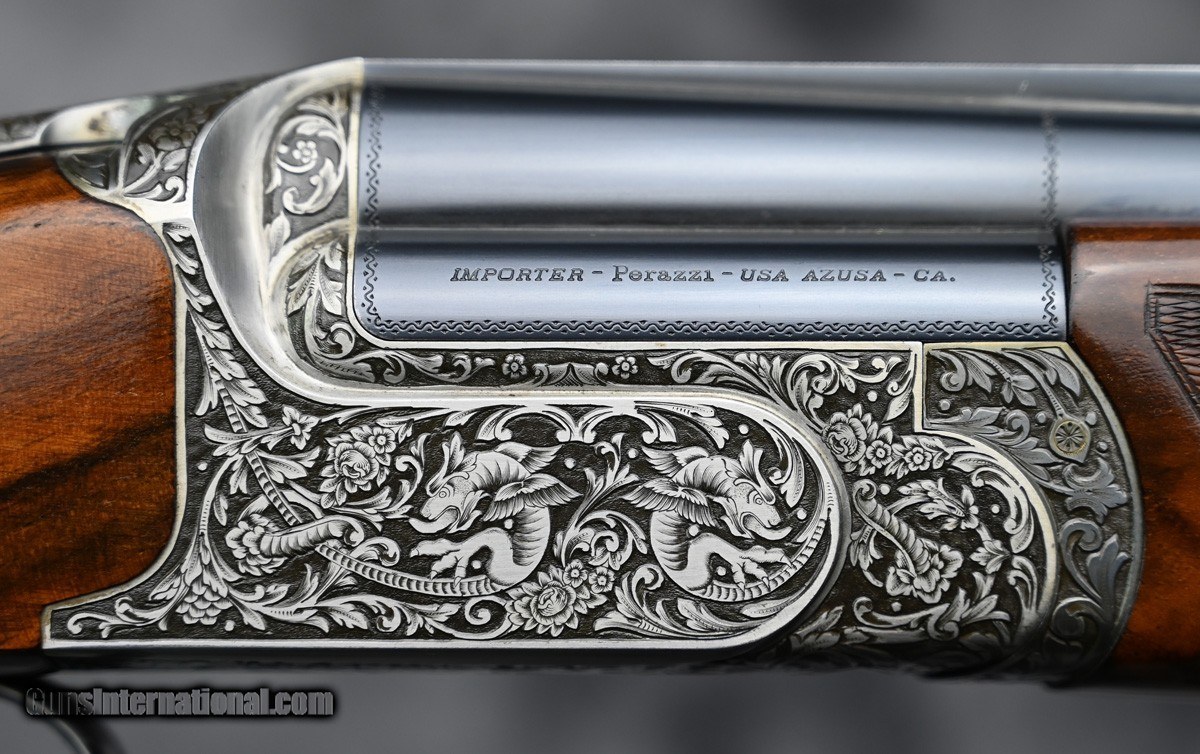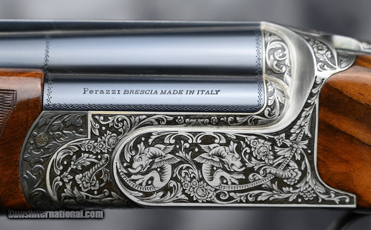 Description: Pre-owned, in very good condition, Perazzi MX8 SCO Sporting 12ga. Features fixed choke improved modified and improved modified 34" barrels with flat tramline rib. Engraved receiver with removable trigger featuring deep scroll patterns with mythic creatures hand engraved by Italian master engravers at Creative Arts. Outstanding right hand Sporting stock with fully checkered Euro Sporting forend. Comes in factory case. CONSIGNMENT, ineligible for trades. Pacific Sporting Arms is the largest dealer in high grade shotguns in the world. SOLD Shotgun Gauge: 12 Gauge |