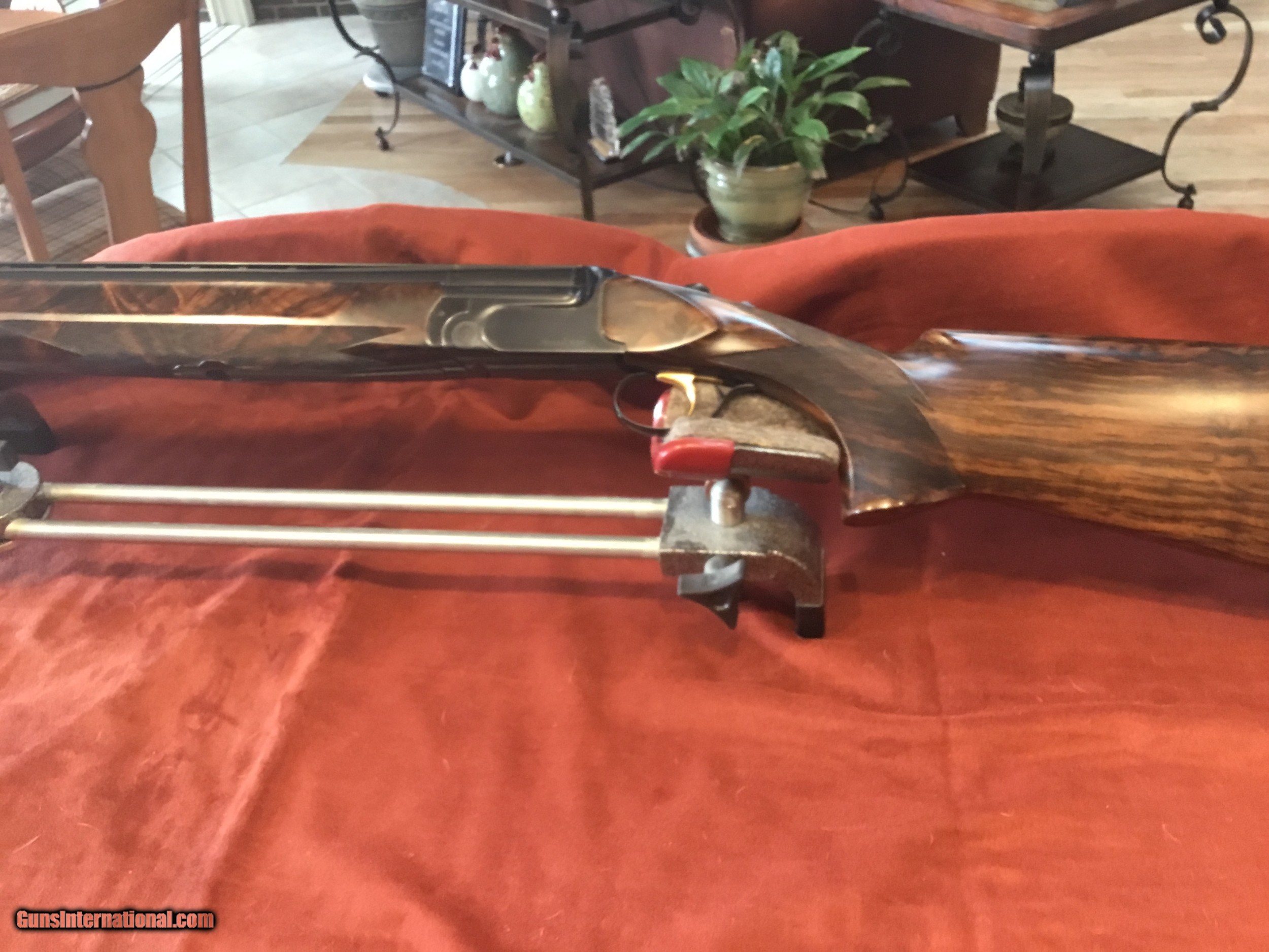 Description: Like new Perazzi MX8 sporting clays gun. 32" fixed chokes (.022 and .022) 1590 kg. 18.7 bore. Upgraded SC3 wood. No nicks or scratches. Perfect bluing. Comes with a leather lined Perazzi hard case with stock wrench and trigger kit. All #'s match. SOLD Manufacturer: Perazzi Model: MX8 Serial Number: 139499 Caliber Info: 12 guage Bore: 18.7 Metal Condition: Excellent Wood Condition: Excellent Stock Comb: 1 3/8” Stock Heel: 1 7/8” Fore End: Slim beavertail LOP: 14 3/4” Chokes: Fixed Choke Left: .022 Choke Right: .022 |