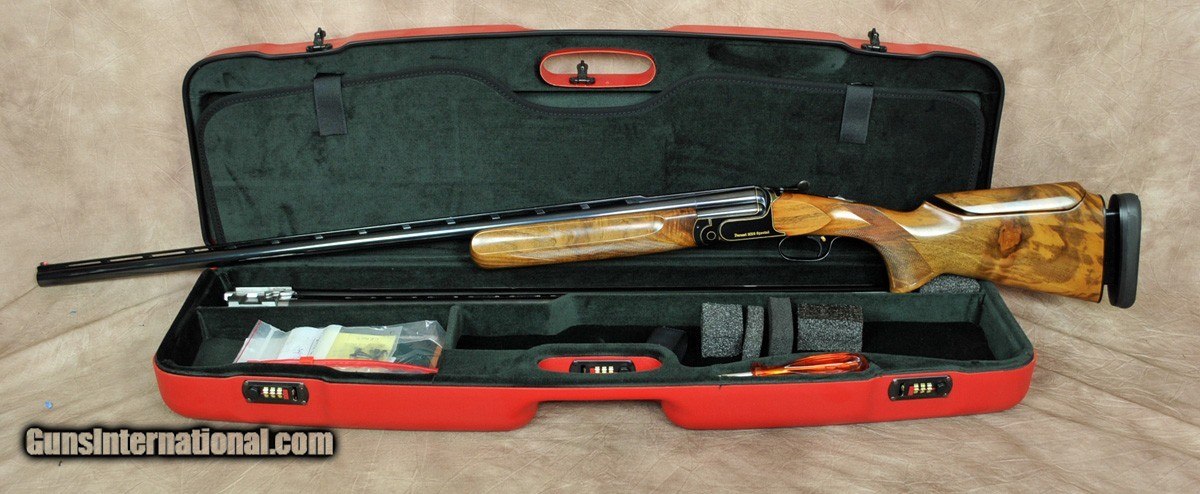 Description: Pre owned in EXCELLENT CONDITION Perazzi MX/8 Trap Combo. Features Funeral Gold Wire, Drop out trigger group with flat springs and adjustable trigger. In addition has release hooks. 32″ O/U barrel is fixed choke (IM/Full) 34″ unsingle is choked (full) WILKINSON TUNED CHOKES, BORE IS ORIGINAL. Pro soft stock with adjustable comb. Dimensions are: 1 1/2′ x 1 1/2″ x 2 1/2″. Case included SOLD |