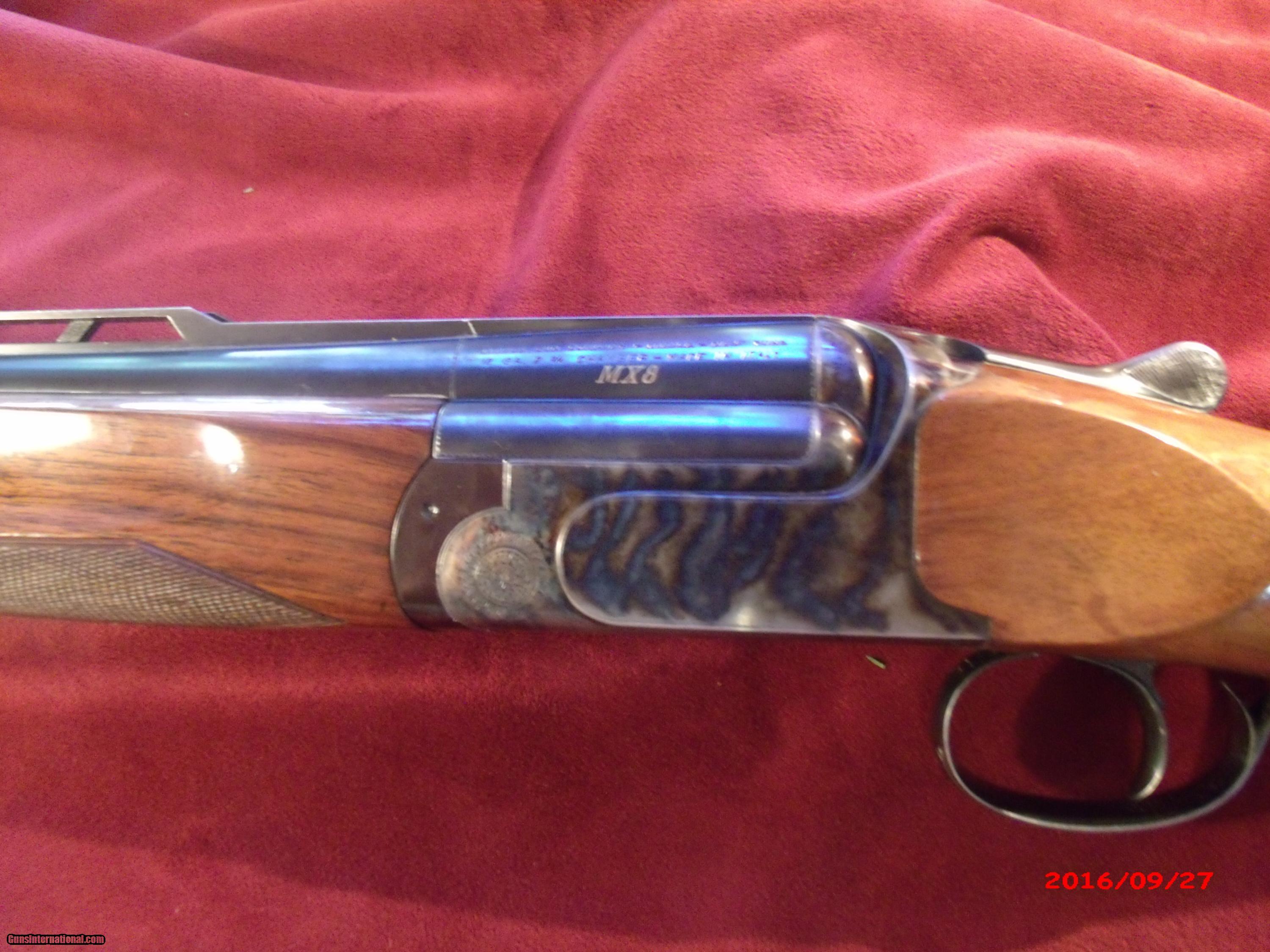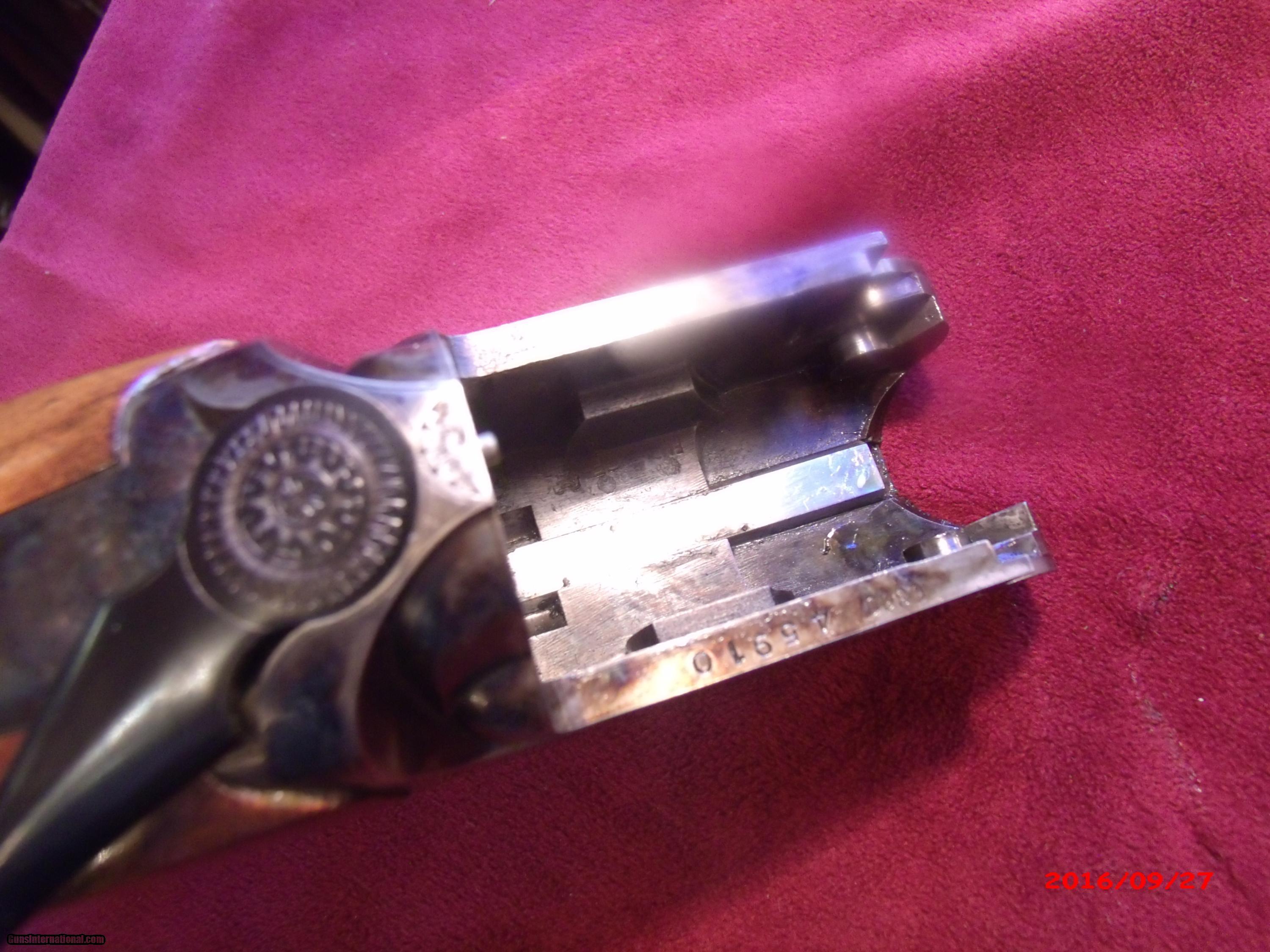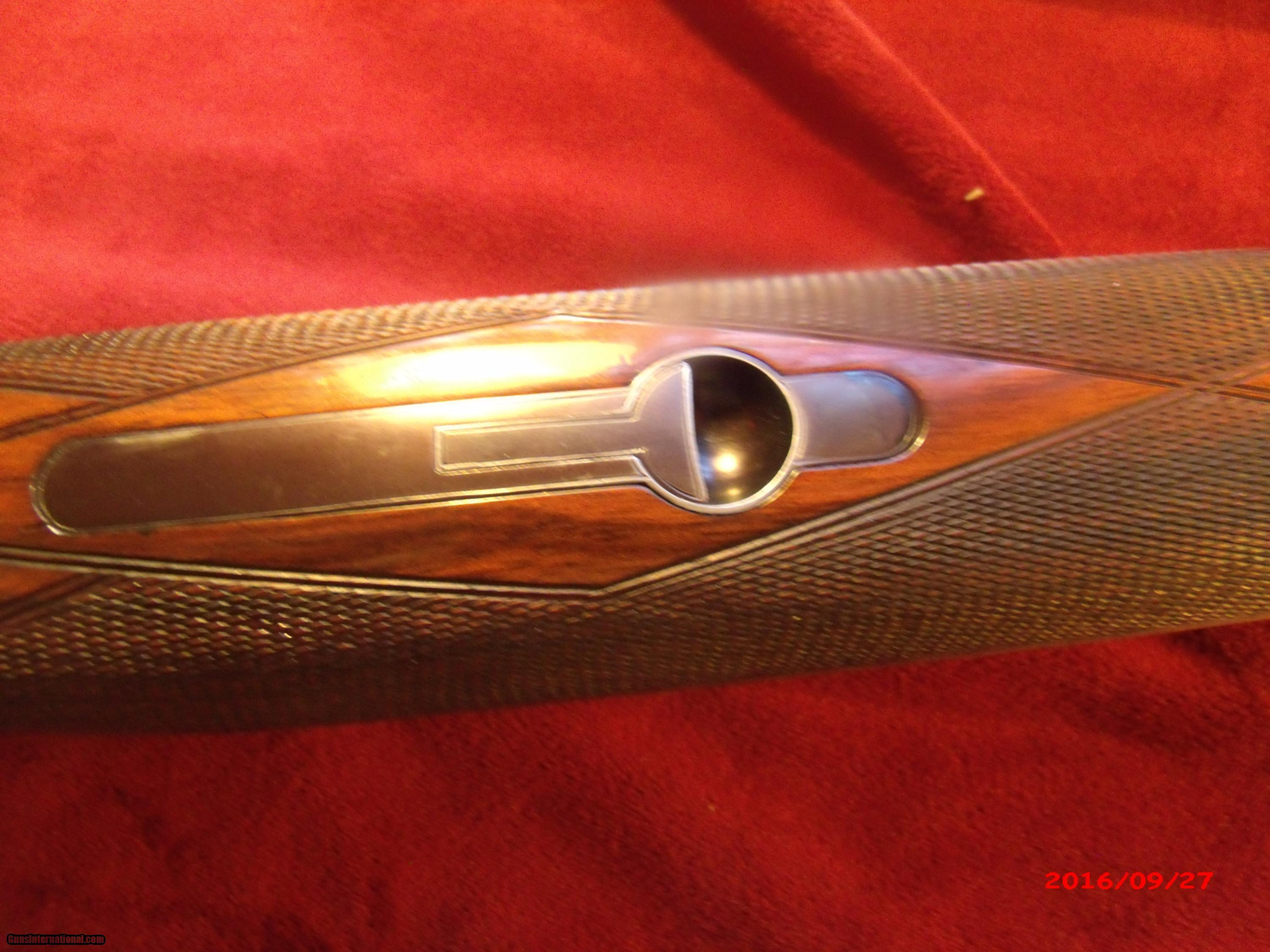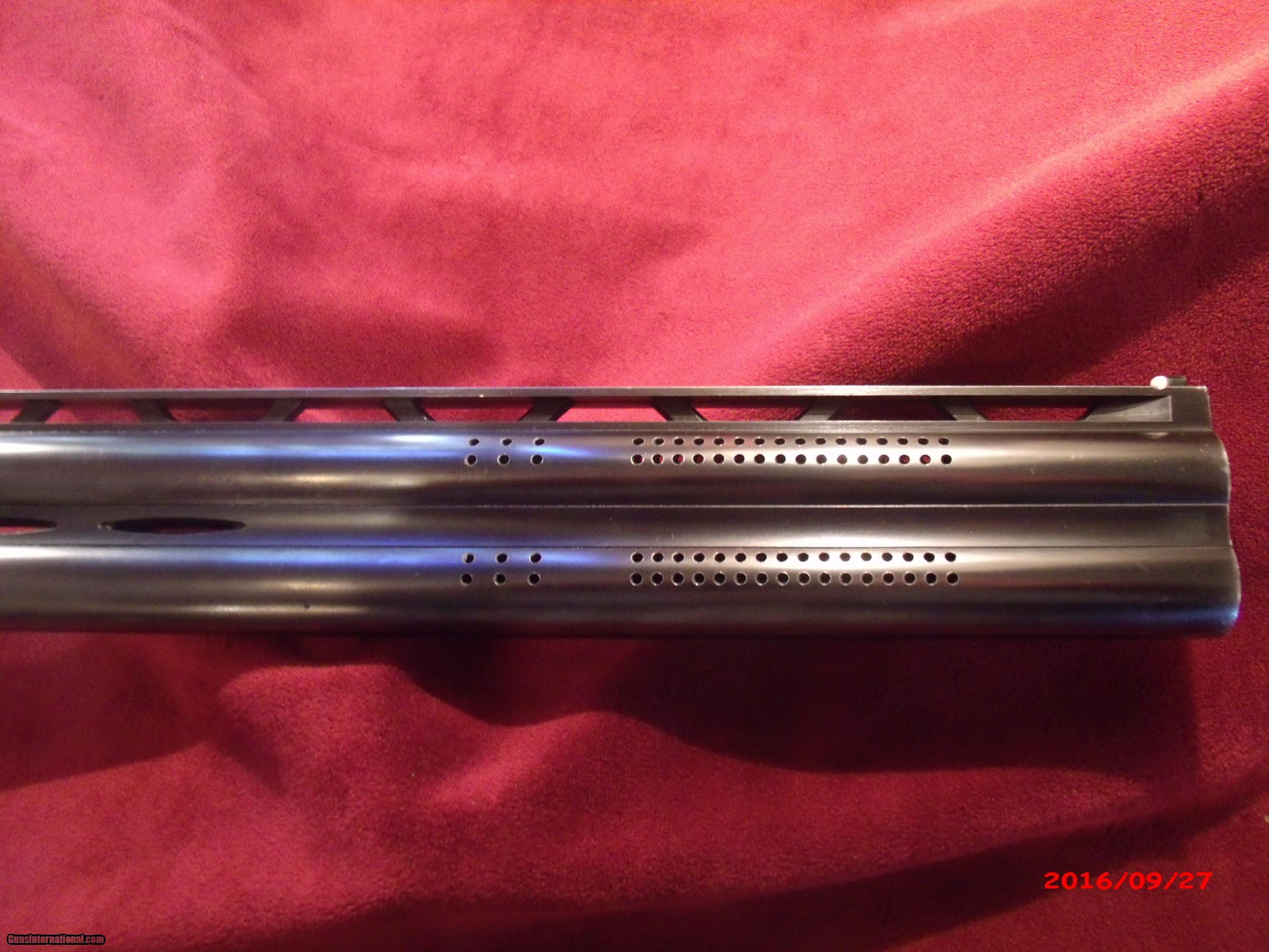 Description: Perazzi Trap. 12 ga. 31 7/8ths" magnaported barrells. Imported by Ithaca. High trap comb, grooved beavertail forearm. Kickeez pad. Double bead high vent rib. Detachable trigger group with leaf springs. Shows some signs of use, very small thumb print rust spot on underside of muzzle[see last photo]. Tight action with solid wood and most of its original case colors and blue. Beautiful high-figure varnished stock and forearm with sharp checkering intact. SOLD Manufacturer: Perazzi Model: MX8 Caliber Info: 12ga Chambers: 2 3/4 Ejectors: yes Condition: 95% Metal Condition: 94% Wood Condition: 96% Bore Condition: 99% Barrels: 31 7/8 Barrel Type: O/U Action: boxlock Triggers: Hand detachable Stock: trap Stock Comb: 1 7/16ths Stock Heel: 2 1/2 Stock Cast: no Butt Pad: soft rubber {KIKEEZ} LOP: 14 1/2 Rib: High vent trap Finish: varnish Chokes: 32 thsds 20thsds |