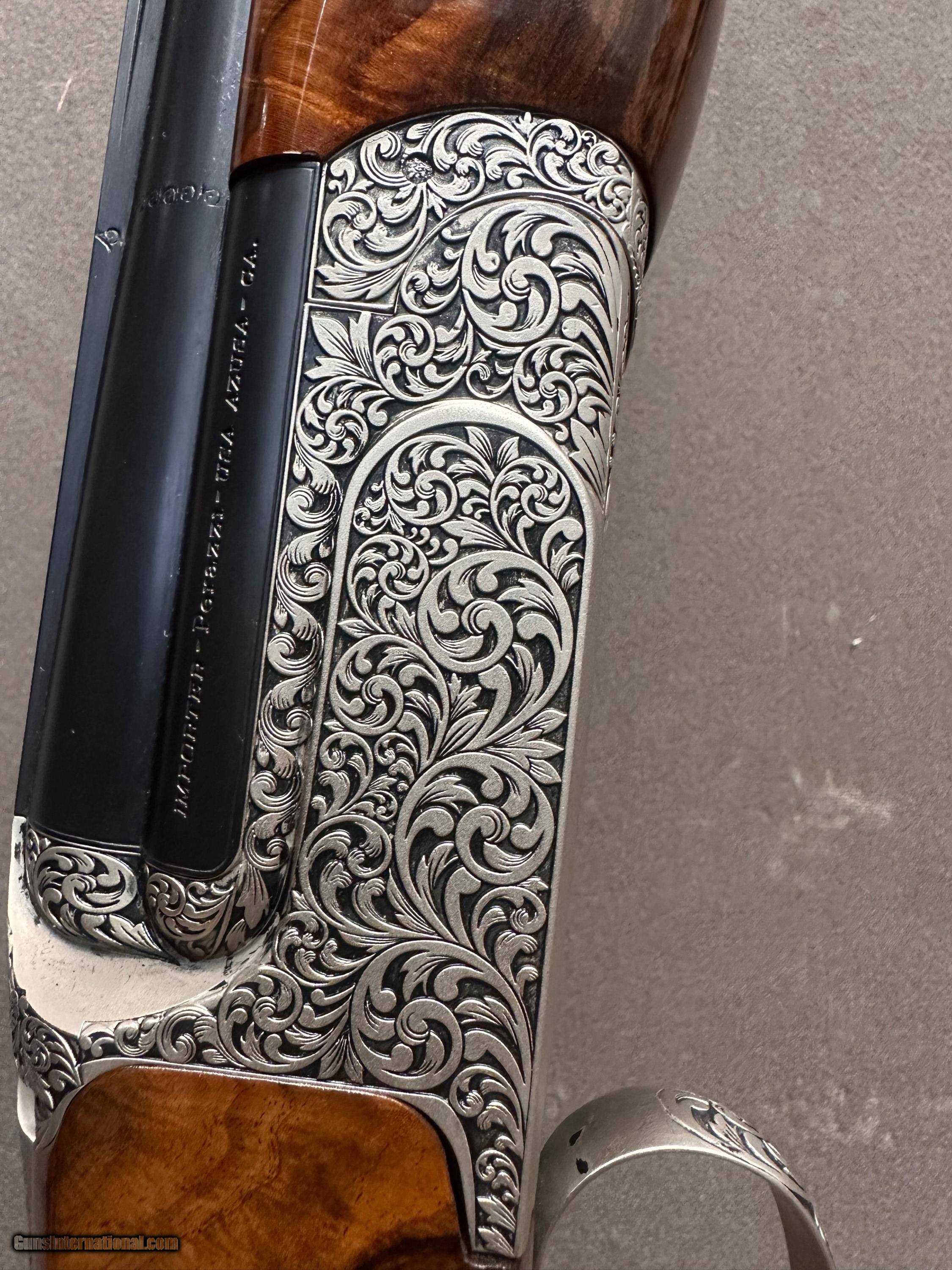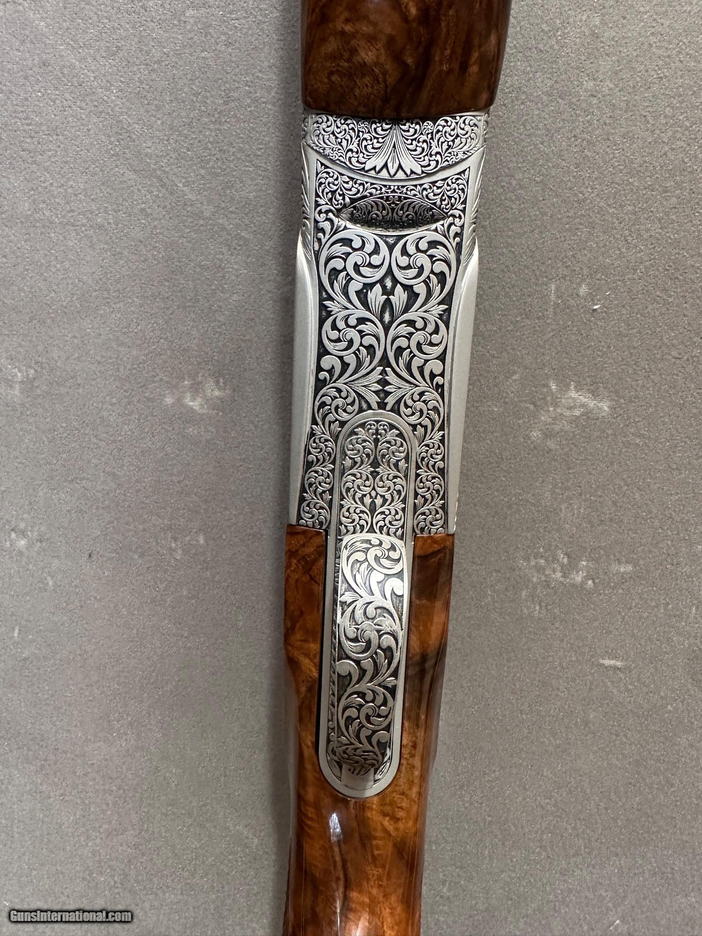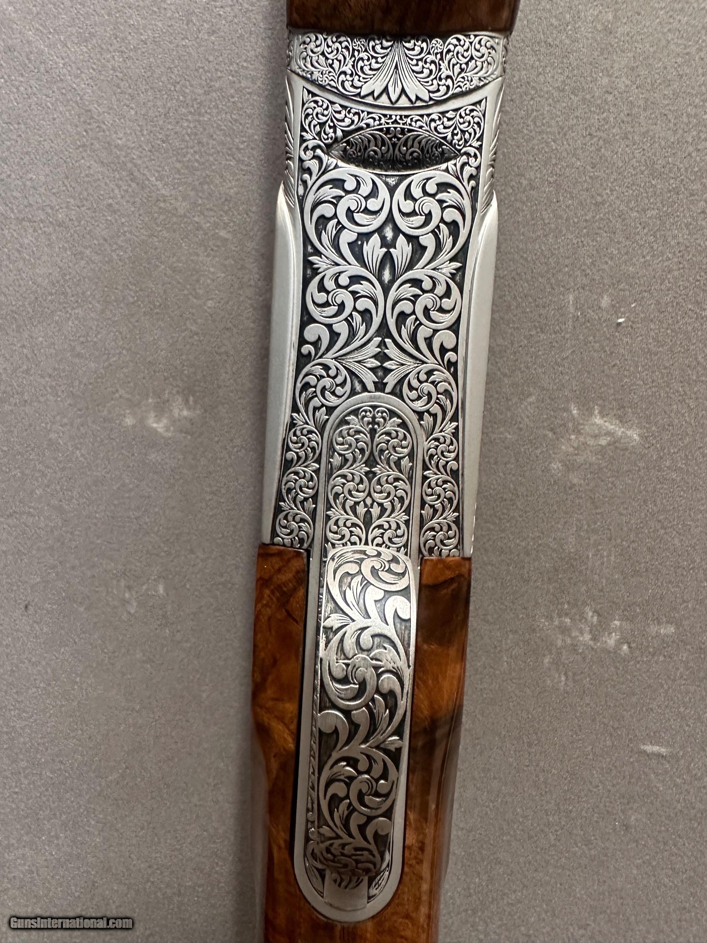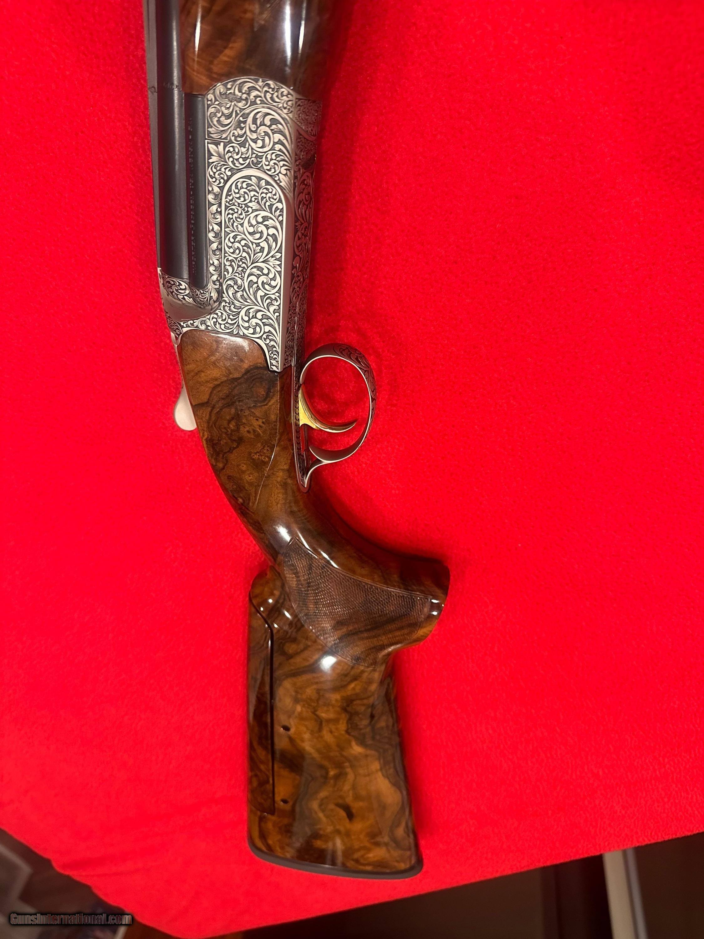 Description: Perazzi MX8 32" 12 gauge 32" flat rib with factory chokes 18.7 bore 142XXX serial number Laser engraved with beutiful scrolls Custom stock with a 15" Lop (can shorten) adjustable comb kick eez pad a scalop(weight reducer) has been shaped like a high tech 1.5 DAC 2.25 DAH 1/8 cast off palm swell DISCLAIMER This is not a factory engraved gun. This has been engraved aftermarket with a laser . This is not a perazzi pattern. This pattern is inspired by may examples of art work . NO TRADES SOLD Shotgun Gauge: 12 Gauge |