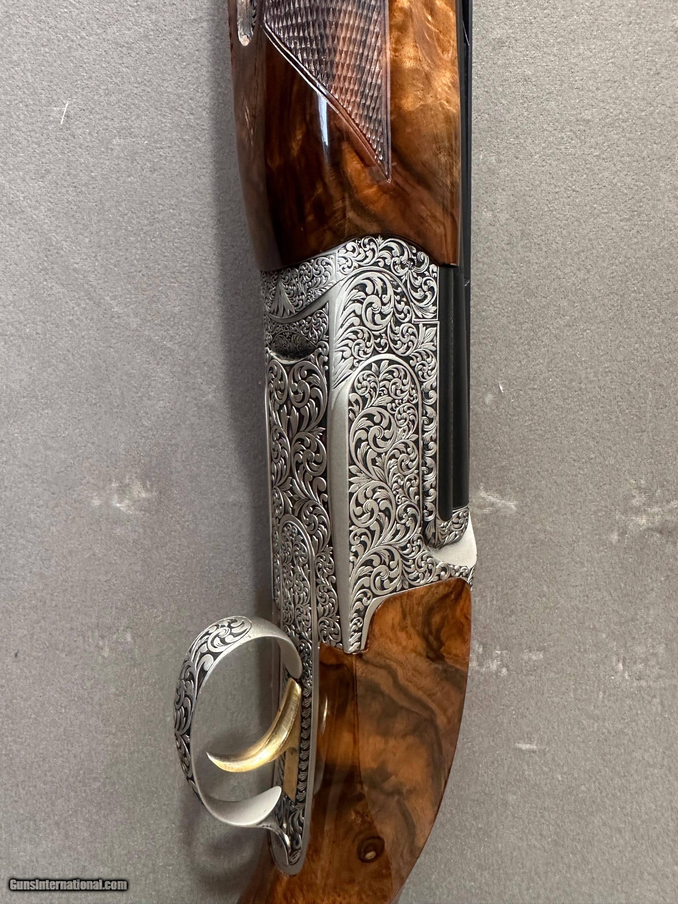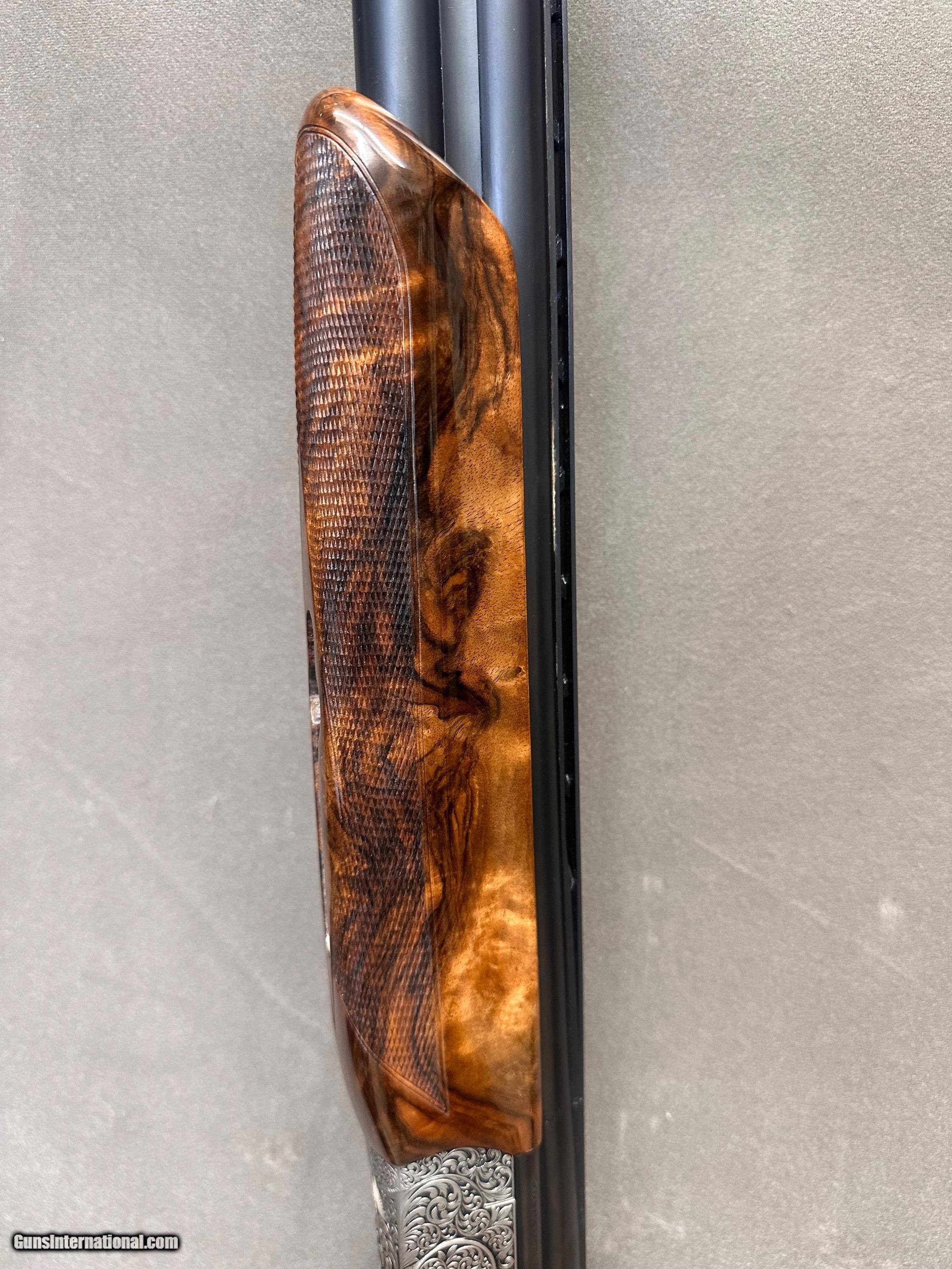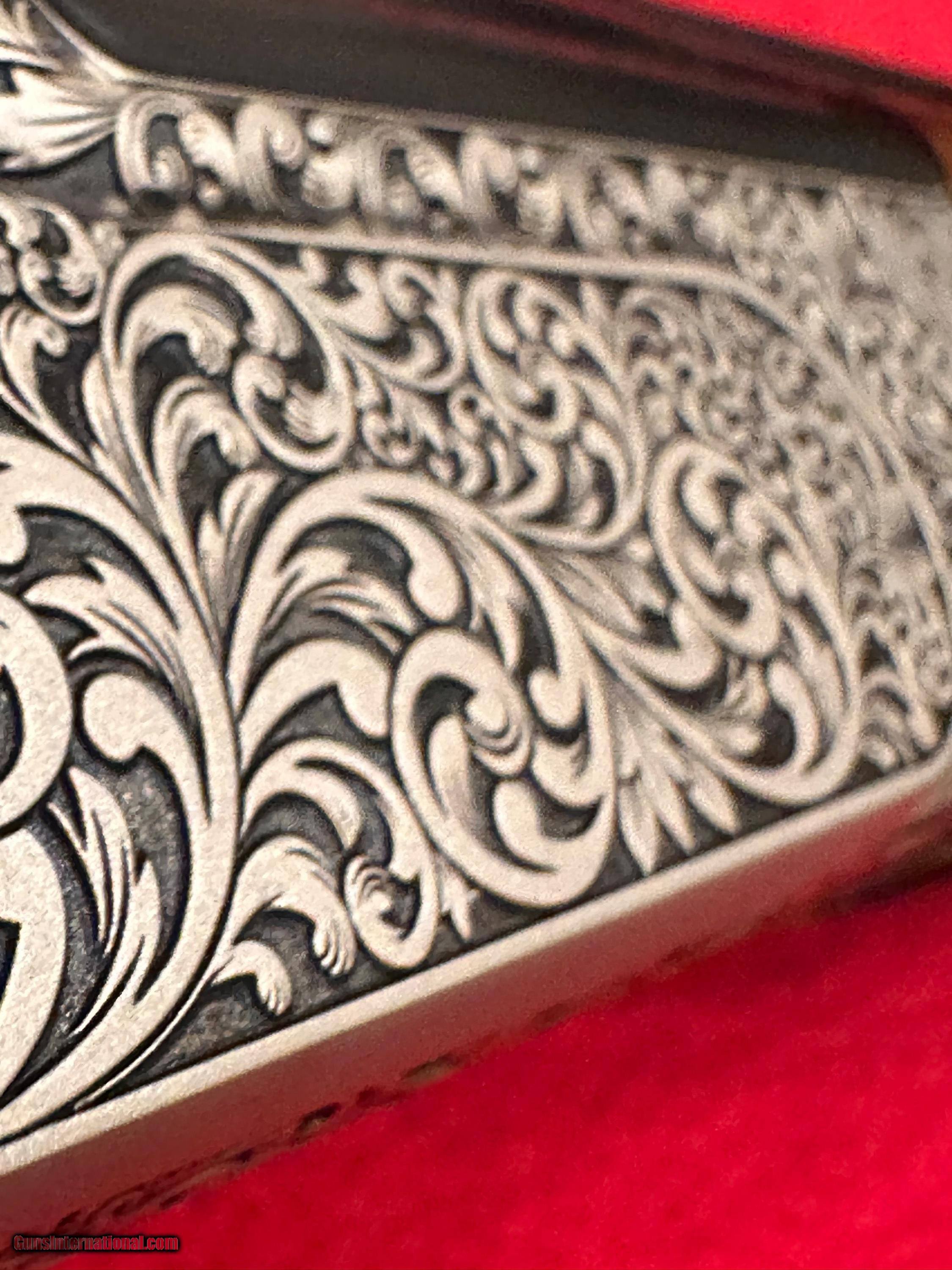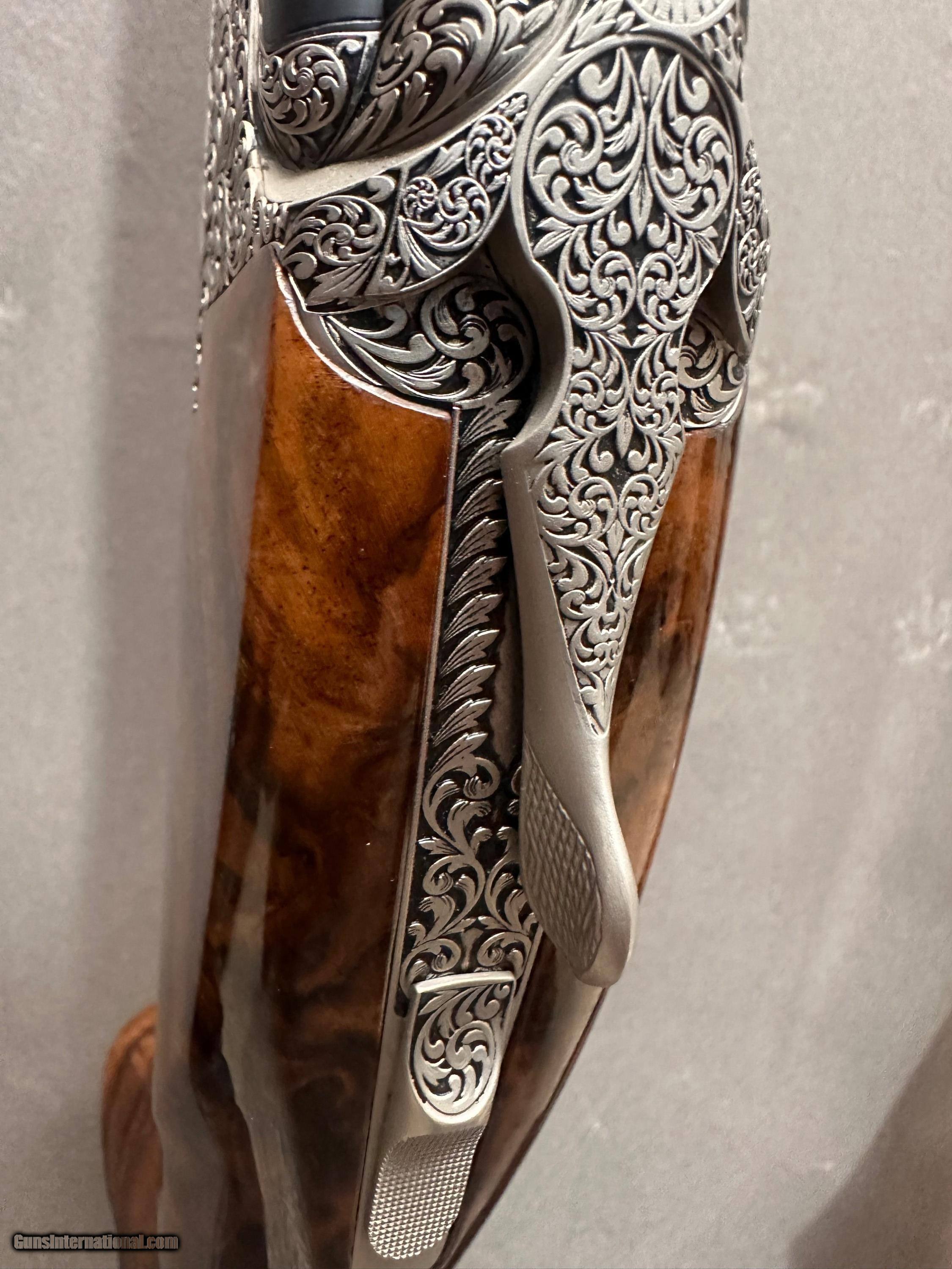 Description: Perazzi MX8 32" 12 gauge 32" flat rib with factory chokes 18.7 bore 142XXX serial number Laser engraved with beutiful scrolls Custom stock with a 15" Lop (can shorten) adjustable comb kick eez pad a scalop(weight reducer) has been shaped like a high tech 1.5 DAC 2.25 DAH 1/8 cast off palm swell DISCLAIMER This is not a factory engraved gun. This has been engraved aftermarket with a laser . This is not a perazzi pattern. This pattern is inspired by may examples of art work . NO TRADES SOLD Shotgun Gauge: 12 Gauge |