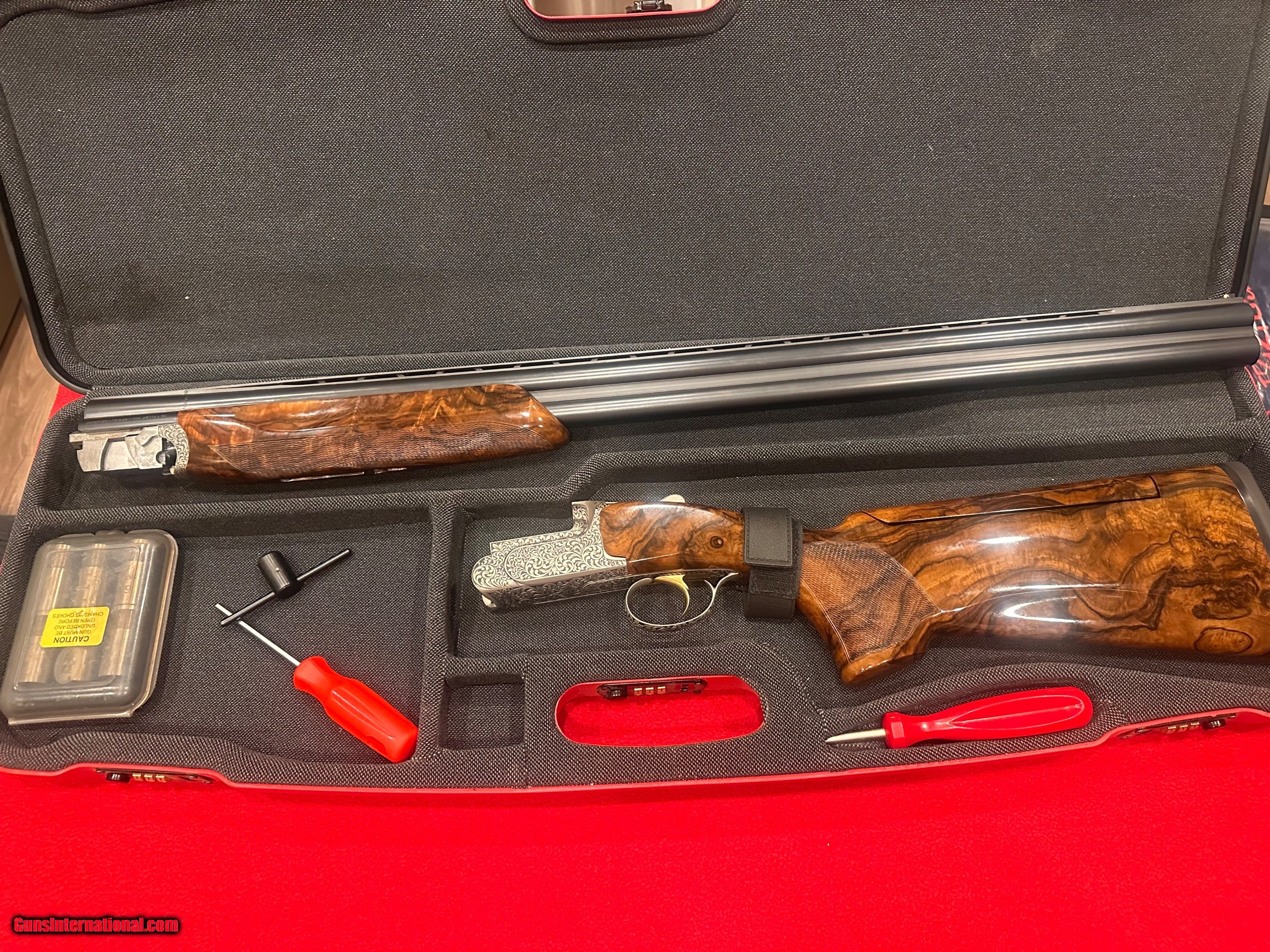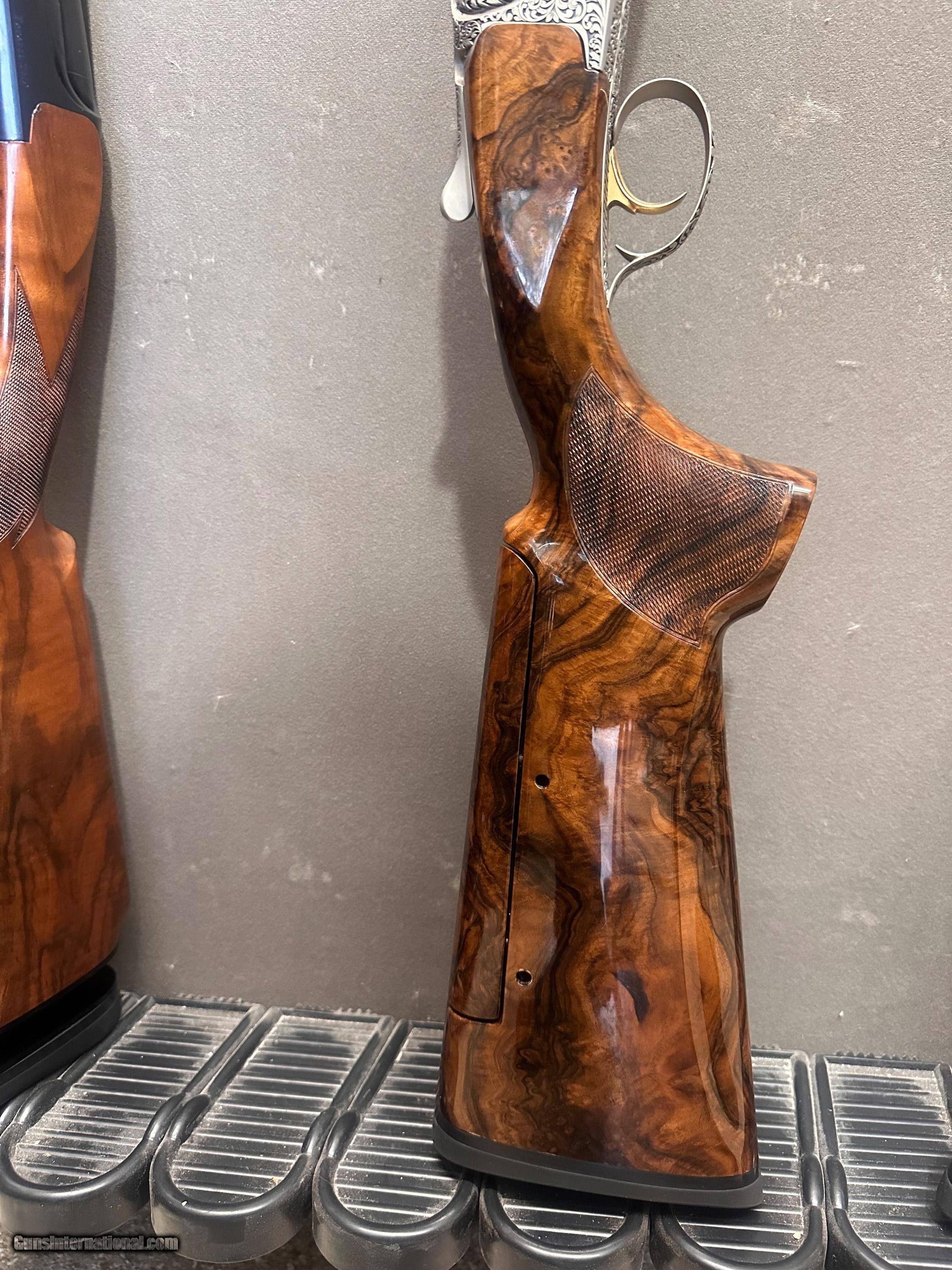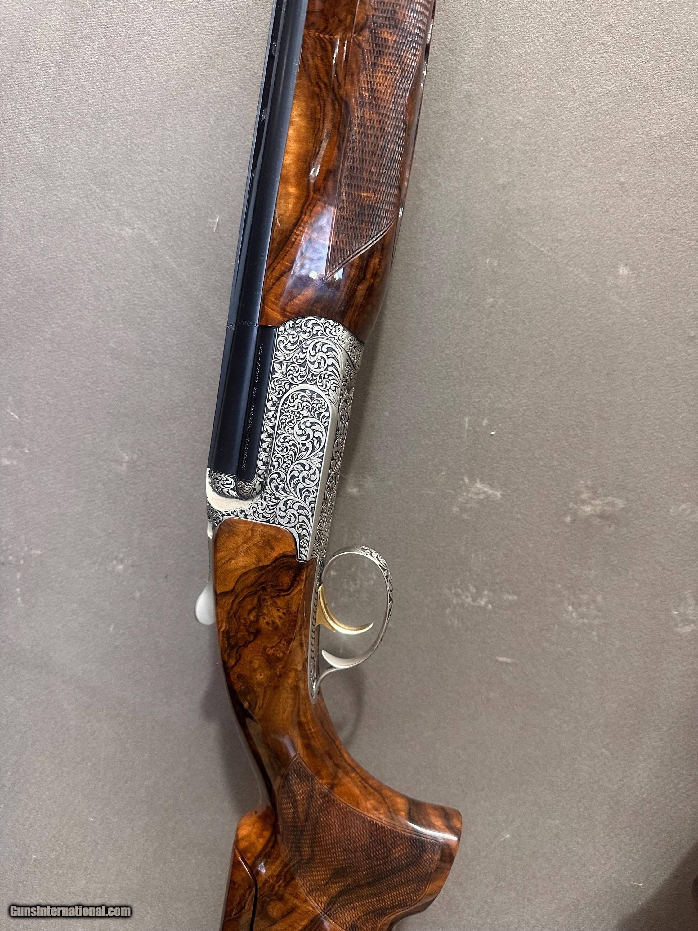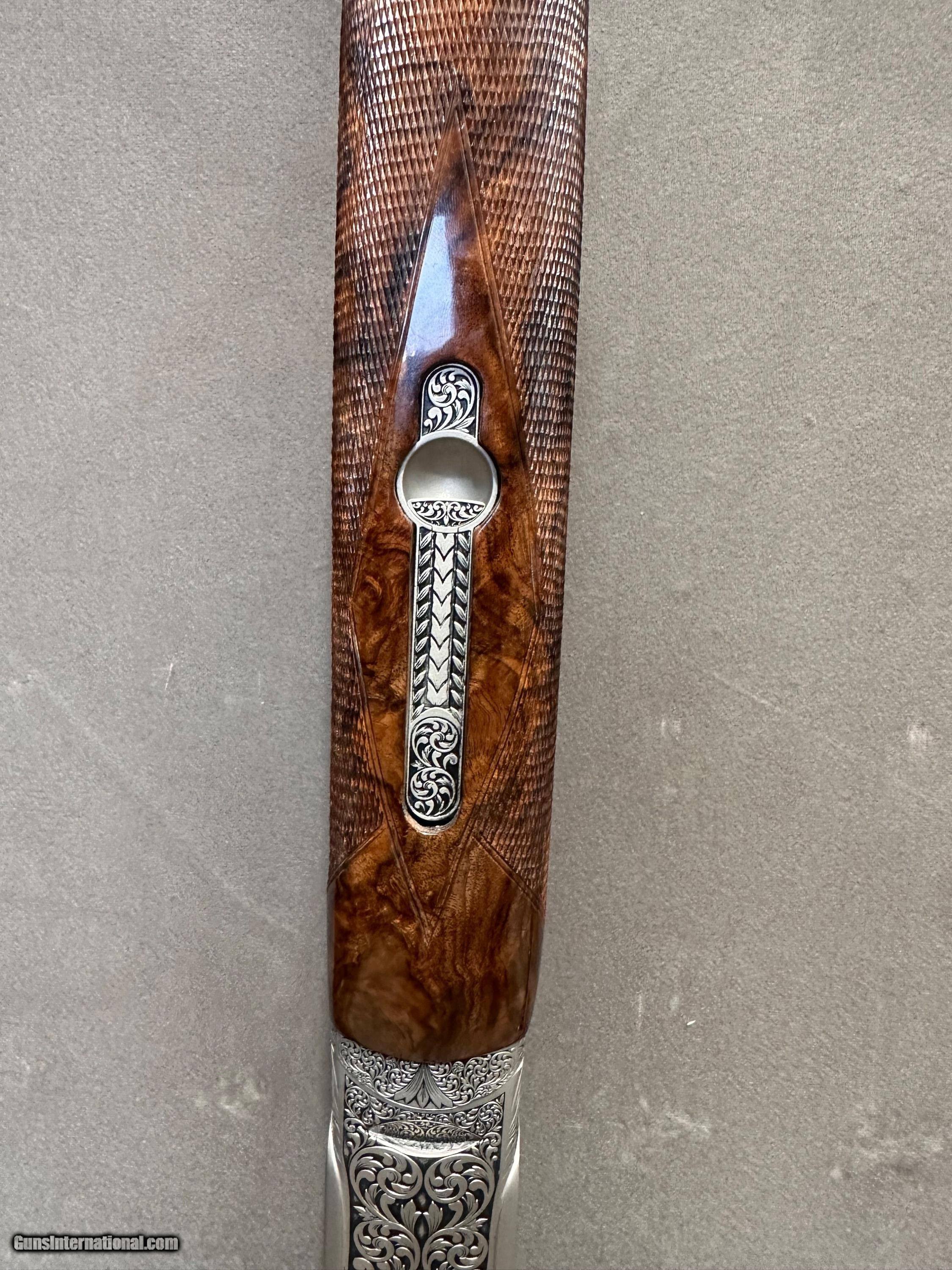 Description: Perazzi MX8 32" 12 gauge 32" flat rib with factory chokes 18.7 bore 142XXX serial number Laser engraved with beutiful scrolls Custom stock with a 15" Lop (can shorten) adjustable comb kick eez pad a scalop(weight reducer) has been shaped like a high tech 1.5 DAC 2.25 DAH 1/8 cast off palm swell DISCLAIMER This is not a factory engraved gun. This has been engraved aftermarket with a laser . This is not a perazzi pattern. This pattern is inspired by may examples of art work . NO TRADES SOLD Shotgun Gauge: 12 Gauge |