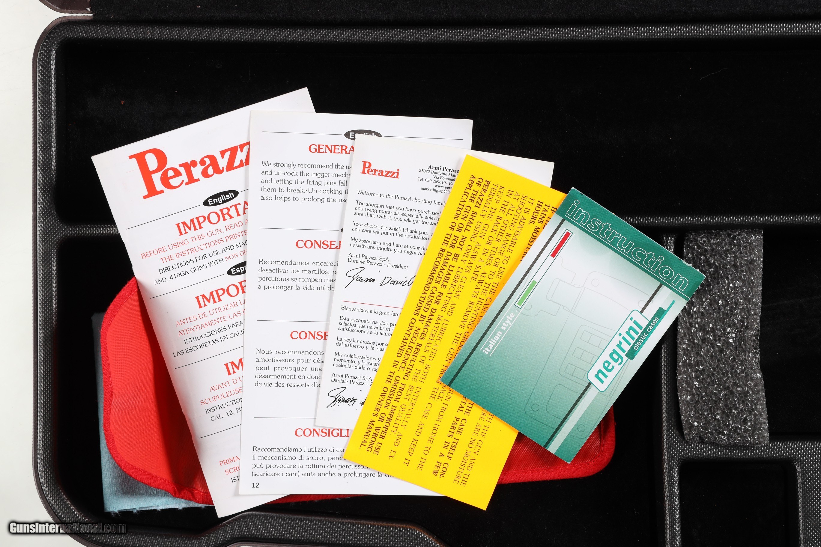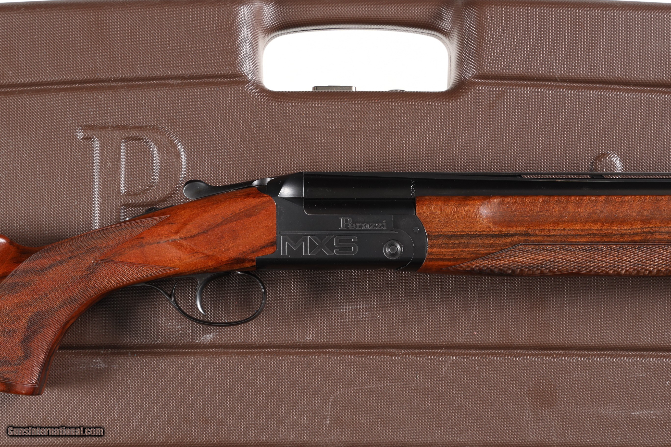 Description: 3" chambers, choked Imp Cyl/Imp Cyl, single selective trigger with ejectors and manual safety. Blue finish barrels with wide sporting rib, with blue finished receiver marked "Perazzi MXS" on both sides. Varnished walnut pistol grip stocks, LOP 15", DAC 1 1/2", DAH 2". Housed in factory luggage case. Excellent overall condition with minor handling, bright bores and excellent wood stocks, mechanically excellent, case is very fine. Mfg in 2014 SOLD Shotgun Gauge: 12 Gauge Manufacturer: Perazzi Model: MXS Serial Number: 152912 Barrel Length: 30 |