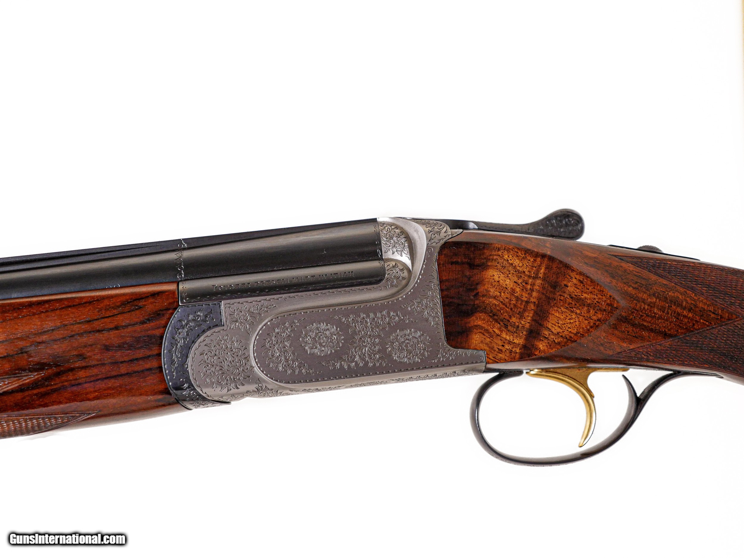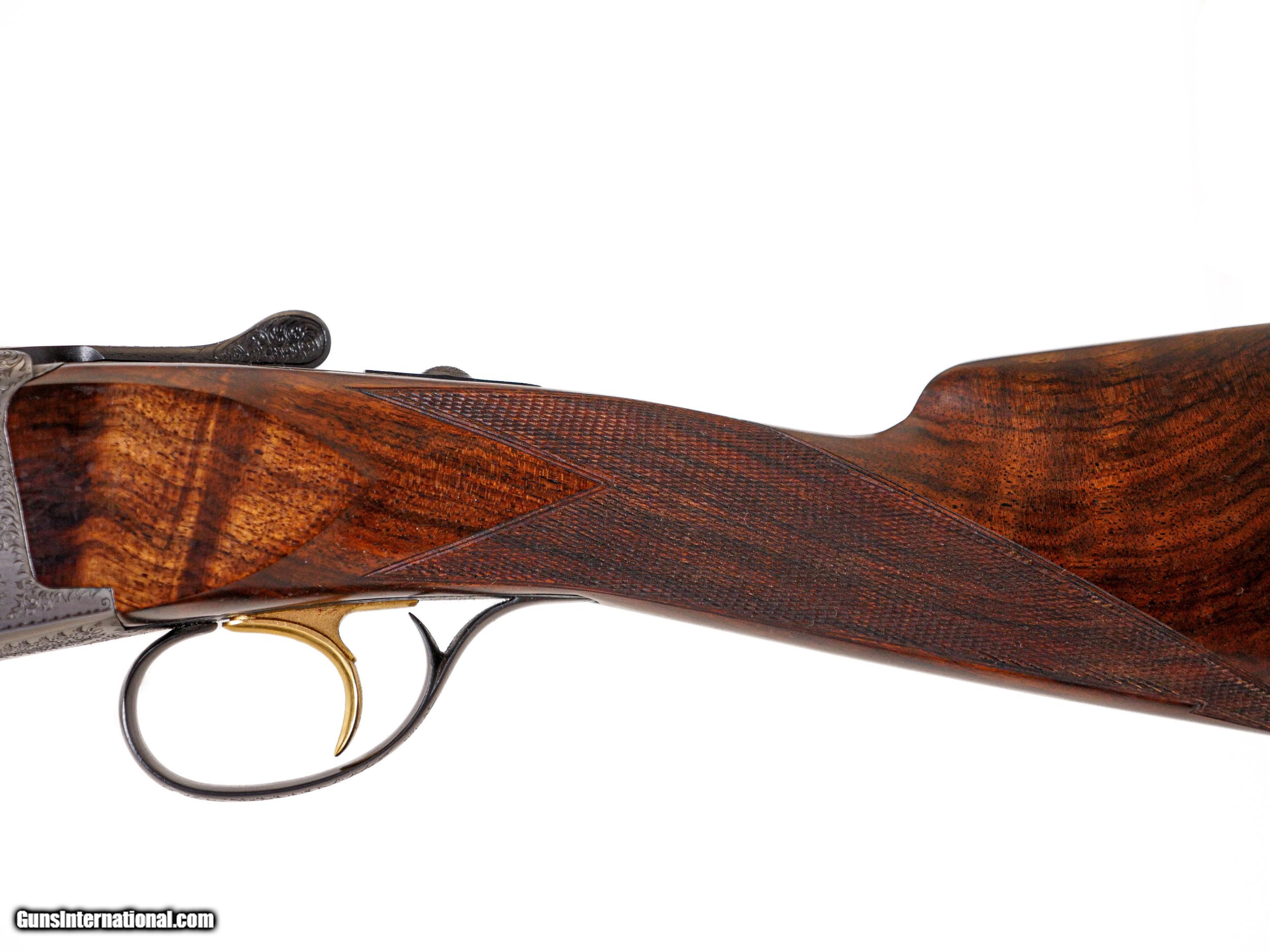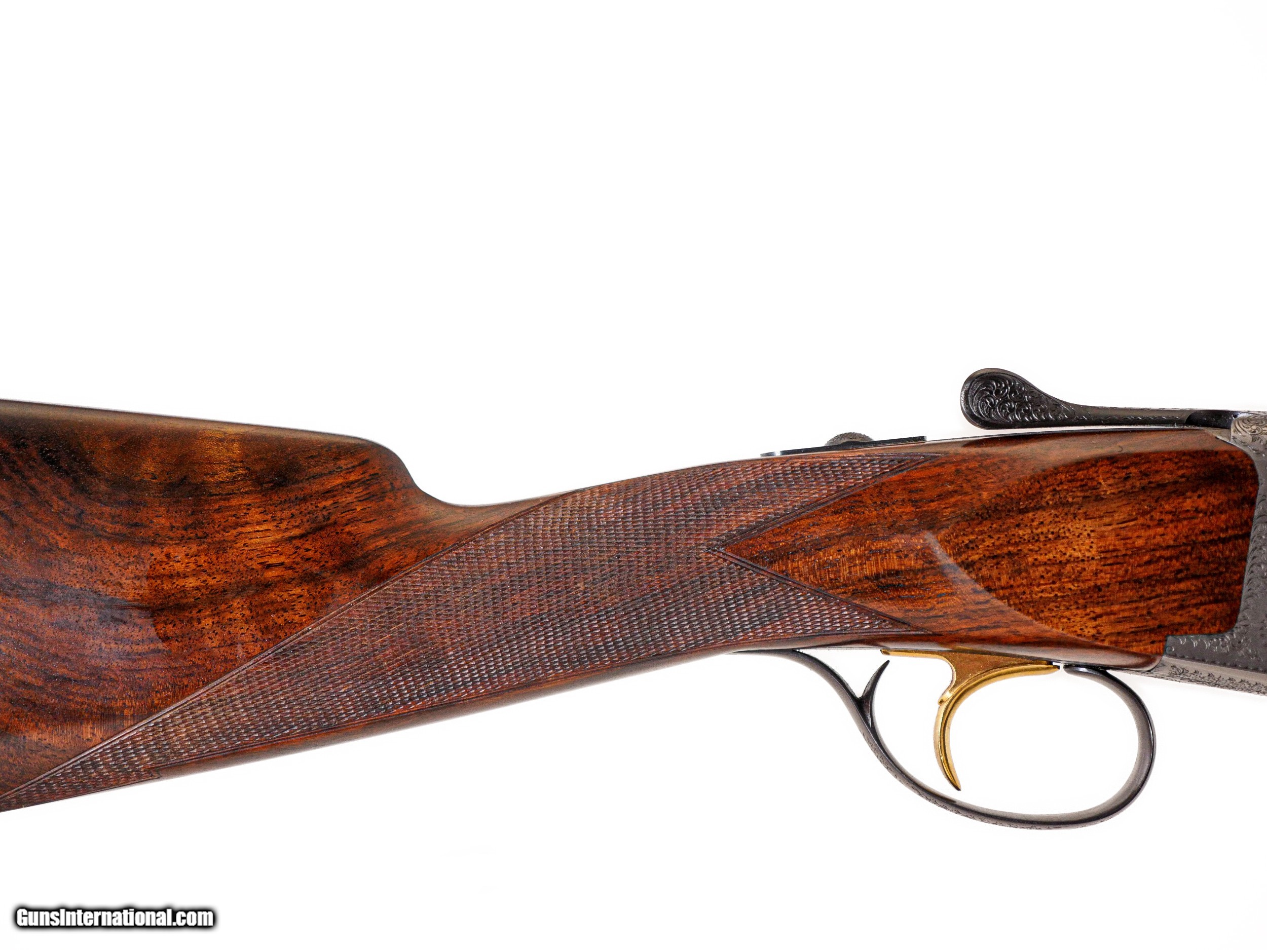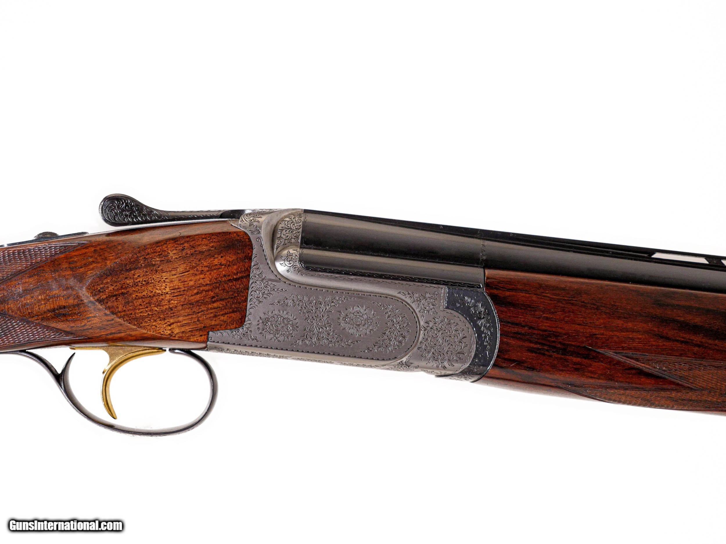 Description: Perazzi - SC3, 20ga. 26" Barrels Choked IC/M. Straight grip stock, checkered butt, vent rib, special small frame, beautifully English rose and scroll engraved, new and unfired in its Perazzi case, at $18,995.00 it is far below replacement cost as it is new, special offer by us. S&H - $50.00. Inv: 27416 6 lbs. 9 oz. 14 ¼" X 1 ½" X 2 ¼" $18,995.00 SOLD |