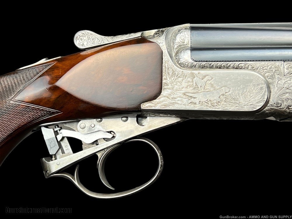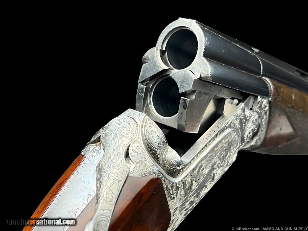 Description: PERAZZI SC3 GALEAZZI ENGRAVED 12 GA 29.5" ADJUSTABLE COMB - MOD/FULL - 1984 MANUFACTURER - PERAZZI - ITALY MODEL - SC3 ACTION - DETACHABLE TRIGGER GROUP W/ EJECTORS SN - 36609 BARREL LENGTH - 29.5" GAUGE - 12 GAUGE 2.75" CHOKED - MODIFIED .031" / FULL .036" CAPACITY – 2 DAC - ADJUSTABLE DAH - ADJUSTABLE LOP - 14.5" WEIGHT - 8 LB 1 OZ SIGHTS - 10.4mm GROOVED VENTILATED RIB WITH RED FIBER FRONT BEAD PRODUCED - 1984 Presenting the Perazzi SC3, a meticulously crafted shotgun from the renowned Perazzi workshop in Italy, known for their exceptional quality and precision in firearms manufacturing. This particular model, serial number 36609, was produced in 1984 and is a true masterpiece, both in form and function. It features a 12 gauge 2.75" chamber with 29.5" ventilated barrels, choked Modified (.031") and Full (.036"), ideal for a range of shooting disciplines from hunting to competitive shooting. The gun's detachable trigger group with ejectors ensures reliability and ease of maintenance, while the adjustable comb and neoprene pad for recoil offer a customizable and comfortable shooting experience. The stock, made from beautiful European walnut, showcases strong checkering on the Perazzi-style pistol grip and forend, though with some wear typical of age and use. The stock is finished with a black recoil butt pad, adding to its practicality and user comfort. This Perazzi SC3 is adorned with exquisite engraving by the famed master engraver Galeazzi. The left side of the action depicts three hunting dogs on point at quail in a detailed game scene, while the bottom showcases flying ducks in a marshland setting. The right side features two hunting dogs on point after a flush of upland birds. The rest of the action is covered with intricate scroll engraving, and the work is signed "Inc. Galeazzi" on the bottom of the action, a signature of its authenticity and exceptional craftsmanship. Galeazzi is known to be one of the best engravers! In good overall condition, this shotgun shows light wear consistent with its age and careful use. The bores are clear, the ejectors are strong, and the trigger is crisp, ensuring that the gun performs as beautifully as it looks. The action is smooth and locks up tightly, a testament to Perazzi's high standards. The 10.4mm grooved ventilated rib with a red fiber front bead ensures quick target acquisition and accuracy. With a lead time of over a year and a replacement cost exceeding $38,000 for a new Perazzi, this SC3 represents an incredible opportunity to own a piece of firearms history and artistry at a fraction of the cost. Its stunning engraving, exceptional build quality, and storied heritage make it a dream shotgun for collectors and shooters alike. Don't miss the chance to add this unparalleled firearm to your collection. FLAT $75 S/H/I. 4%CREDIT CARD FEE APPLIES. FOXTROT IS A LICENSED FFL DEALER WITH MANY POSITIVE FEEDBACKS SOWITH CONFIDENCE! SOLD Shotgun Gauge: 12 Gauge Manufacturer: PERAZZI Model: SC3 Serial Number: 36609 |