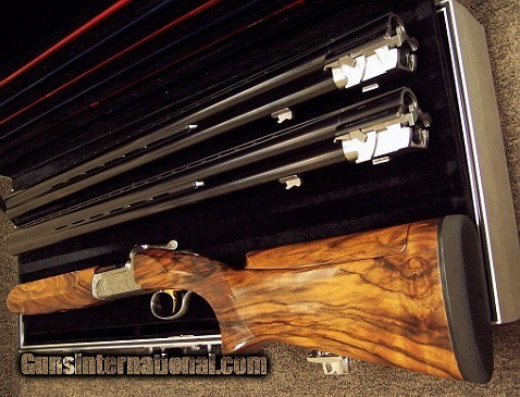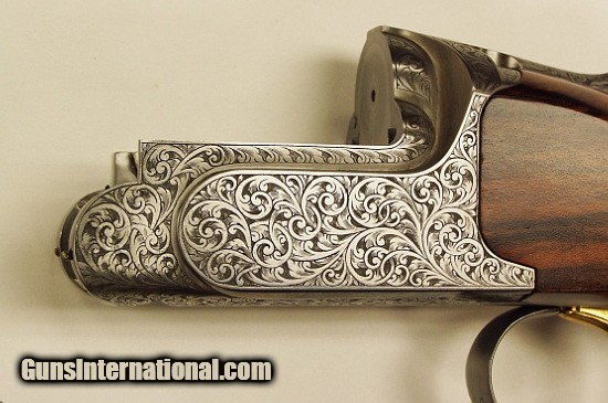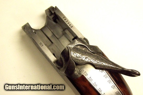 Description: MX/8 SC3 Grade Skeet Combo 2 Bbl set - #101 Pattern engraved and signed by Patelli - drop out trigger with flat springs - 11x7 mm flat ribs - heavy weight barrel is fixed choke Skt/Skt- 1.850KG/18.6 bore - Semi light barrel matches heavy bbl w/ sub gauge tubes - full set of Briley Ultralight tubes w/ 12 chokes - SC3 grade wood - skeet stock with semi beavertail forend - stock dimensions are 1 1/2" x 1 7/8" x 14 3/4" - all accessories - paperwork - case - This Perazzi is unaltered since it left the factory - a very few light handling marks - action is tight and remains in excellent plus condition - ser# 143942 SOLD |