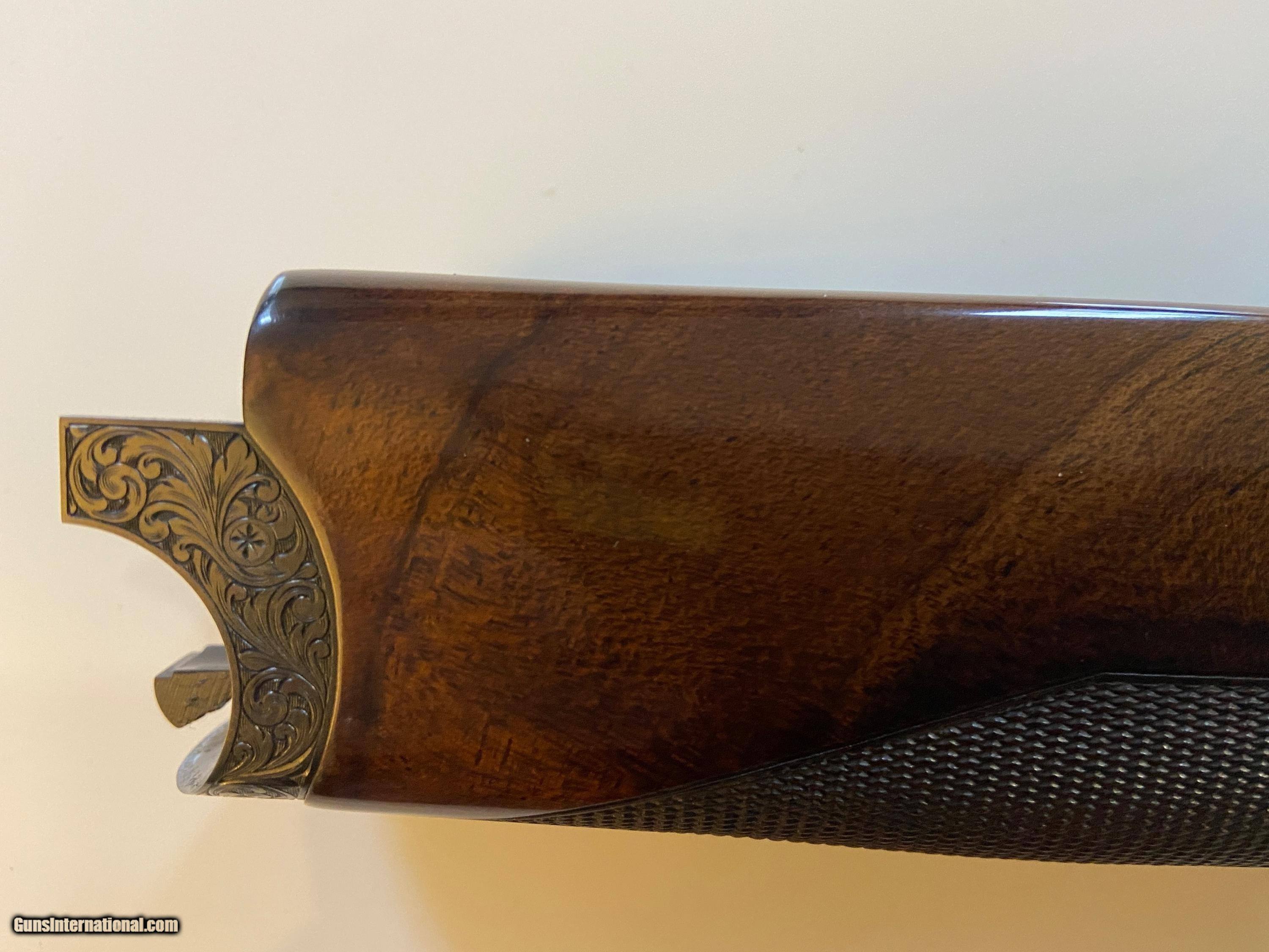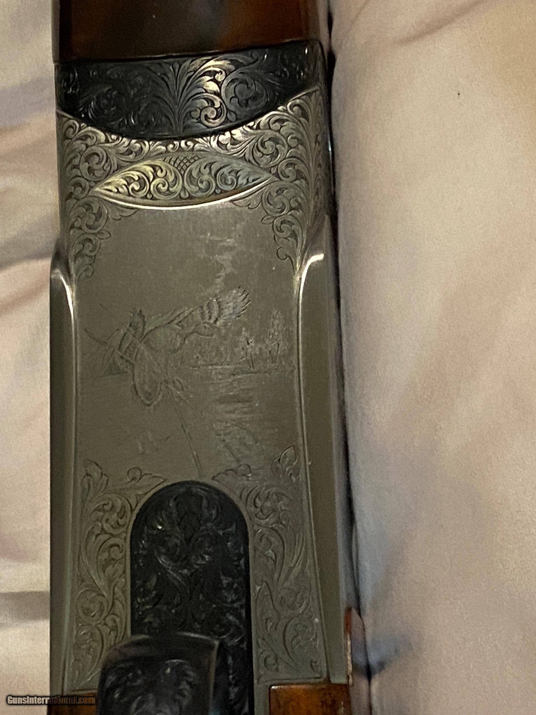 Description: Stunning SC3 MX8.1 owner bought new from Cabelas.It originally came with 30 inch,11x11 rib ,full and full for bunker trap.It had very plain wood for a SC3.I purchased new SC3 32 inch barrels and a factory Perazzi SCO stock set with Sporting clay dimentions 14 7/8 LOP with Kick EEZE pad.They both fit without any adjustment.Probably because all serial numbers are close.It has been a delight to own and shoot.Time is encroaching on me and 81/2lbs is a little heavy.Perazzi hard case with everything including new extra springs and a full set of Extreme chokes.The removable trigger is non selective.The gun has a low round count with the original springs.It has a few mior handling marks.The Bulino engraving is exquisite and is signed at the trigger guard.The SCO wood set is stunning with marble and lots of contrasting swirl.It is alot nicer than current stuff coming from Perazzi.Any questions?I can be reached at 704-975-1048.Thanks for looking.John SOLD |